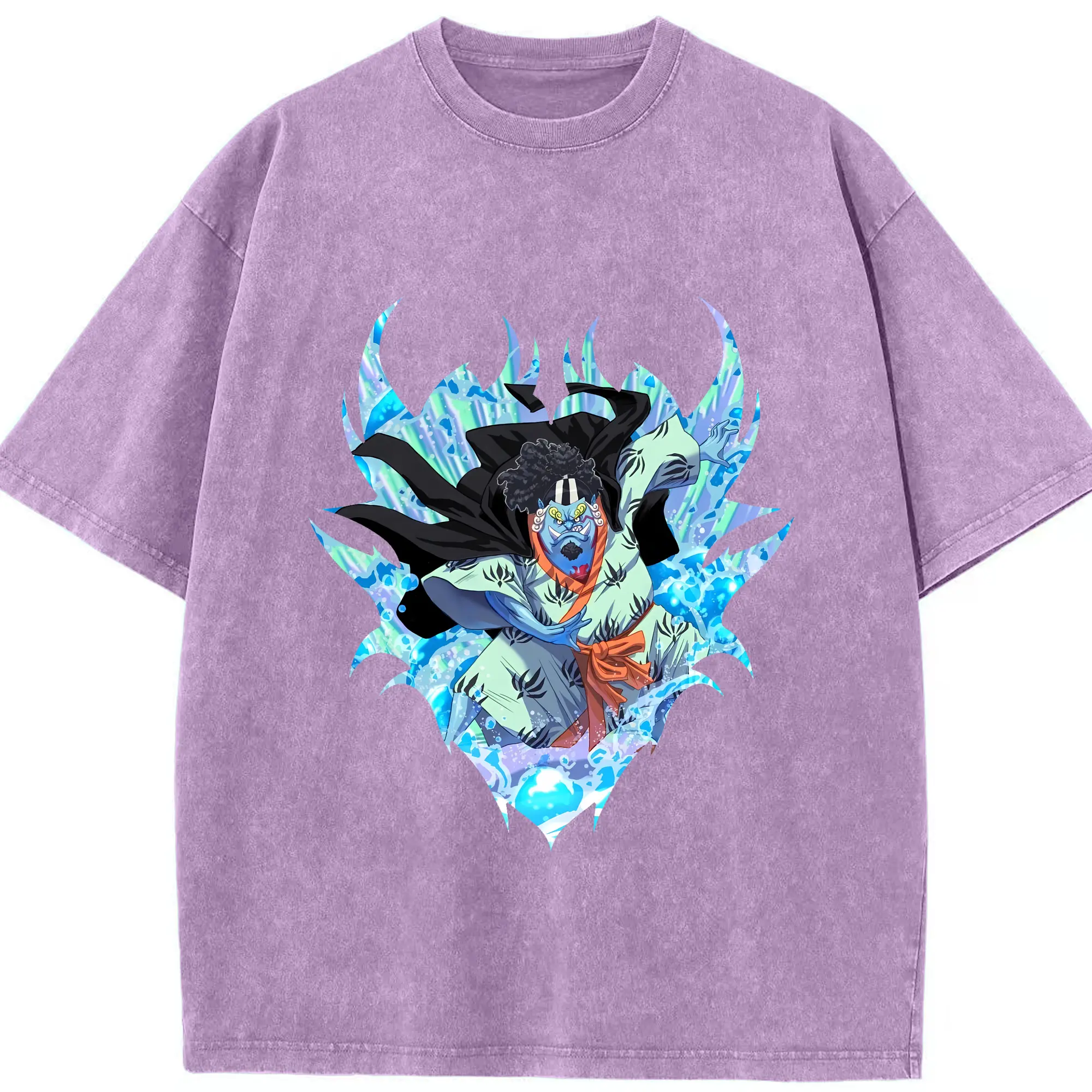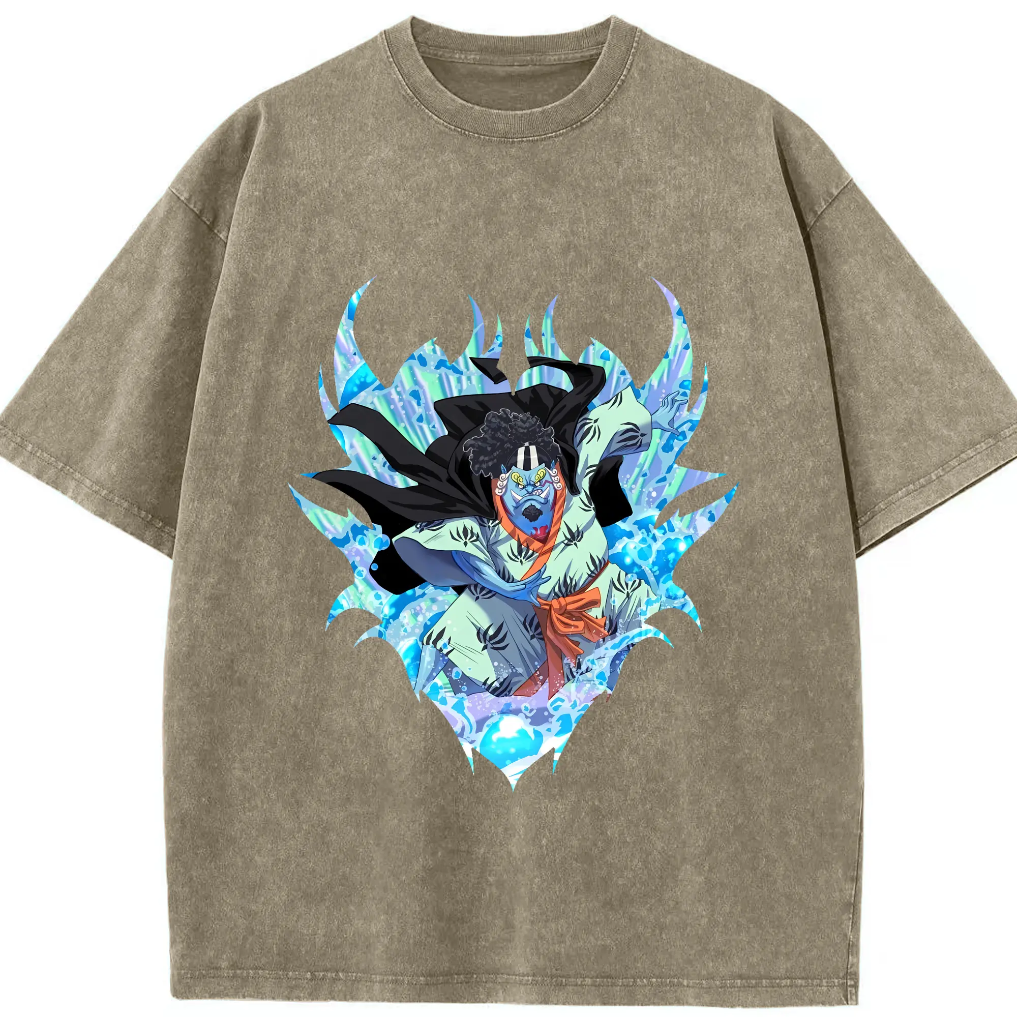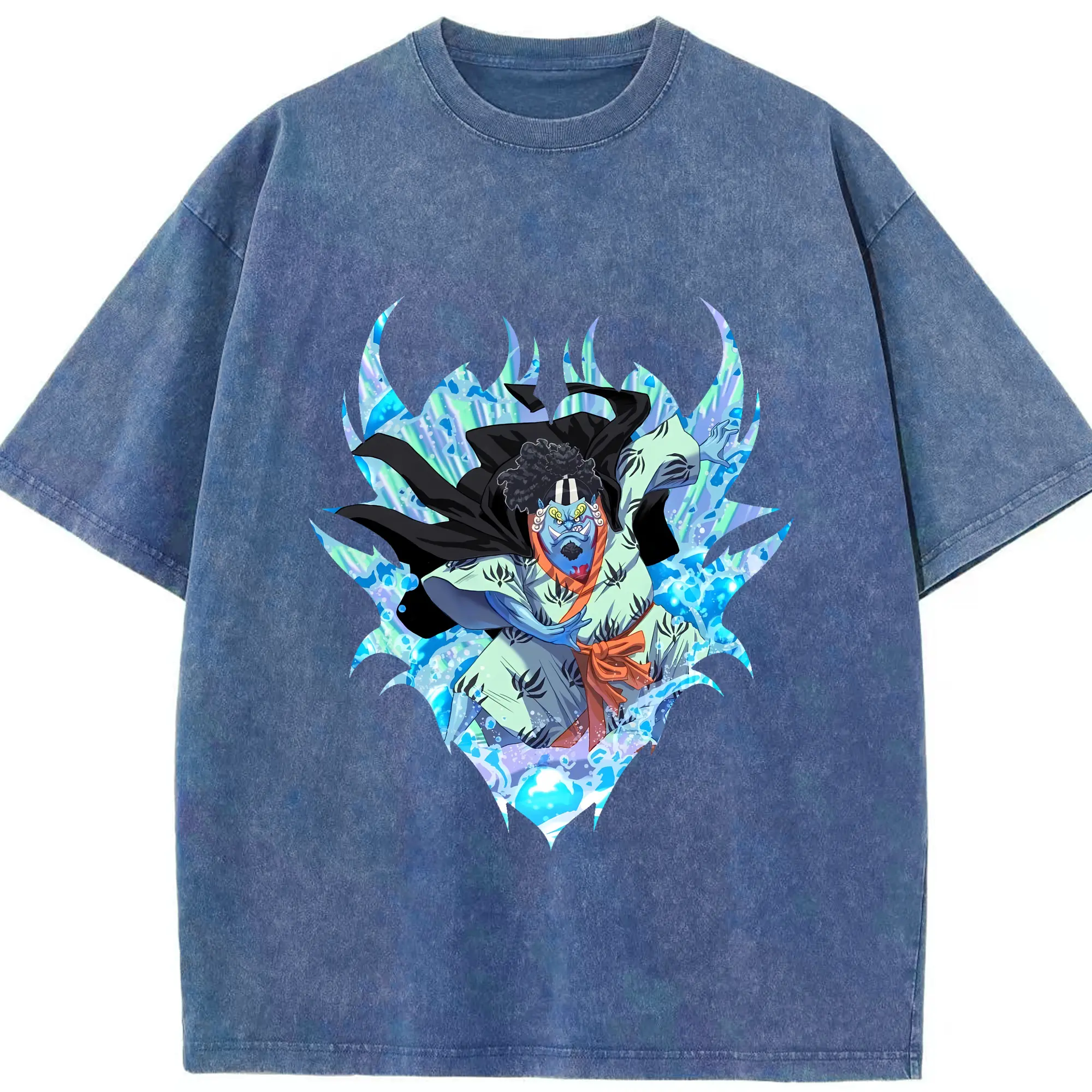 ワンピース グッズ ジンベエ - 綿100% ヴィンテージ風 半袖Tシャツ ・ 背面プリント ・ 柔らか肌触り ・ 通気性 快適 ・ スポーツ カジュアル 外出用