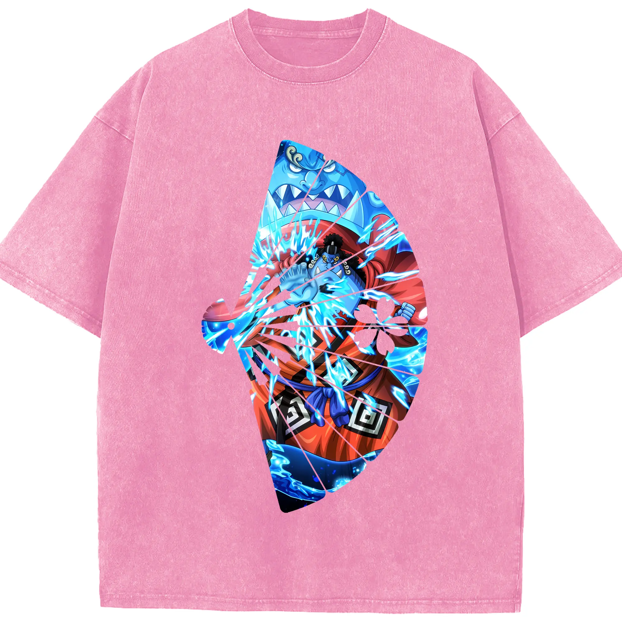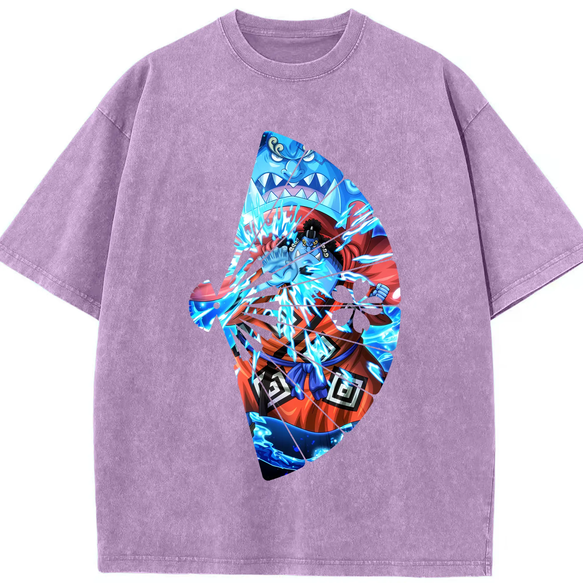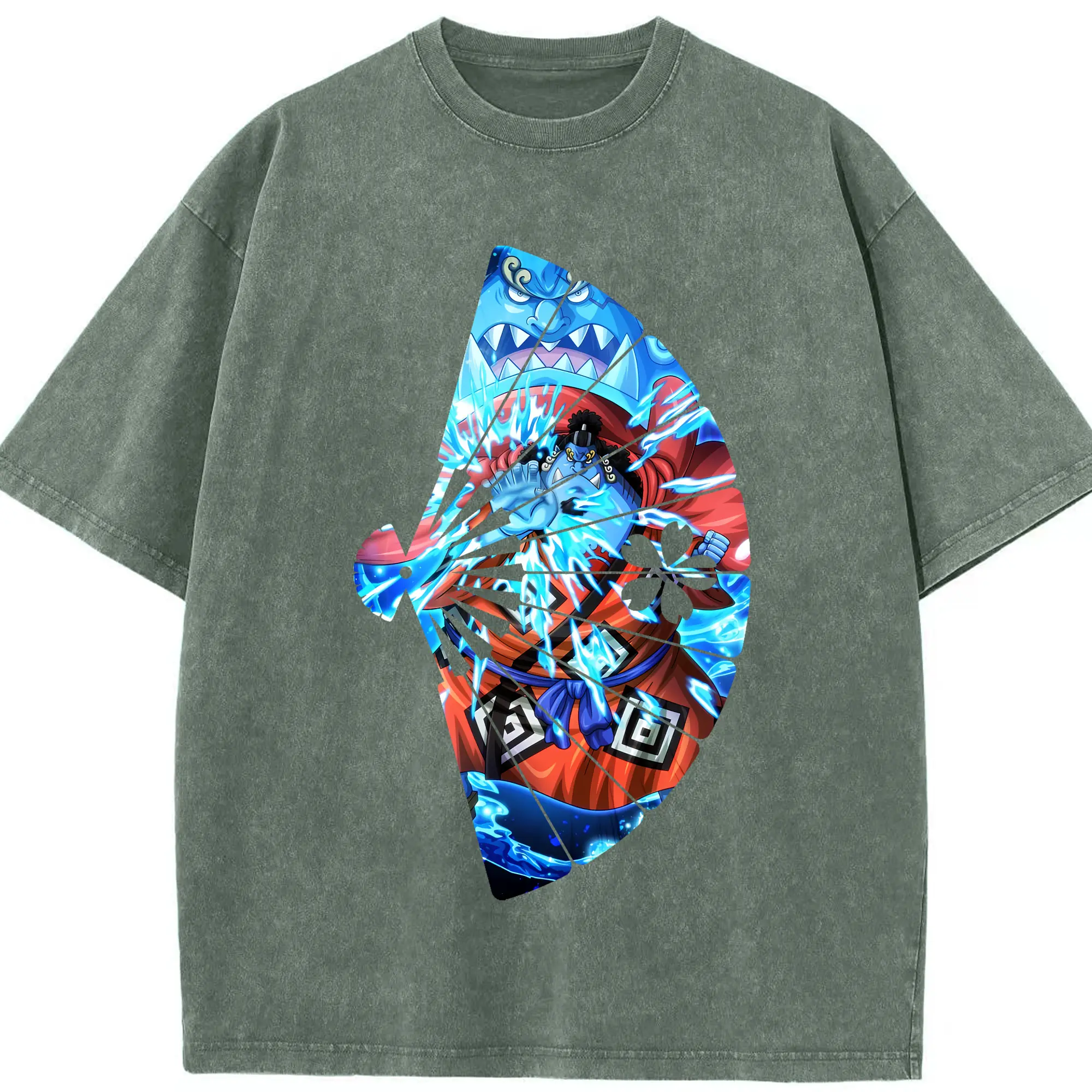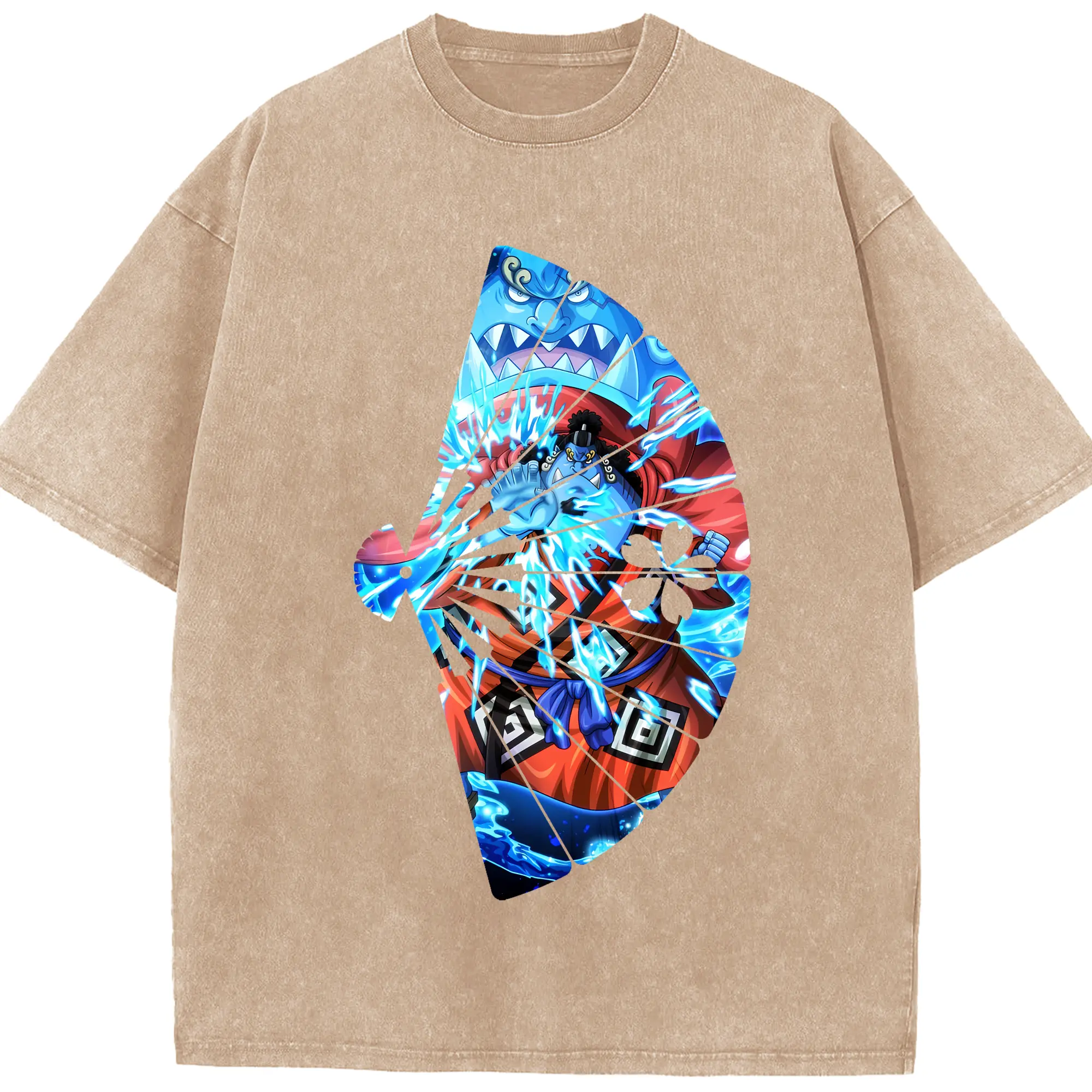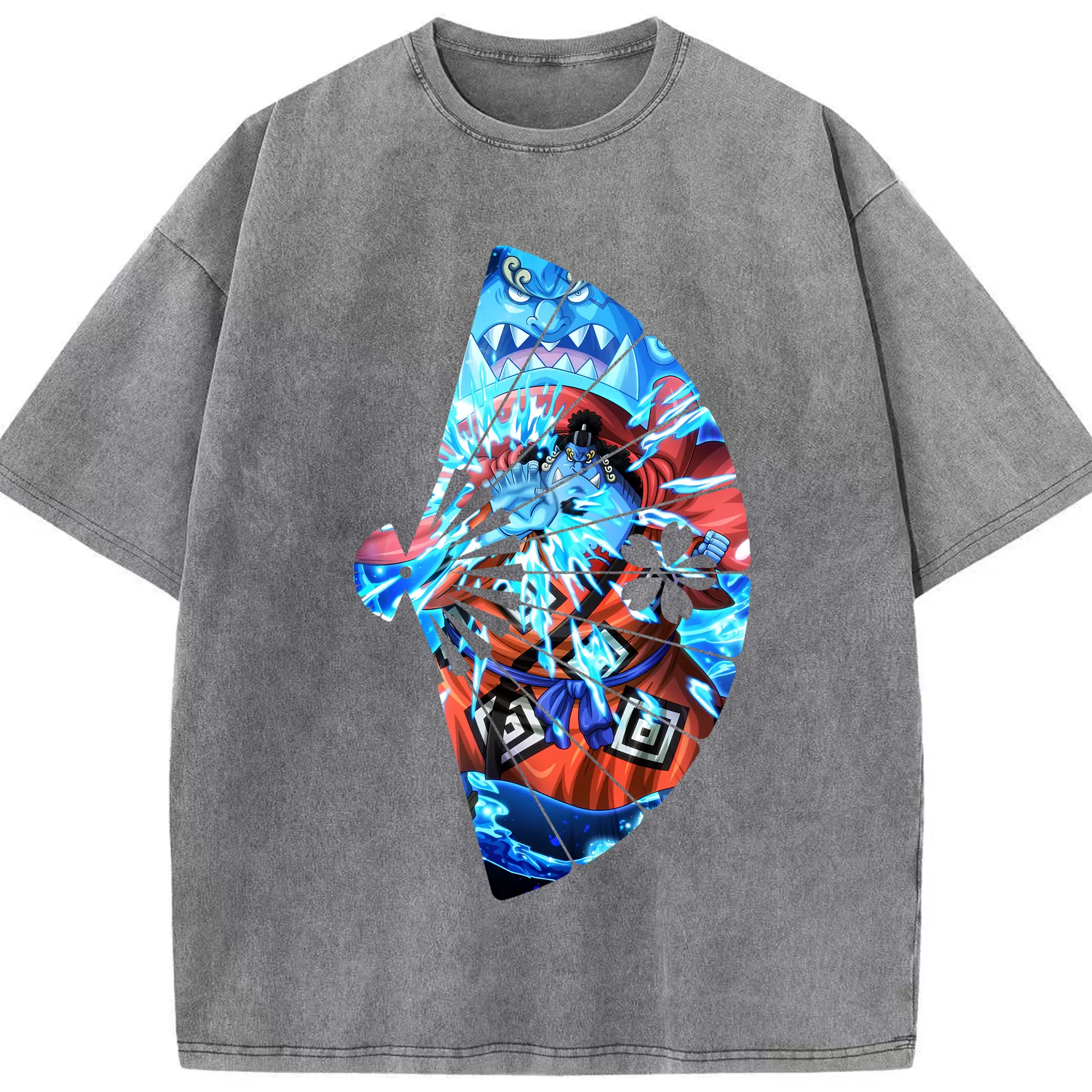 ワンピース グッズ ジンベエ - 綿100% ヴィンテージ風 半袖Tシャツ ・ 背面プリント ・ 柔らか肌触り ・ 通気性 快適 ・ スポーツ カジュアル 外出用