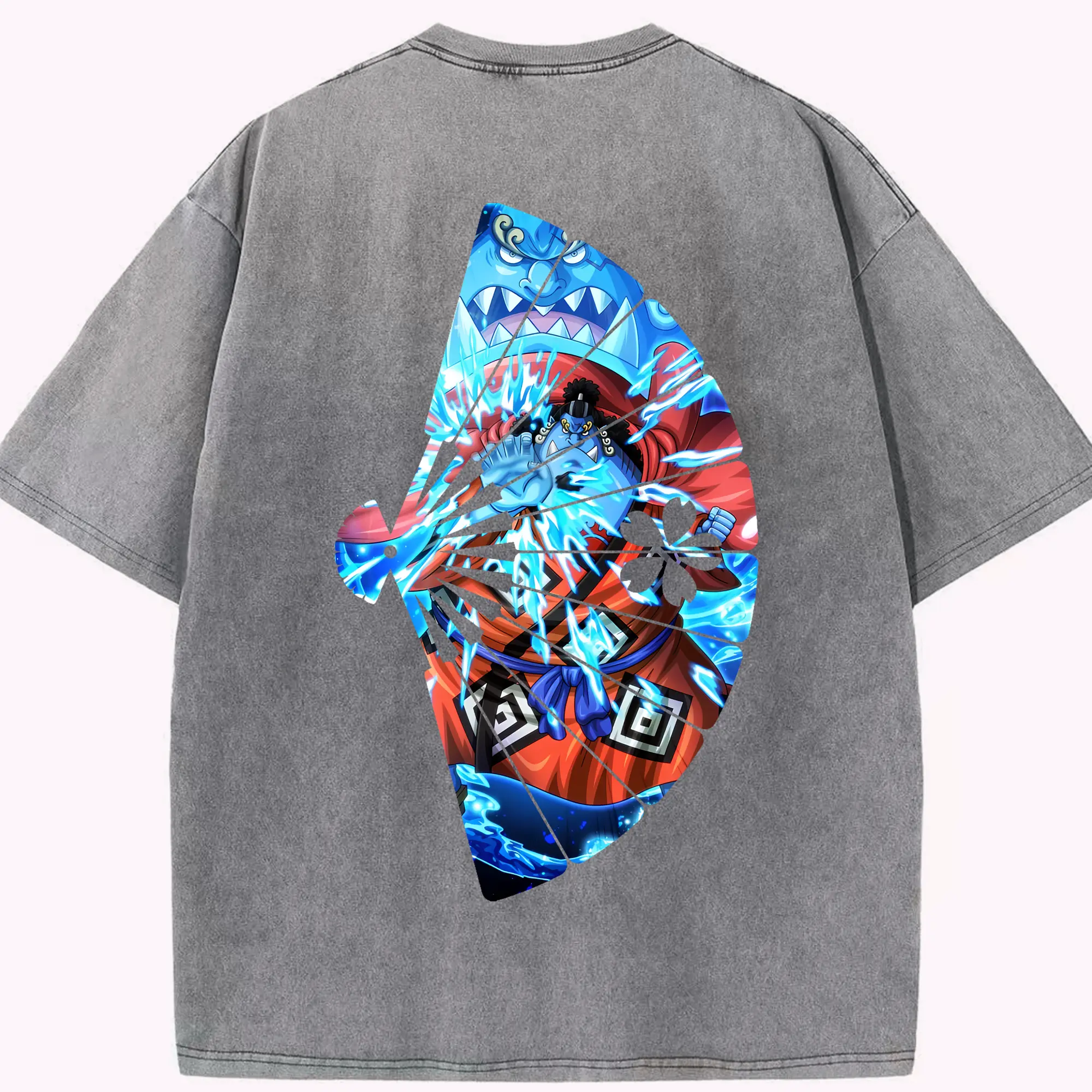 ワンピース グッズ ジンベエ - 綿100% ヴィンテージ風 半袖Tシャツ ・ フロントプリント ・ 柔らか肌触り ・ 通気性 快適 ・ スポーツ カジュアル 外出用