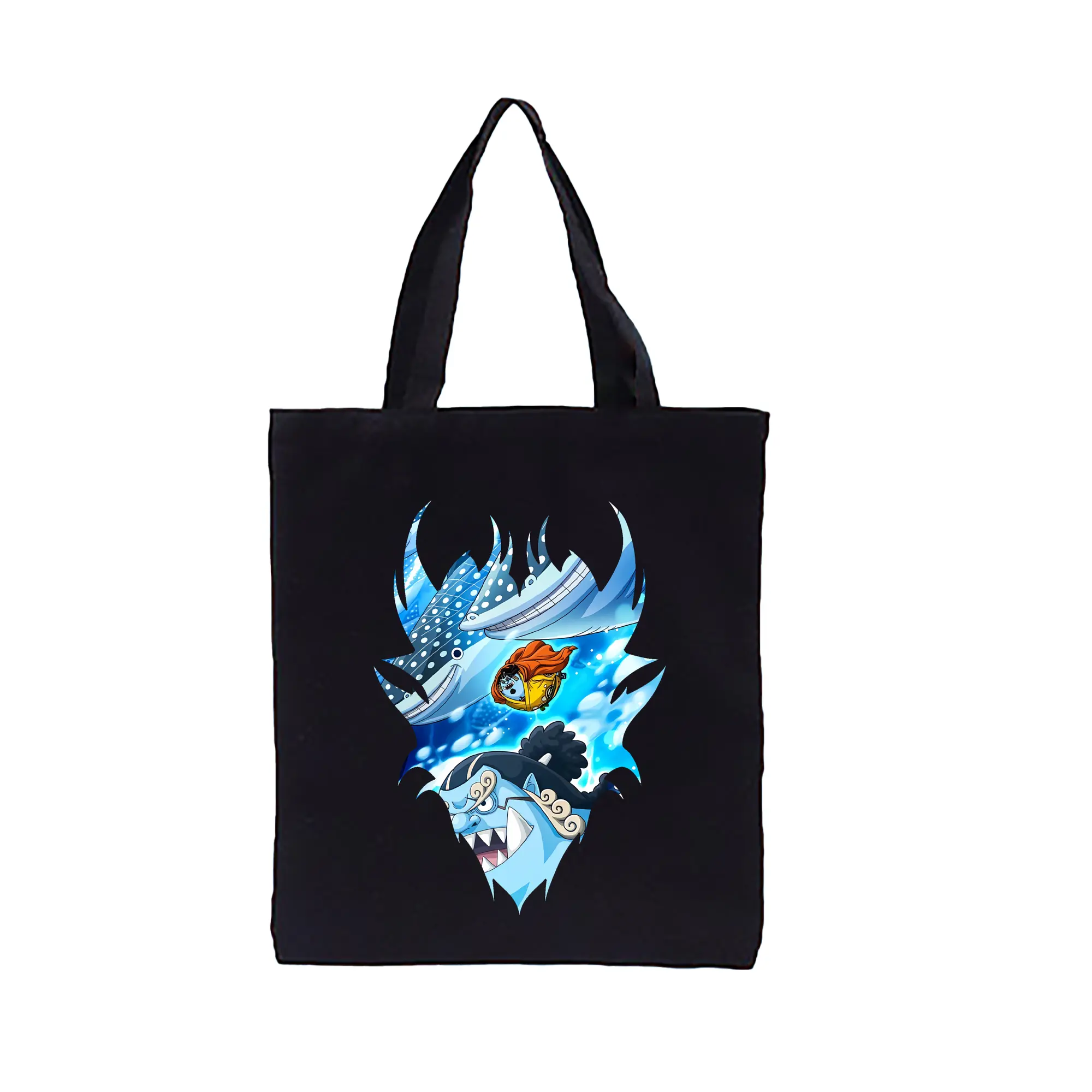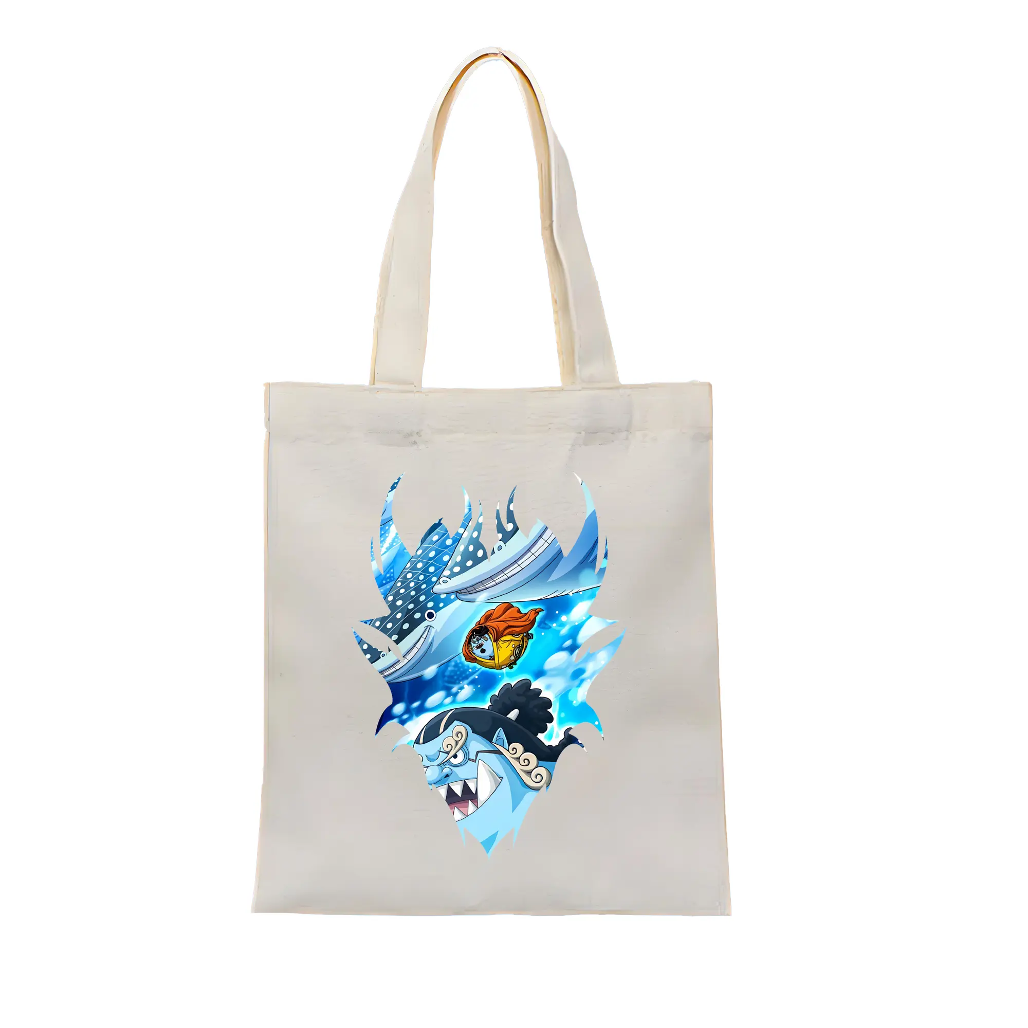 ワンピース グッズ ジンベエ - 縦型キャンバス手提げバッグ(トートバッグ) ・ キャンバス素材 ・ ショッピング用 ・ 軽量 丈夫 お手入れ簡単