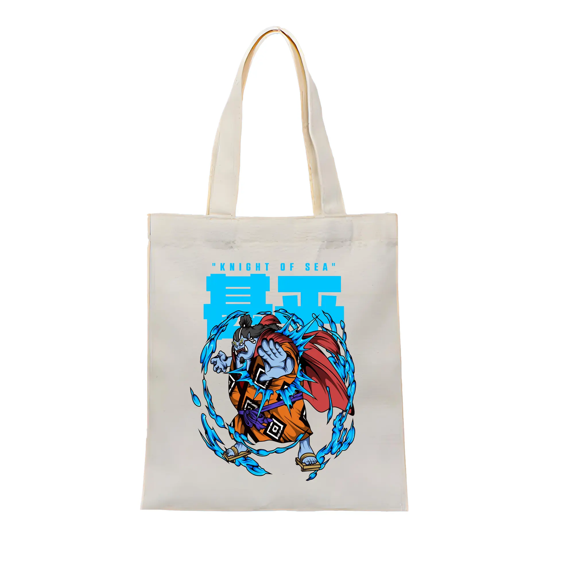 ワンピース グッズ ジンベエ - 縦型キャンバス手提げバッグ(トートバッグ) ・ キャンバス素材 ・ ショッピング用 ・ 軽量 丈夫 お手入れ簡単