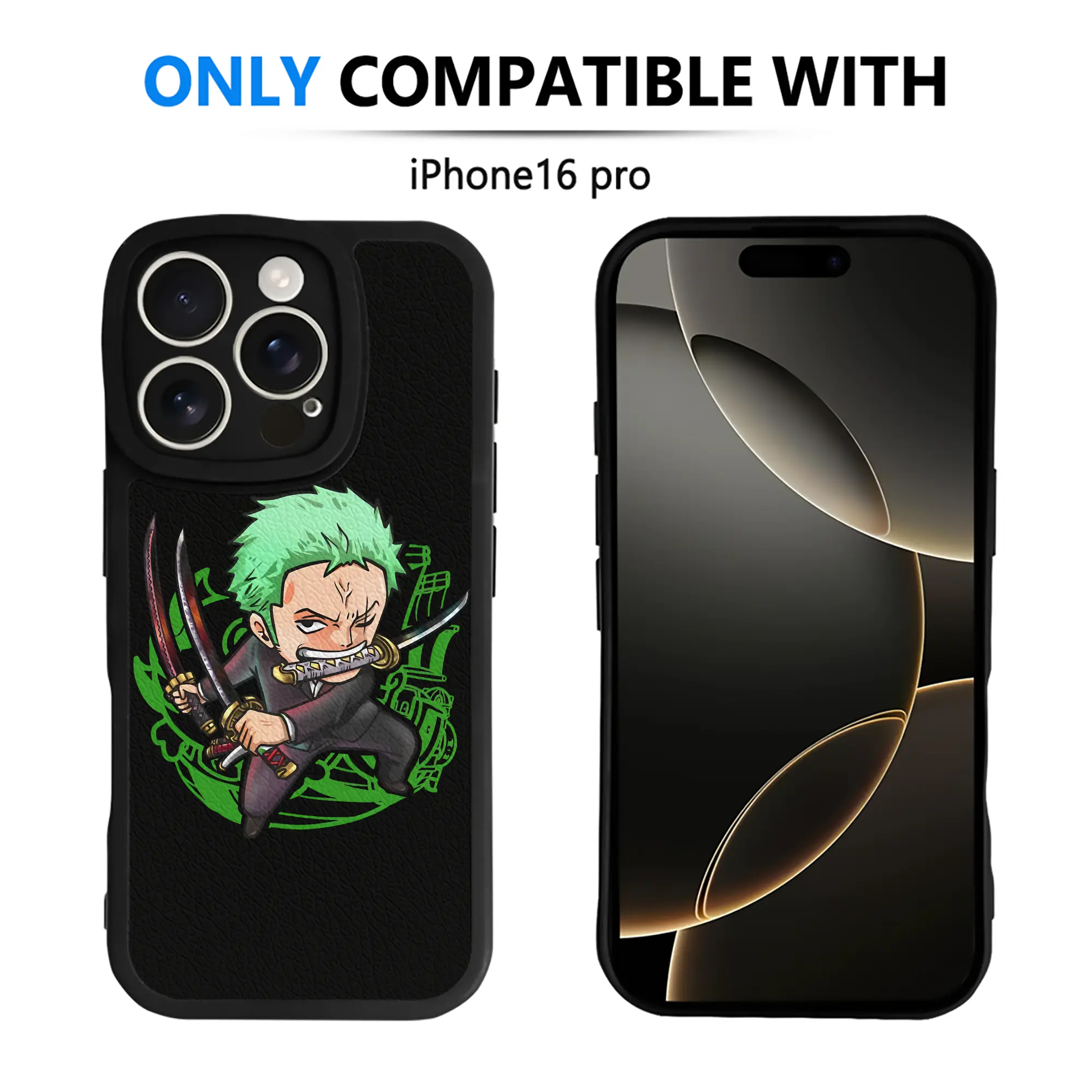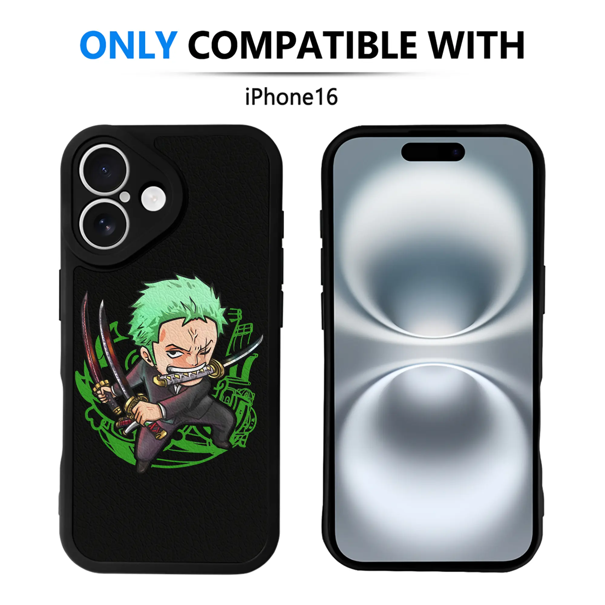 ワンピース グッズ ロロノア・ゾロ - IPhone 16シリーズ対応 ・ シリコンスマホケース ・ レザー調 ・ 高精度フィット ・ 耐衝撃 ・ ワイヤレス充電対応 ・ 精密カット