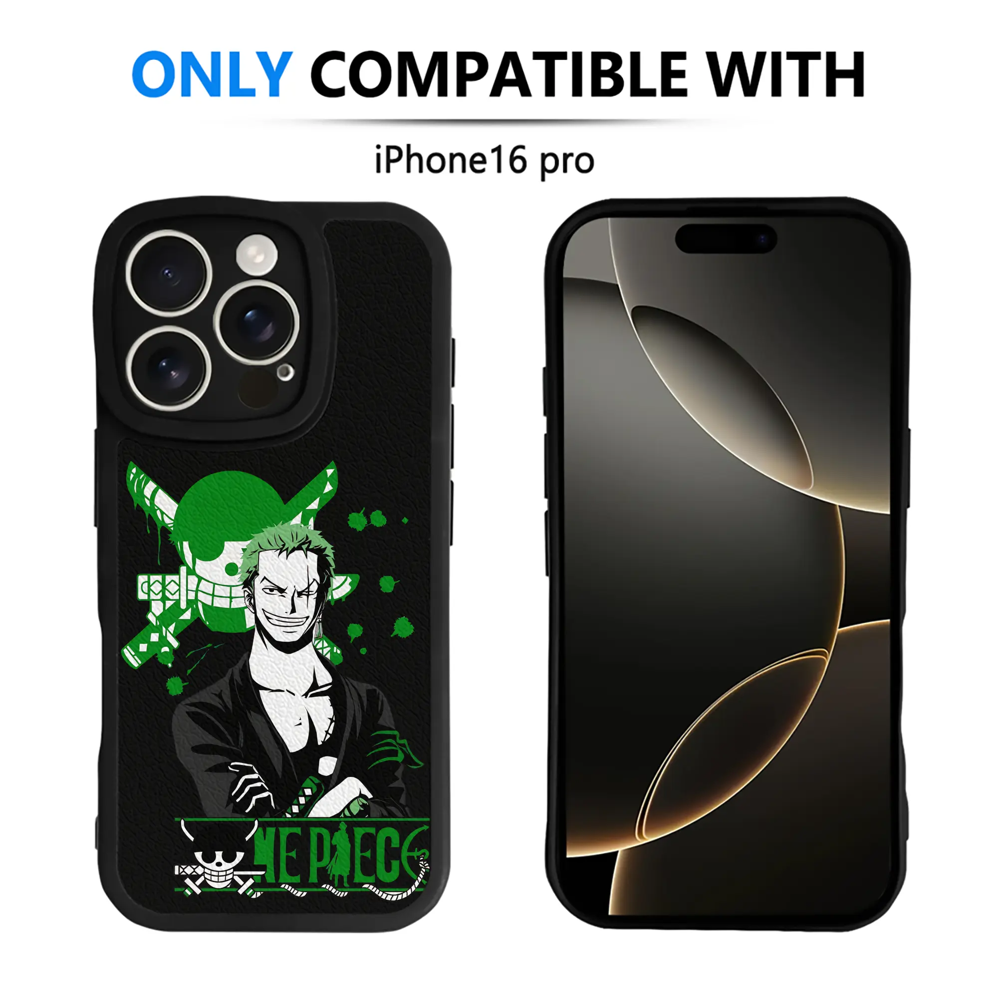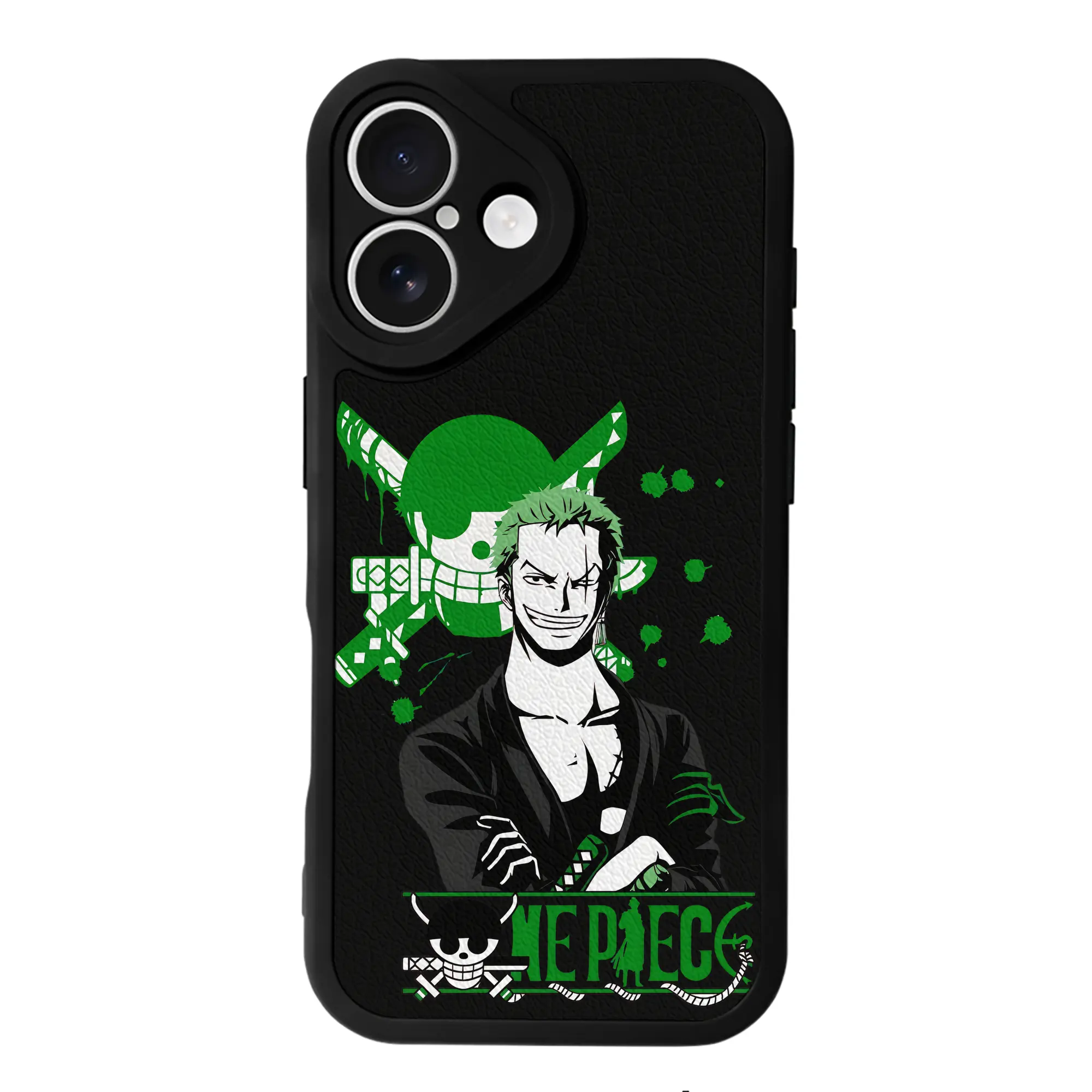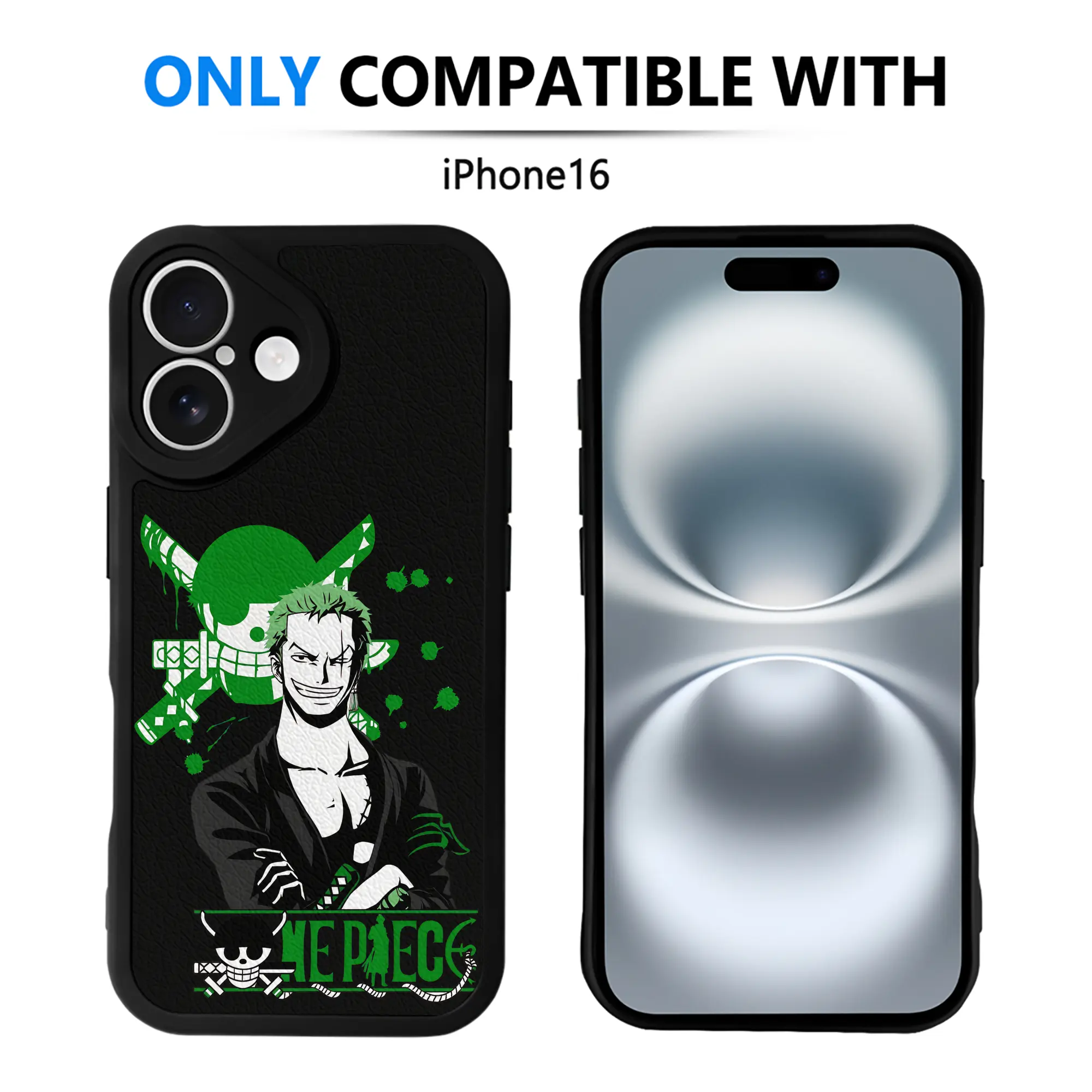 ワンピース グッズ ロロノア・ゾロ - IPhone 16シリーズ対応 ・ シリコンスマホケース ・ レザー調 ・ 高精度フィット ・ 耐衝撃 ・ ワイヤレス充電対応 ・ 精密カット