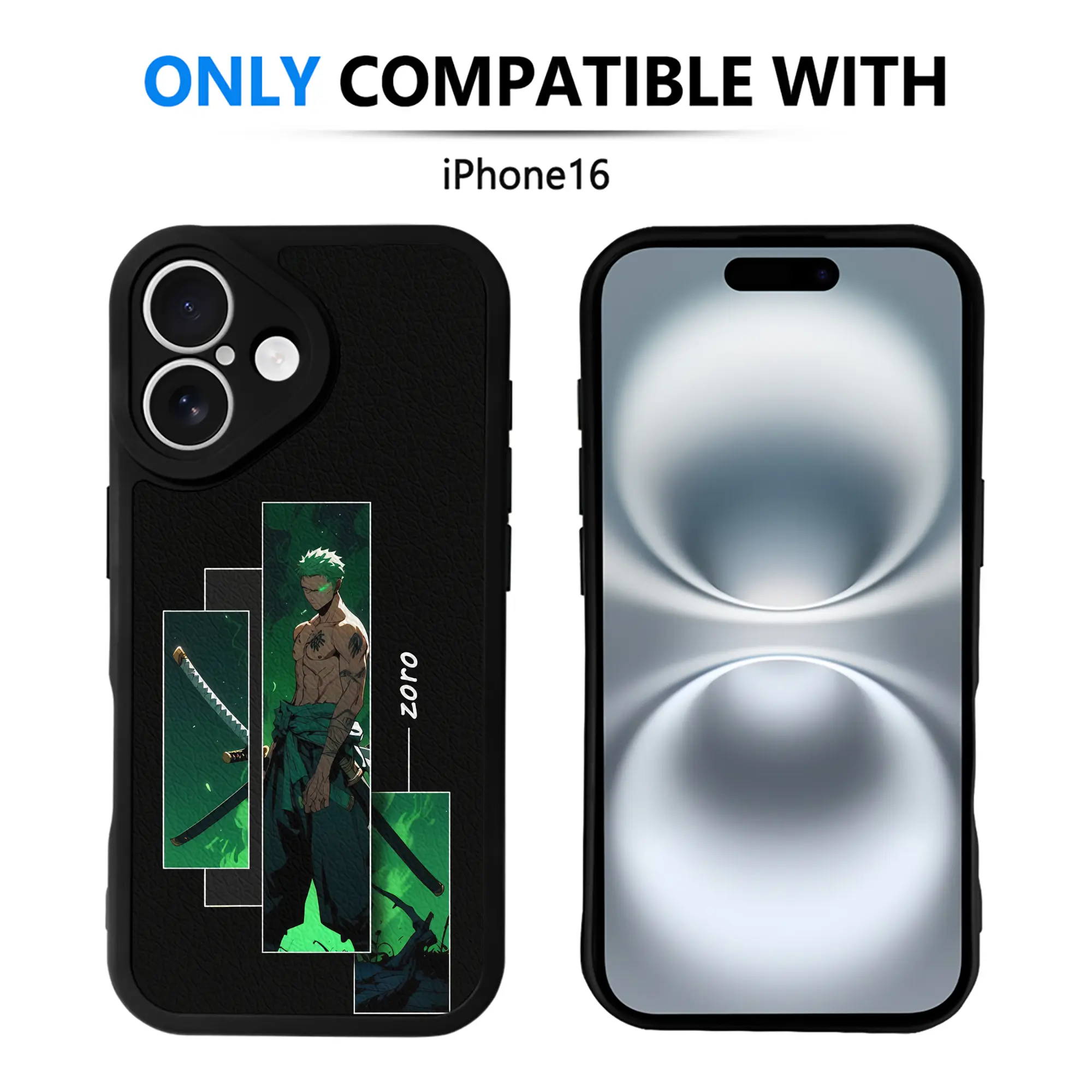 ワンピース グッズ ロロノア・ゾロ - IPhone 16シリーズ対応 ・ シリコンスマホケース ・ レザー調 ・ 高精度フィット ・ 耐衝撃 ・ ワイヤレス充電対応 ・ 精密カット