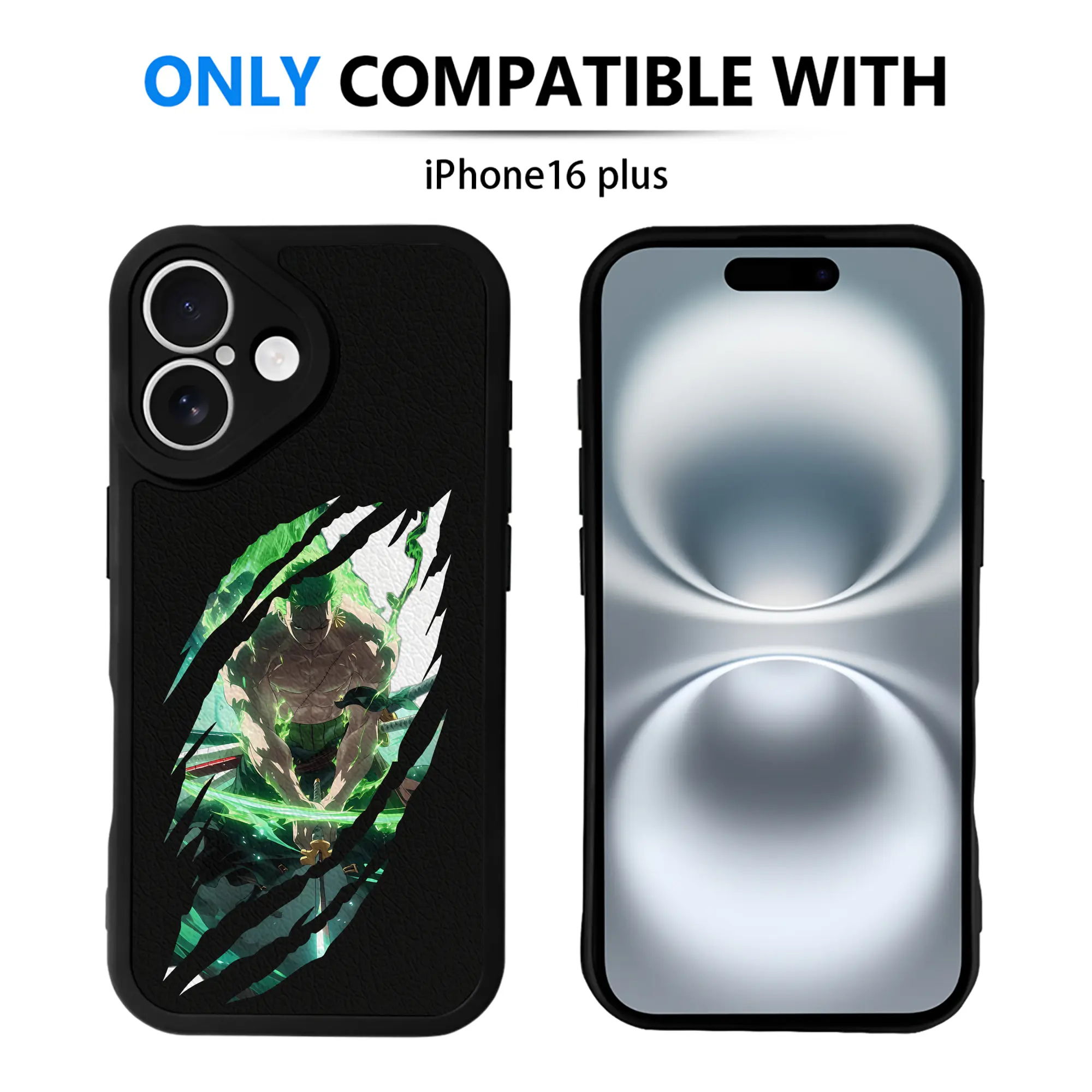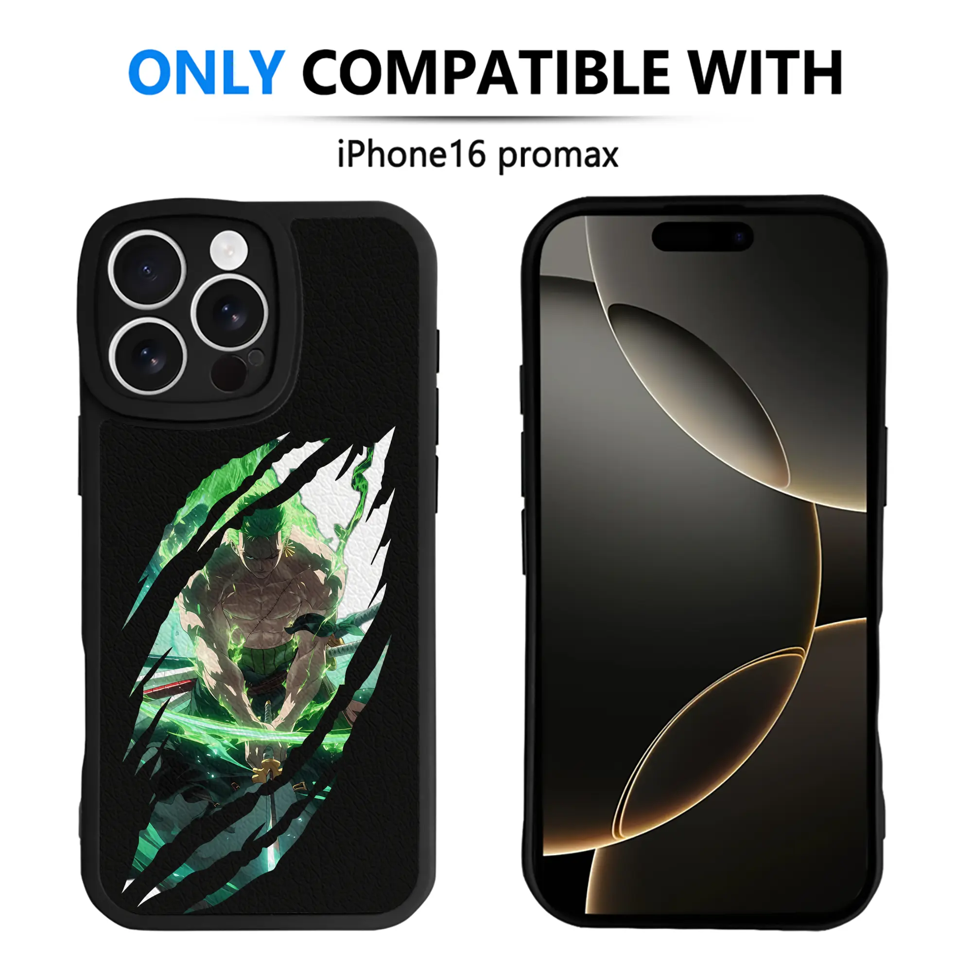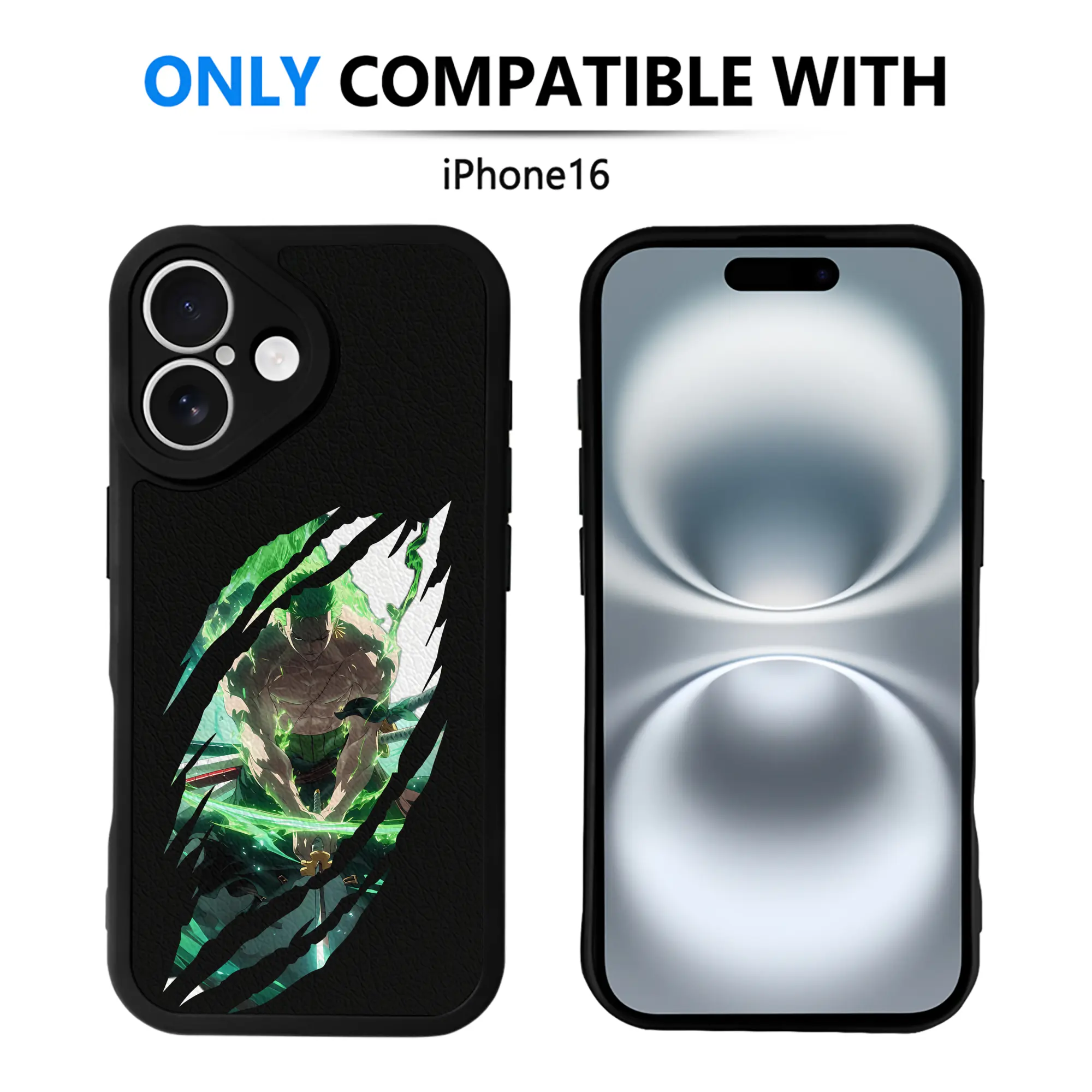 ワンピース グッズ ロロノア・ゾロ - IPhone 16シリーズ対応 ・ シリコンスマホケース ・ レザー調 ・ 高精度フィット ・ 耐衝撃 ・ ワイヤレス充電対応 ・ 精密カット
