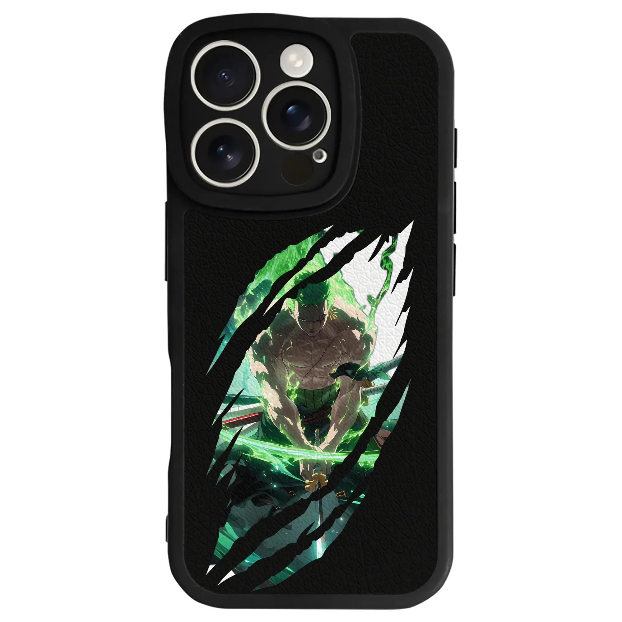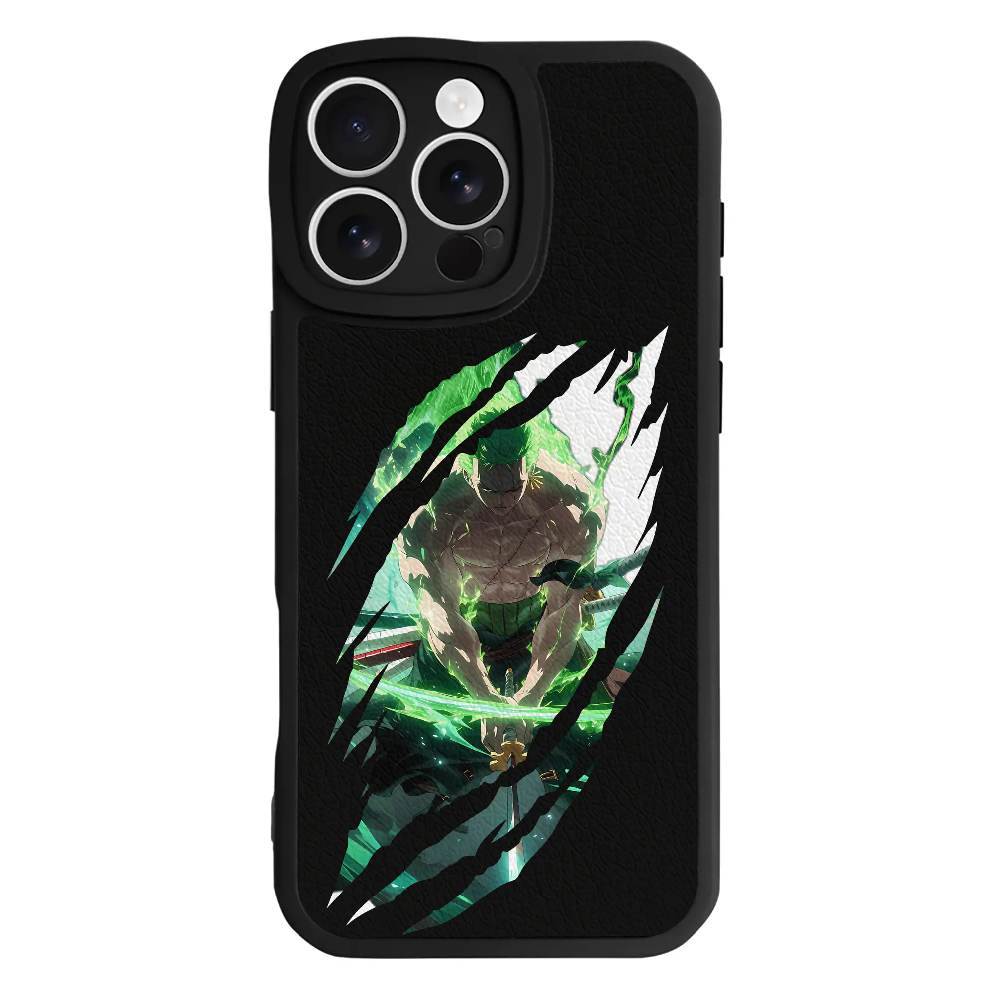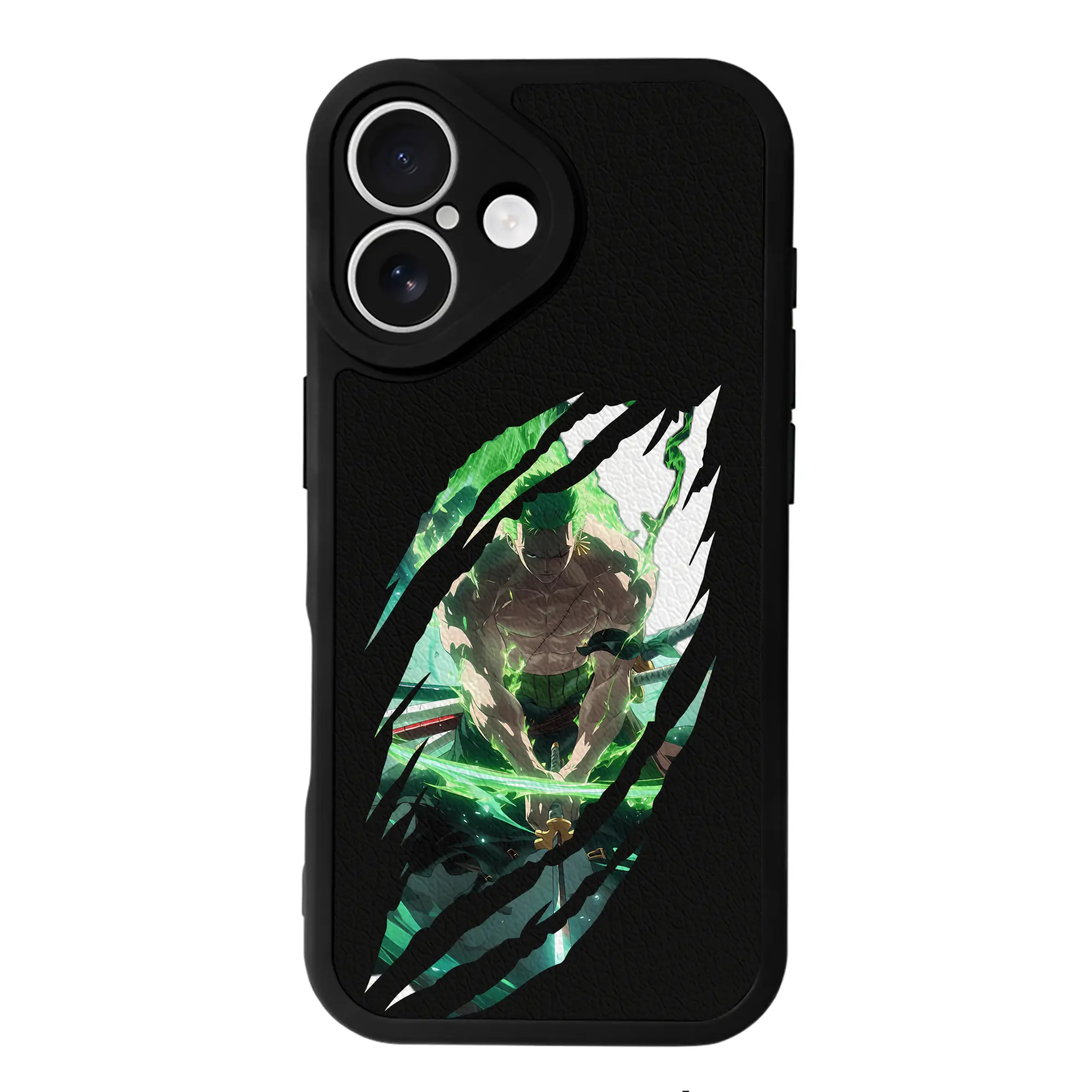 ワンピース グッズ ロロノア・ゾロ - IPhone 16シリーズ対応 ・ シリコンスマホケース ・ レザー調 ・ 高精度フィット ・ 耐衝撃 ・ ワイヤレス充電対応 ・ 精密カット