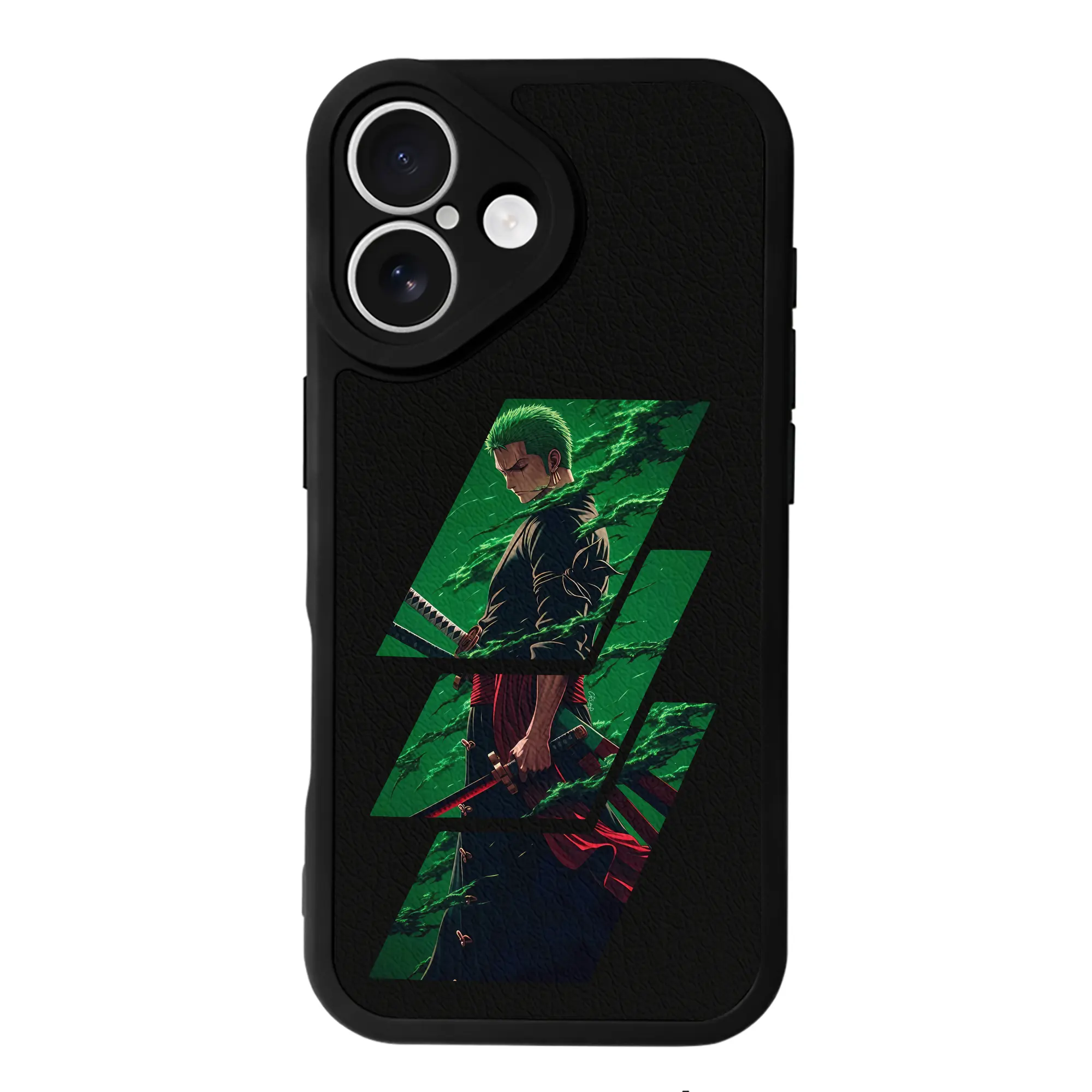 ワンピース グッズ ロロノア・ゾロ - IPhone 16シリーズ対応 ・ シリコンスマホケース ・ レザー調 ・ 高精度フィット ・ 耐衝撃 ・ ワイヤレス充電対応 ・ 精密カット