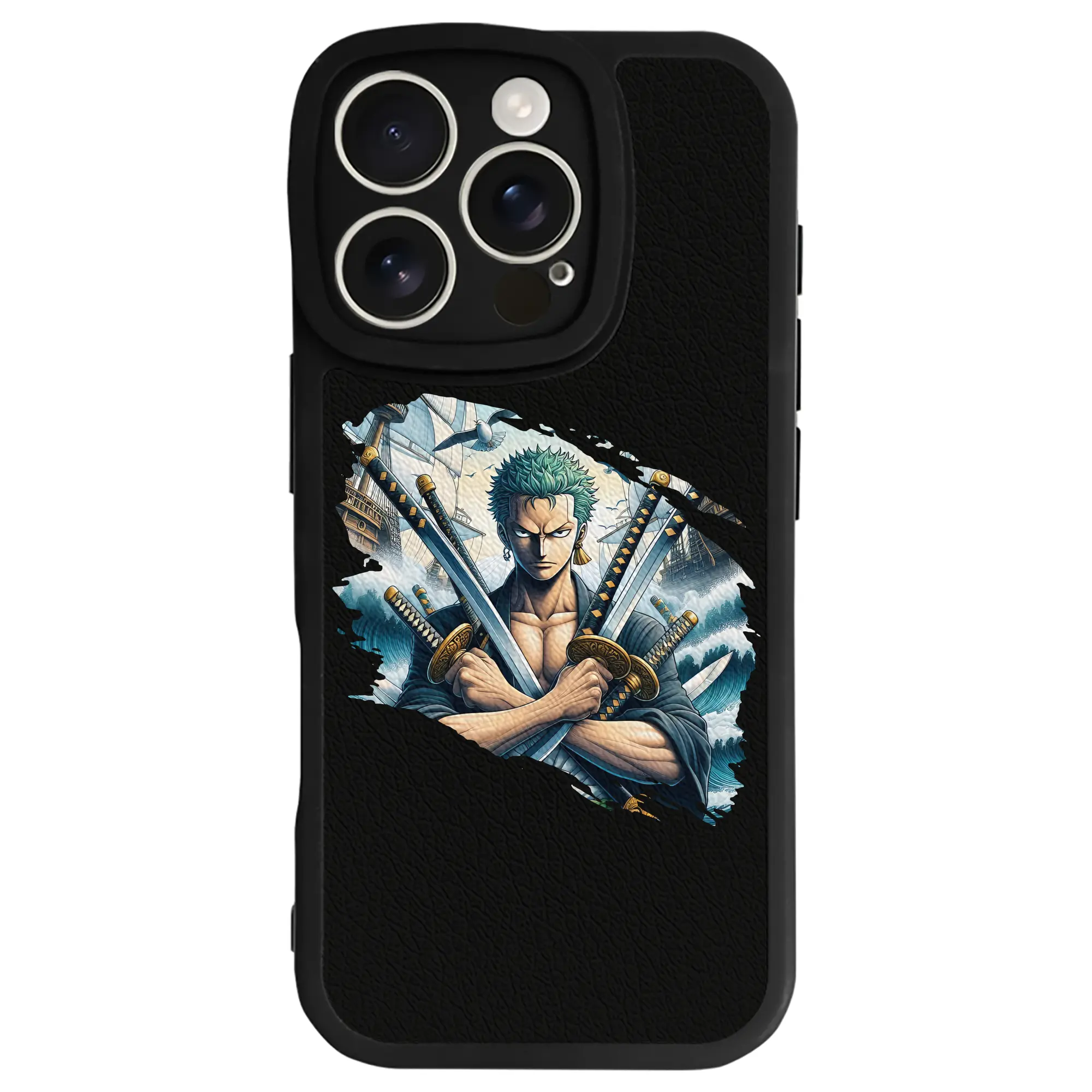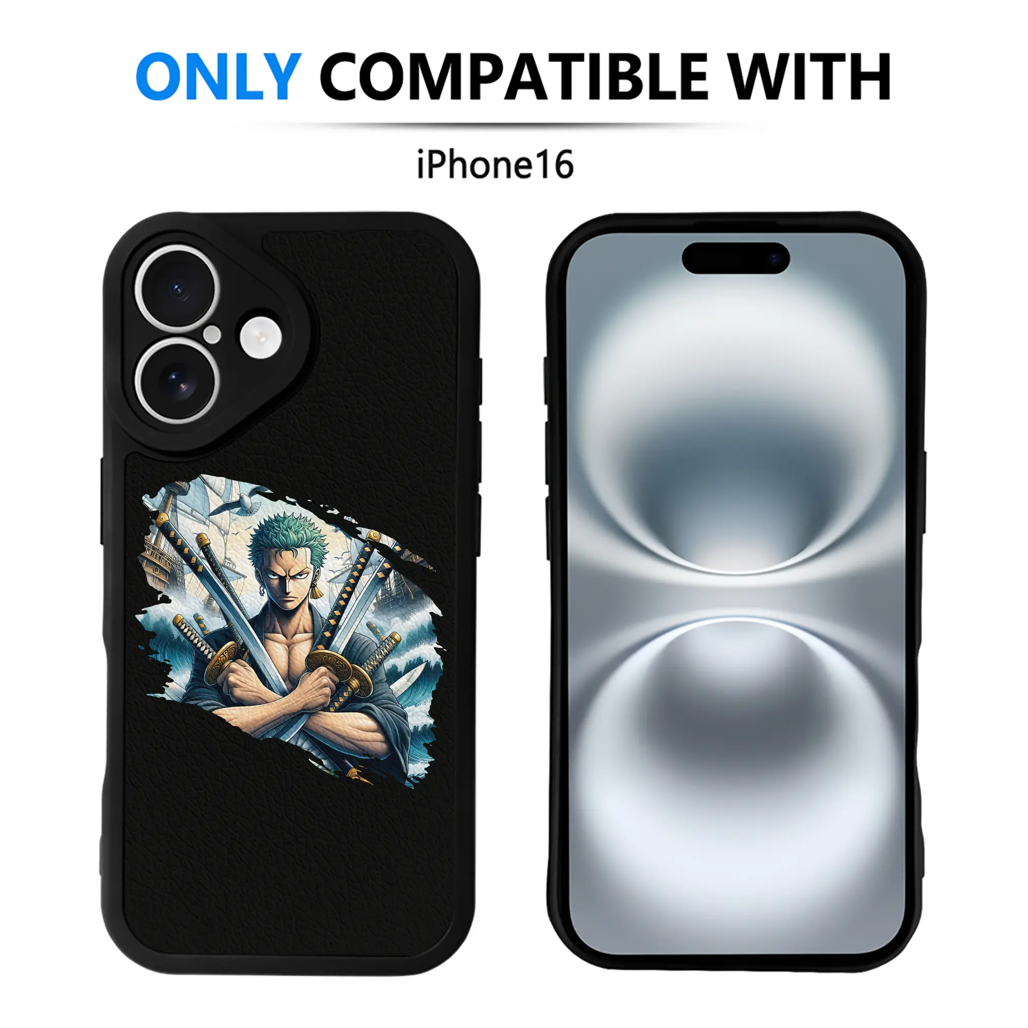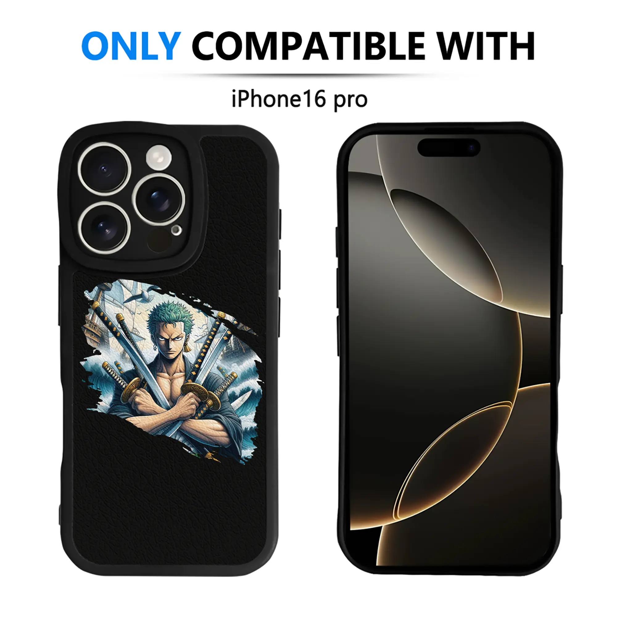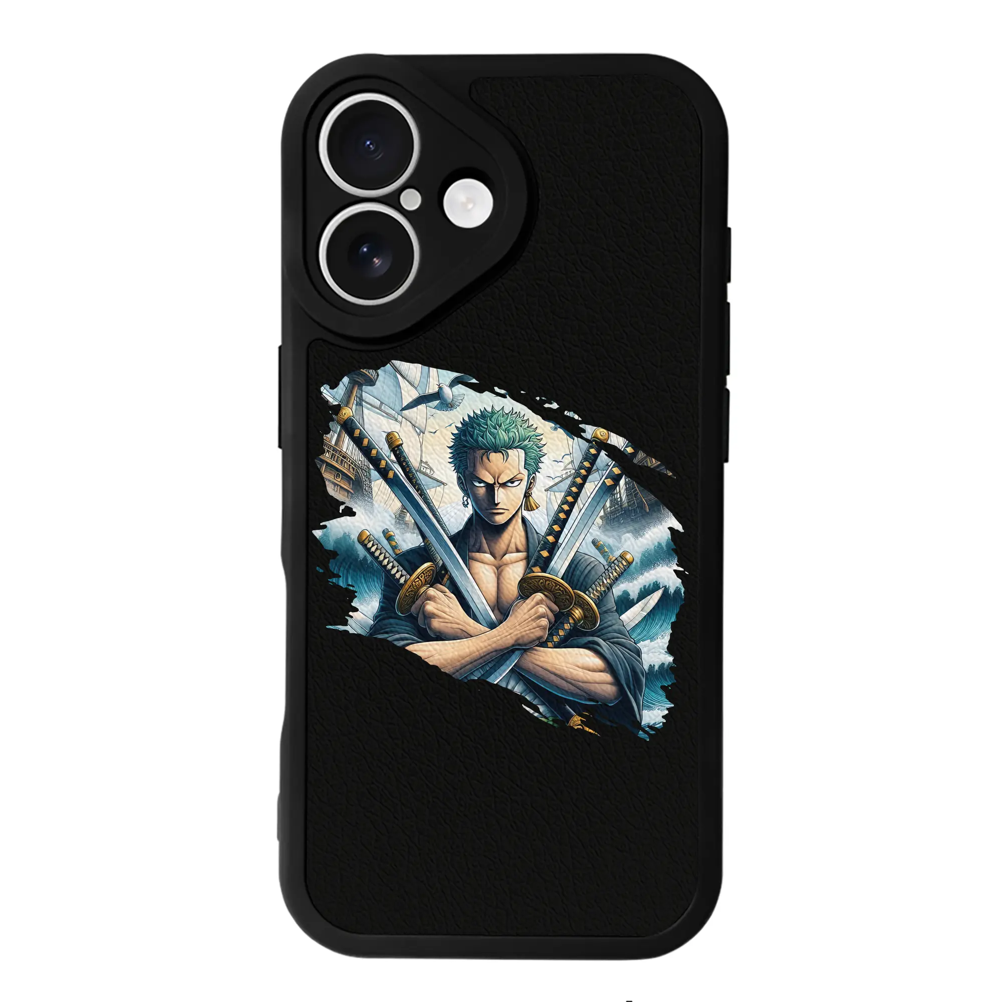 ワンピース グッズ ロロノア・ゾロ - IPhone 16シリーズ対応 ・ シリコンスマホケース ・ レザー調 ・ 高精度フィット ・ 耐衝撃 ・ ワイヤレス充電対応 ・ 精密カット