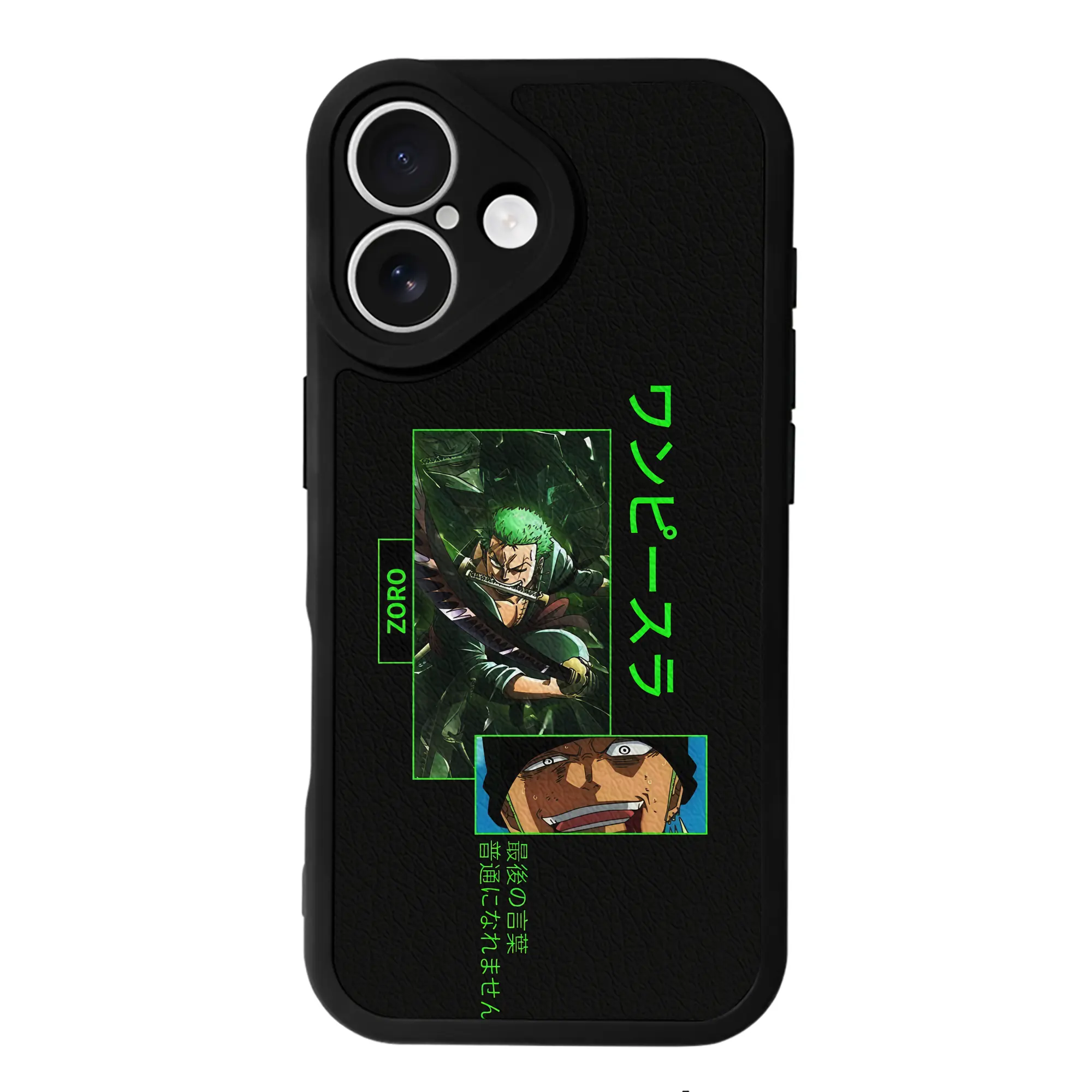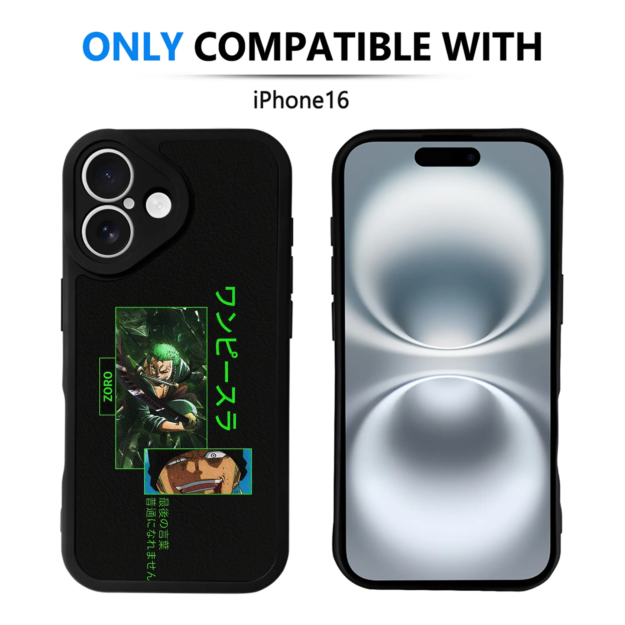 ワンピース グッズ ロロノア・ゾロ - IPhone 16シリーズ対応 ・ シリコンスマホケース ・ レザー調 ・ 高精度フィット ・ 耐衝撃 ・ ワイヤレス充電対応 ・ 精密カット