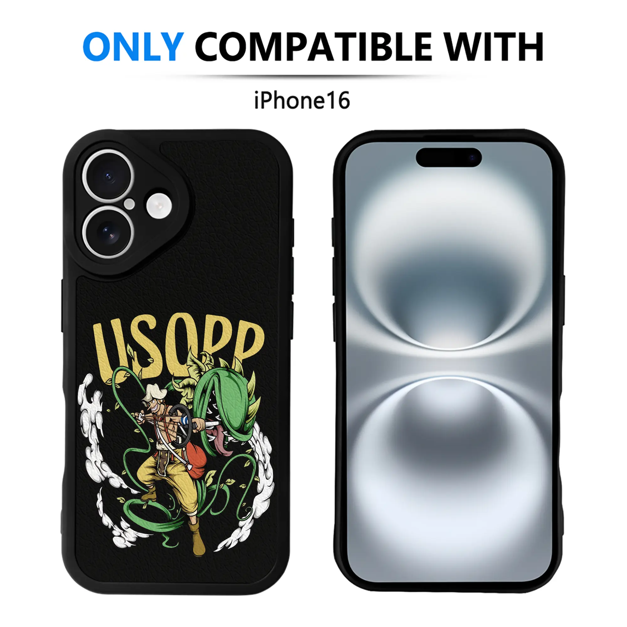ワンピース グッズ ウソップ - IPhone 16シリーズ対応 ・ シリコンスマホケース ・ レザー調 ・ 高精度フィット ・ 耐衝撃 ・ ワイヤレス充電対応 ・ 精密カット