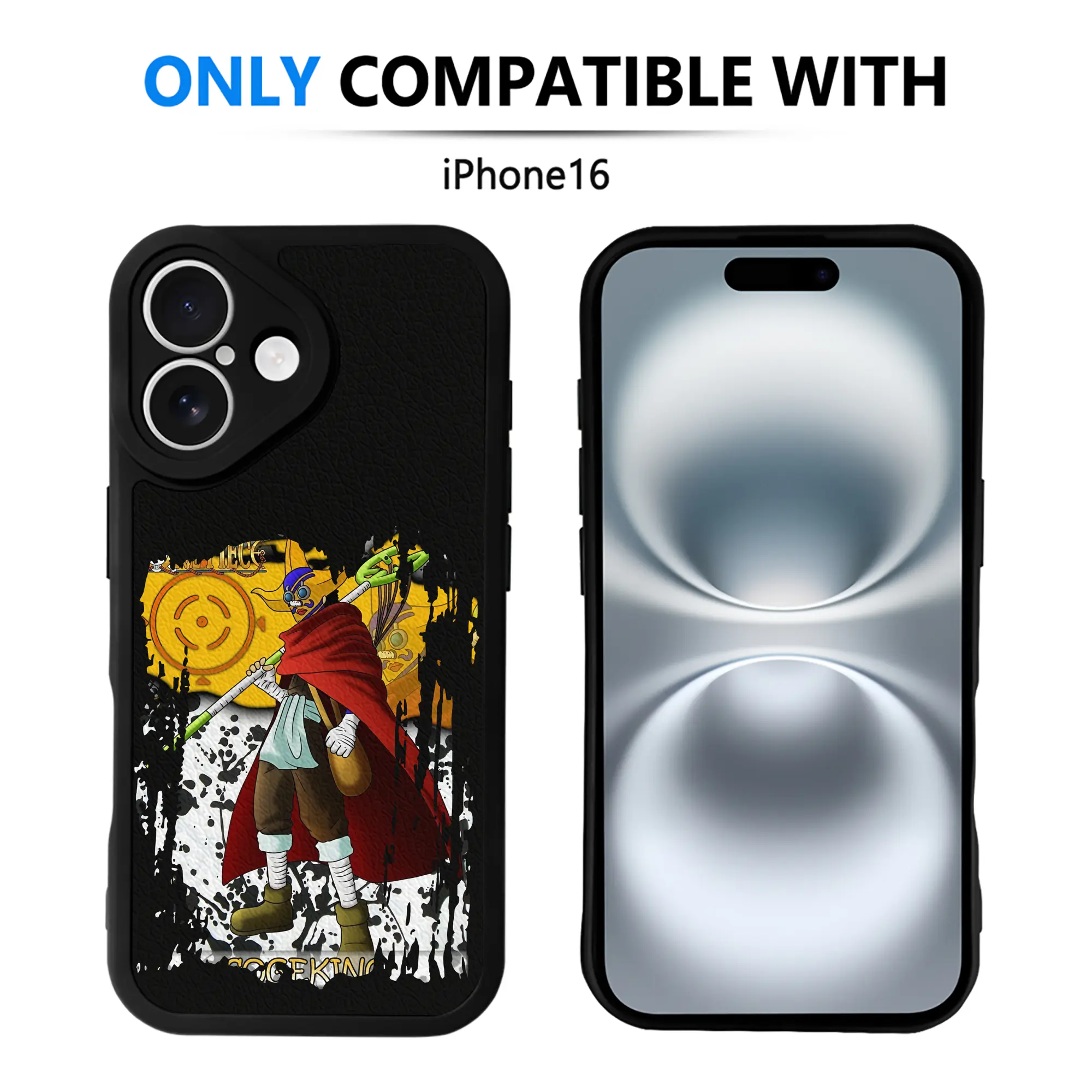 ワンピース グッズ ウソップ - IPhone 16シリーズ対応 ・ シリコンスマホケース ・ レザー調 ・ 高精度フィット ・ 耐衝撃 ・ ワイヤレス充電対応 ・ 精密カット