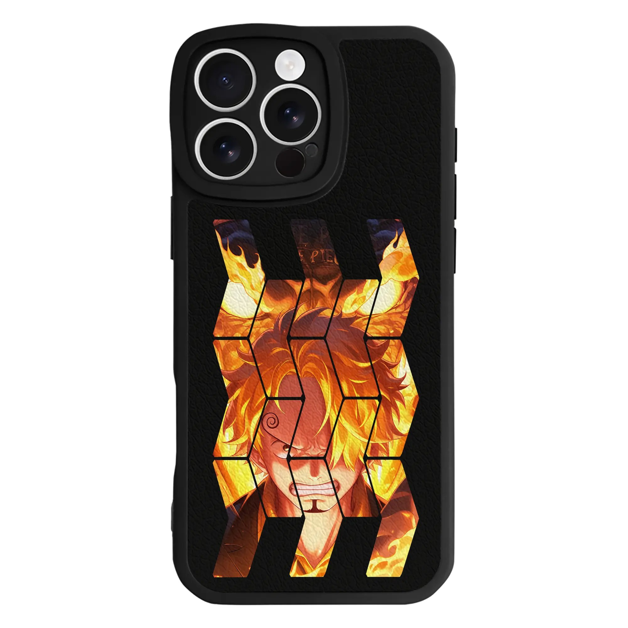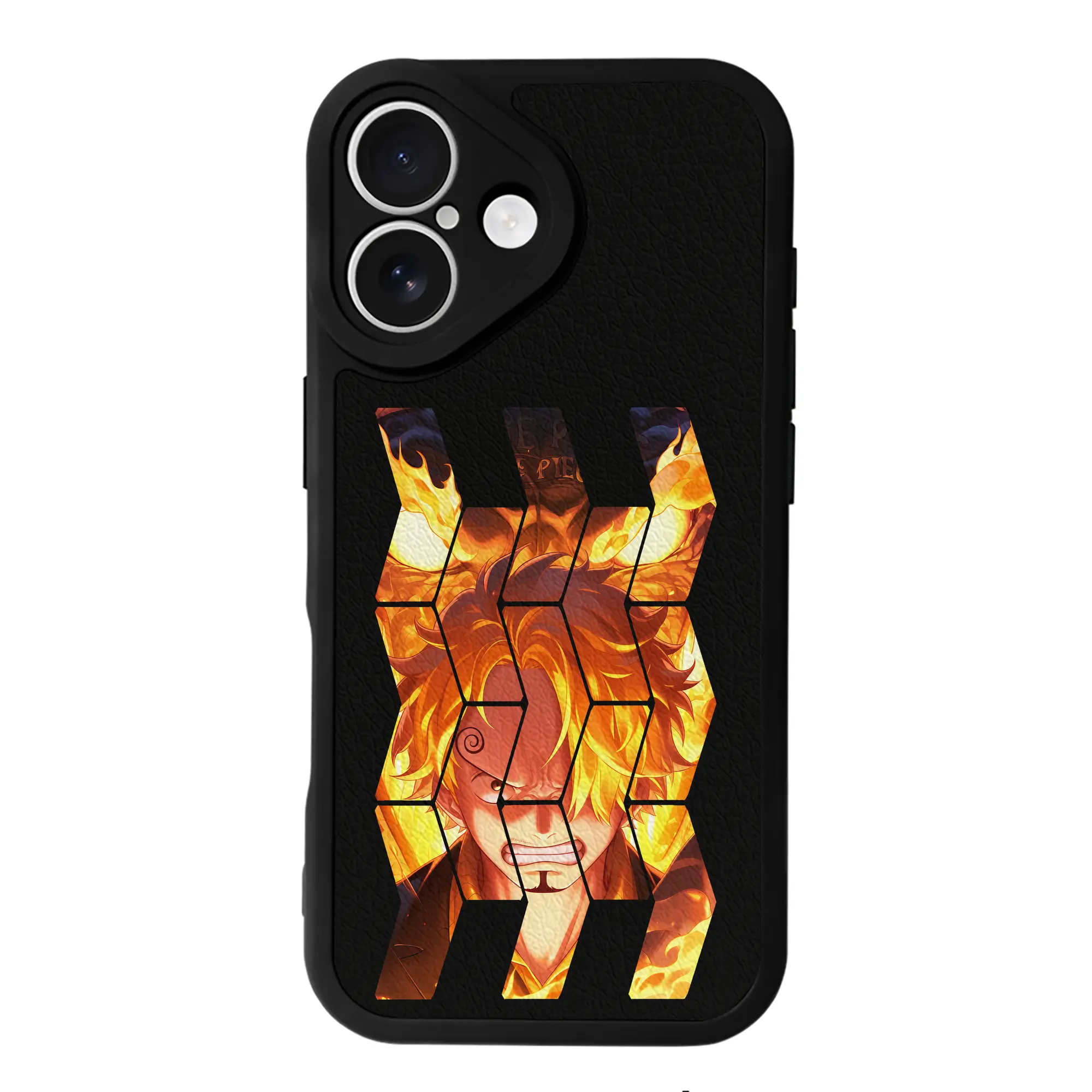 ワンピース グッズ ヴィンスモーク・サンジ - IPhone 16シリーズ対応 ・ シリコンスマホケース ・ レザー調 ・ 高精度フィット ・ 耐衝撃 ・ ワイヤレス充電対応 ・ 精密カット