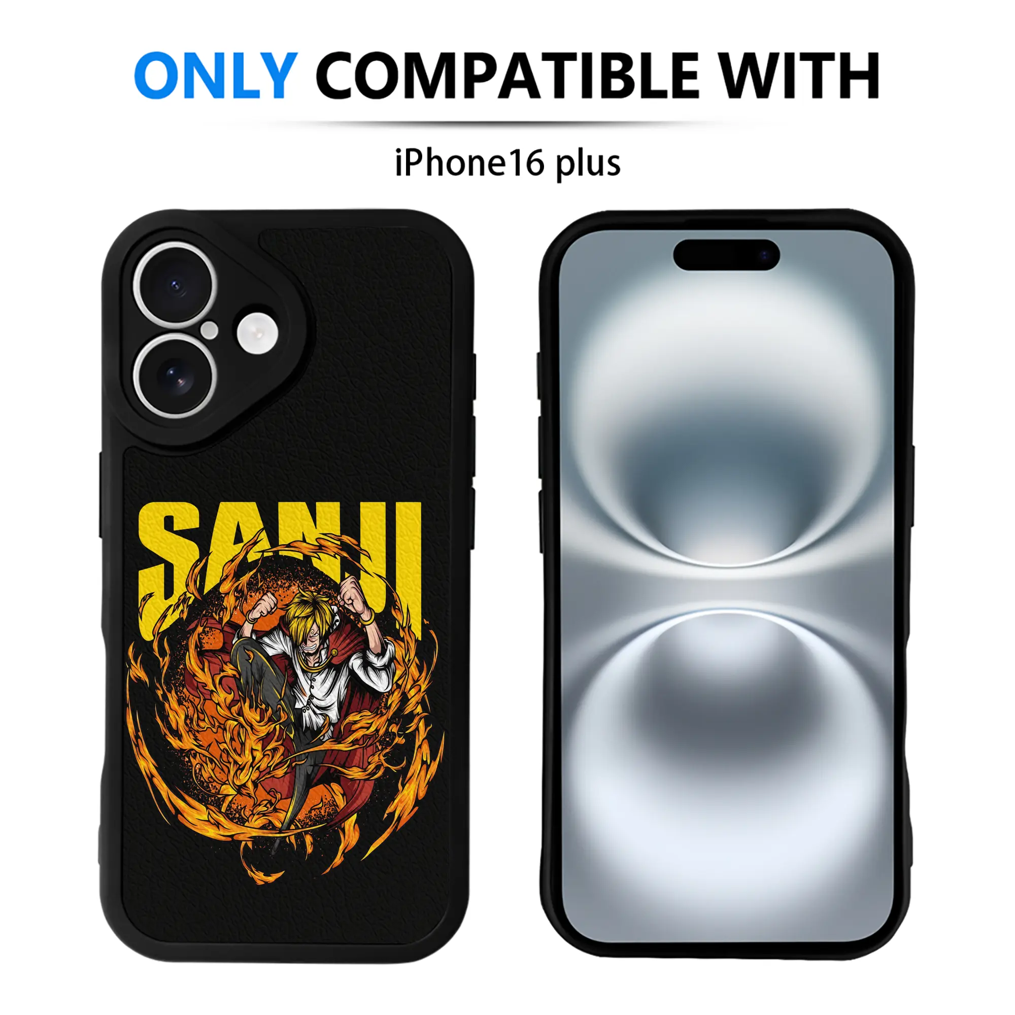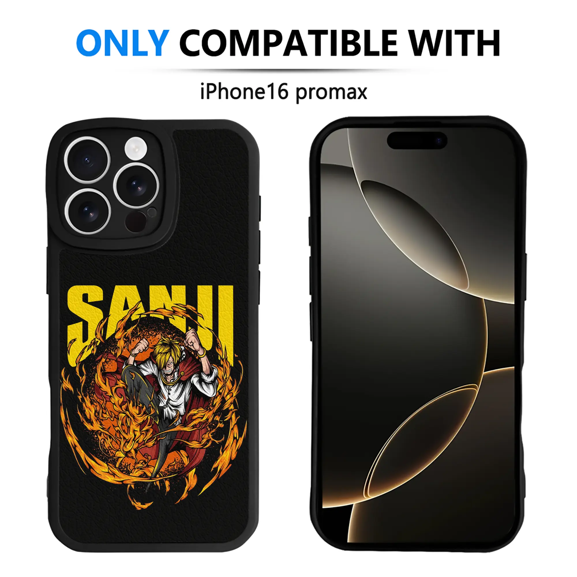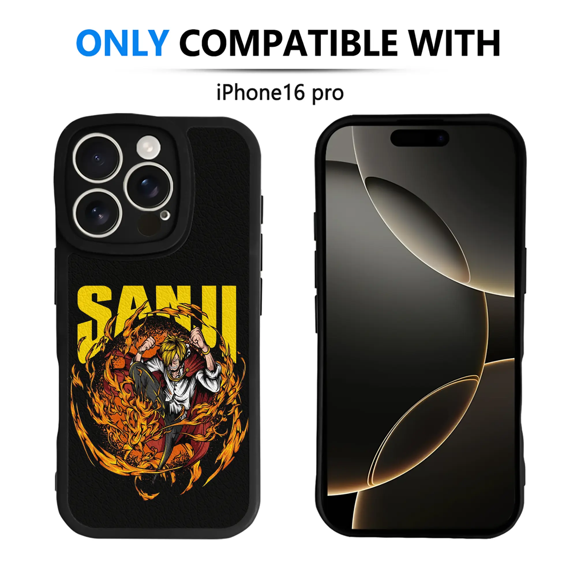 ワンピース グッズ ヴィンスモーク・サンジ - IPhone 16シリーズ対応 ・ シリコンスマホケース ・ レザー調 ・ 高精度フィット ・ 耐衝撃 ・ ワイヤレス充電対応 ・ 精密カット