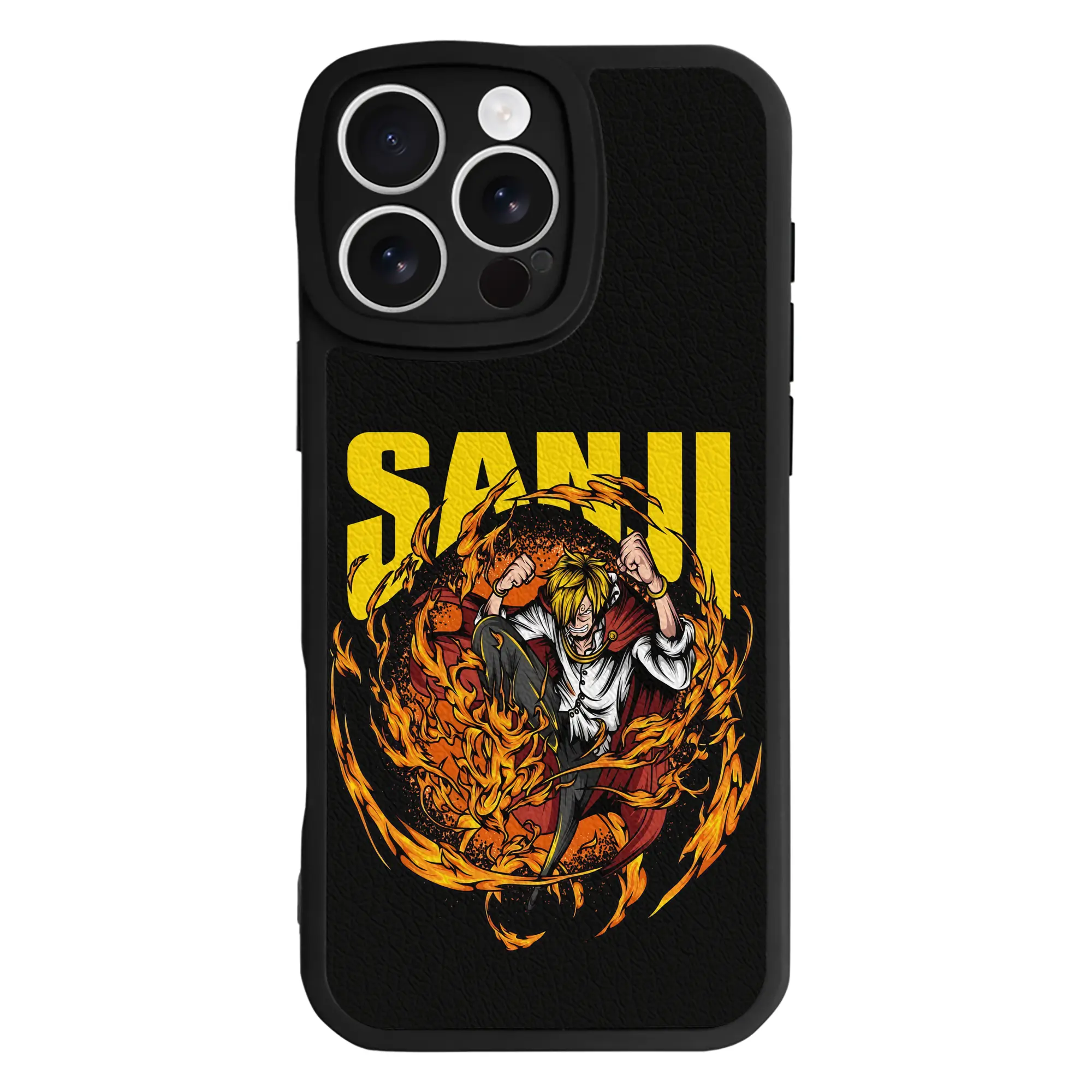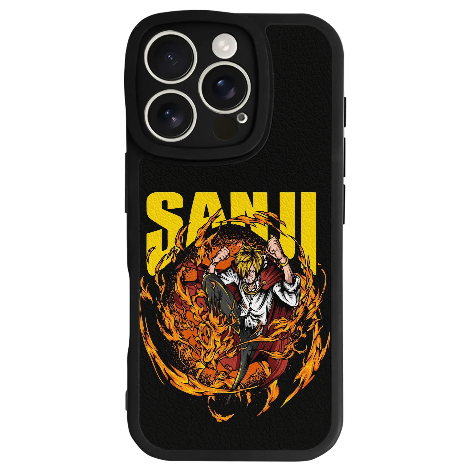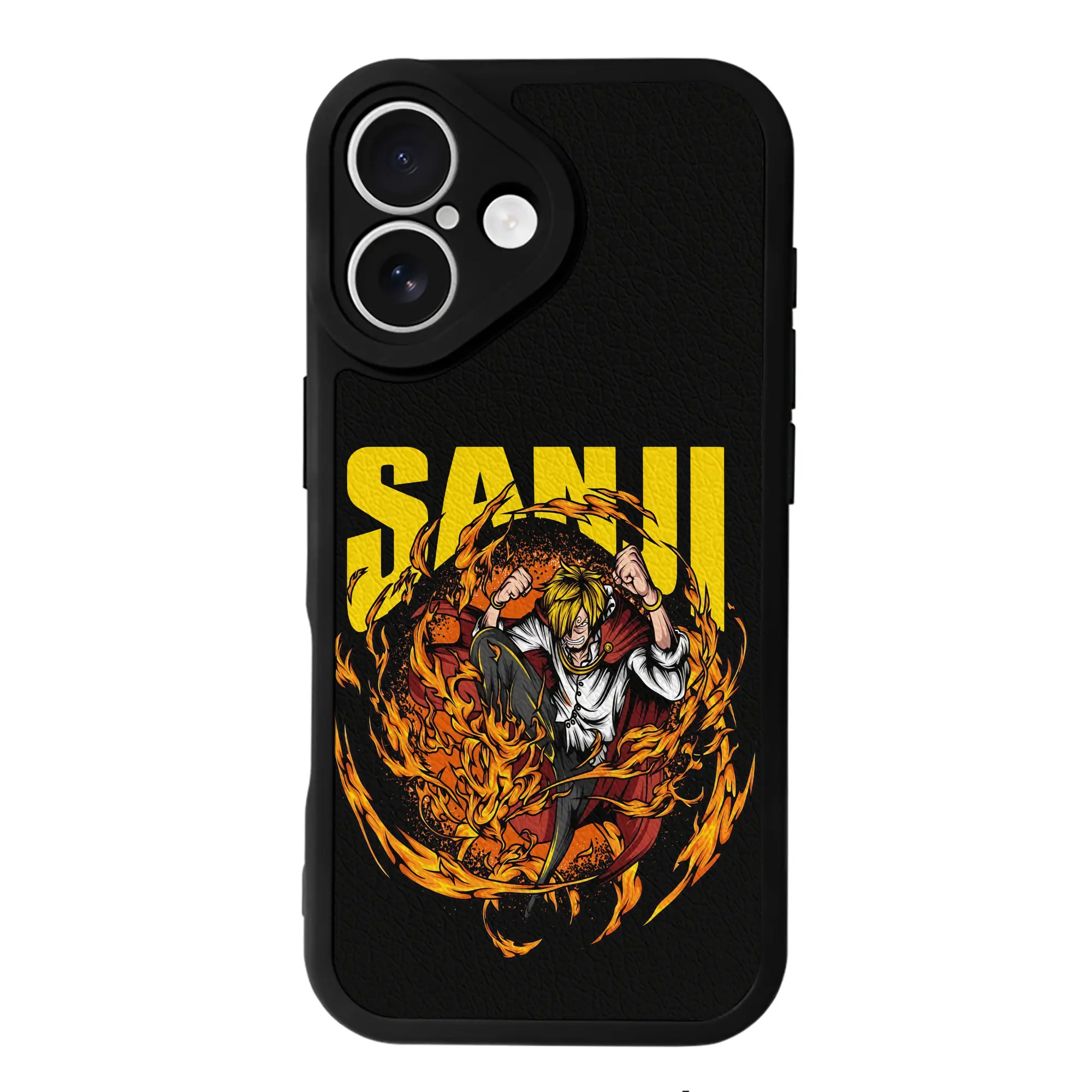 ワンピース グッズ ヴィンスモーク・サンジ - IPhone 16シリーズ対応 ・ シリコンスマホケース ・ レザー調 ・ 高精度フィット ・ 耐衝撃 ・ ワイヤレス充電対応 ・ 精密カット
