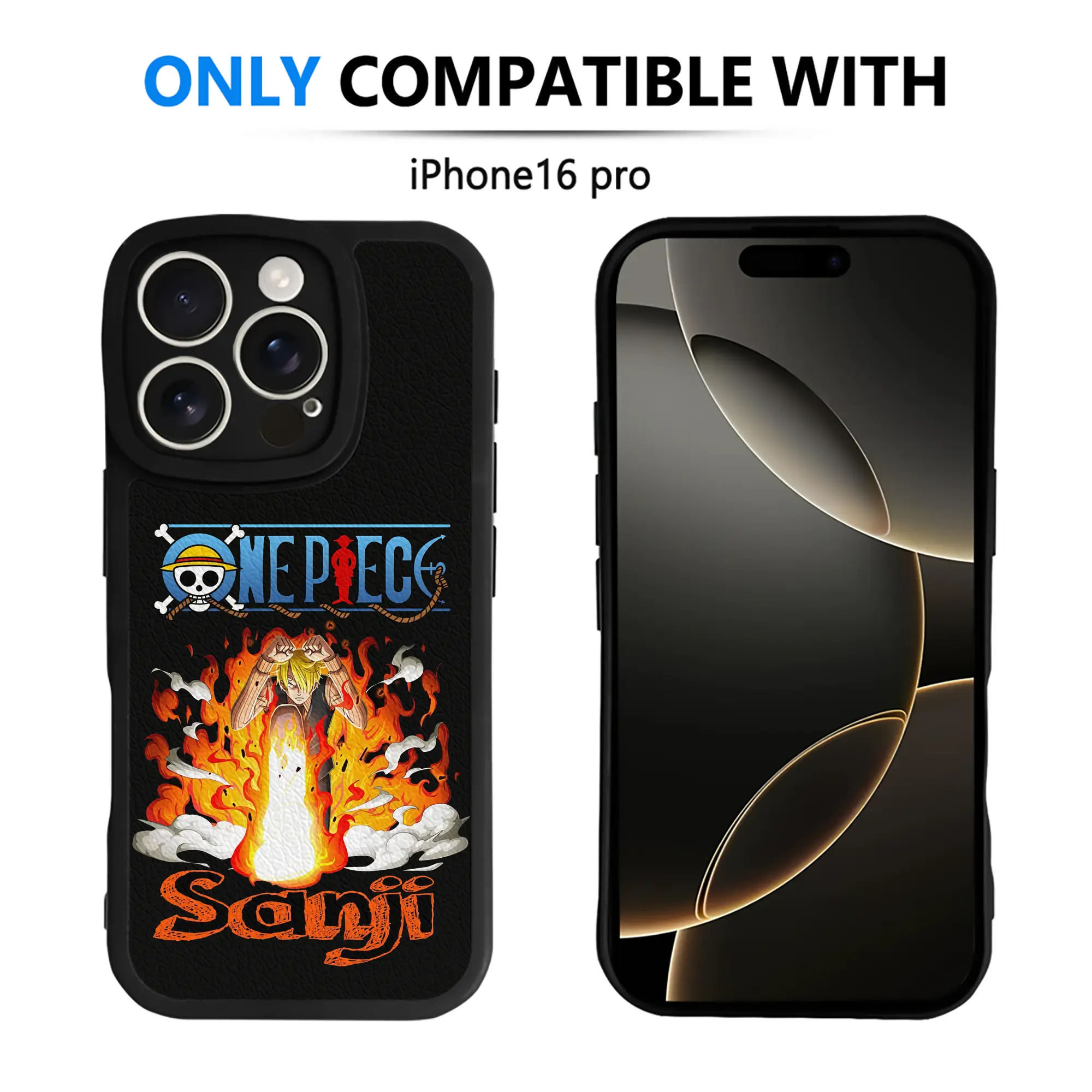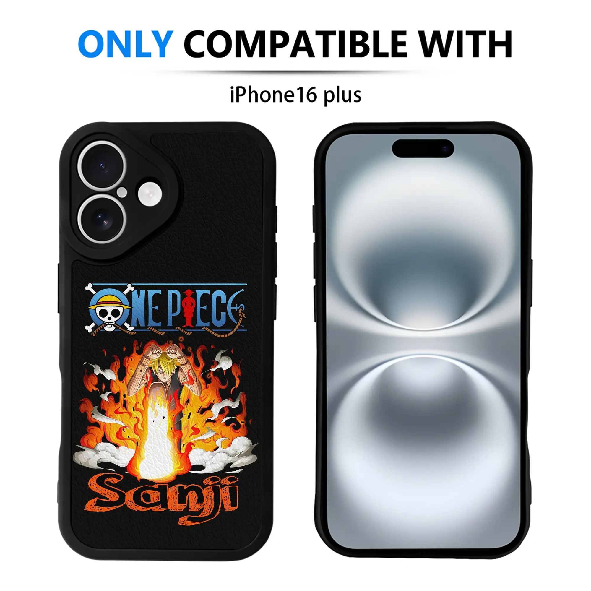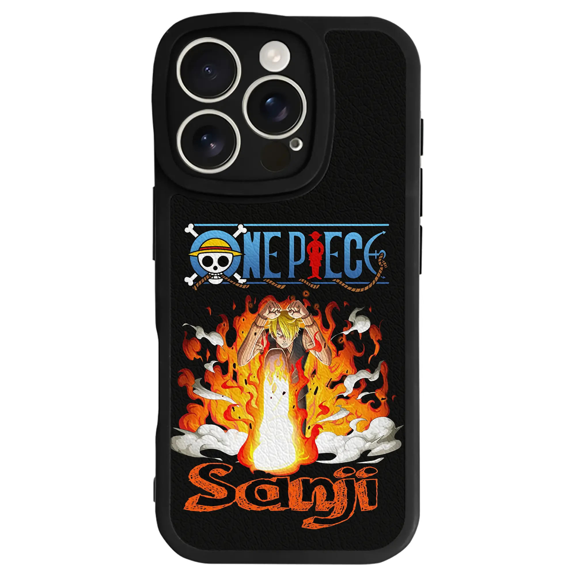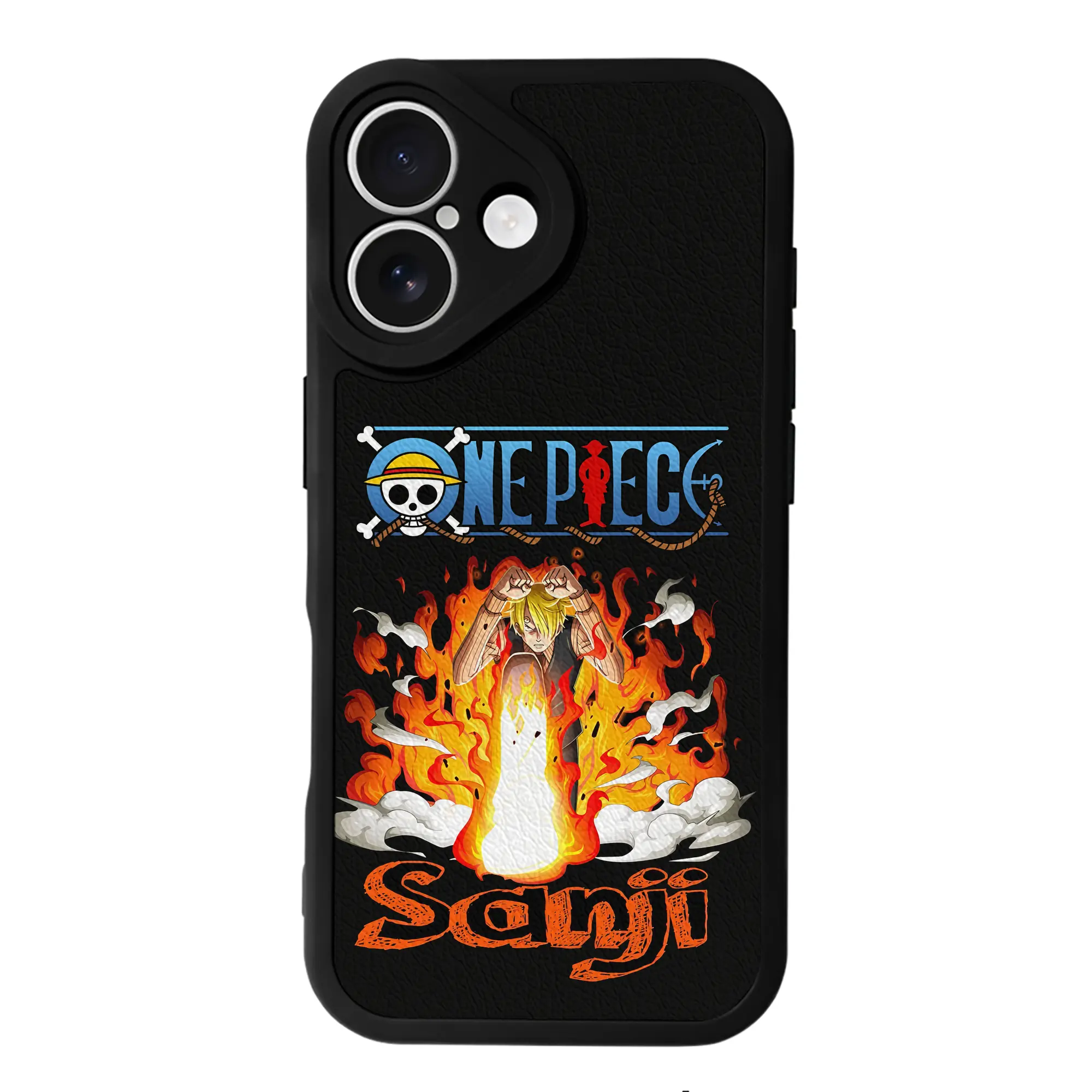 ワンピース グッズ ヴィンスモーク・サンジ - IPhone 16シリーズ対応 ・ シリコンスマホケース ・ レザー調 ・ 高精度フィット ・ 耐衝撃 ・ ワイヤレス充電対応 ・ 精密カット