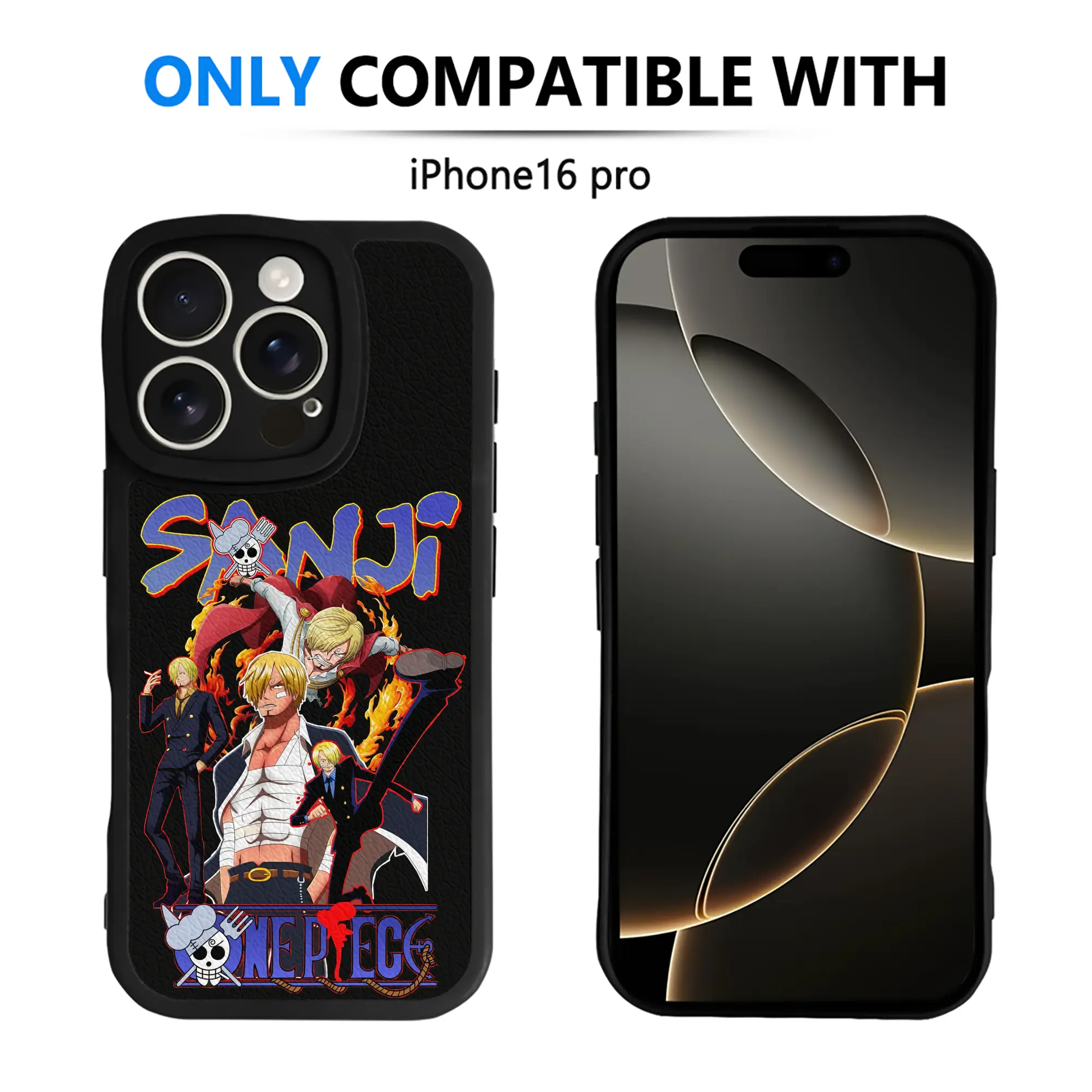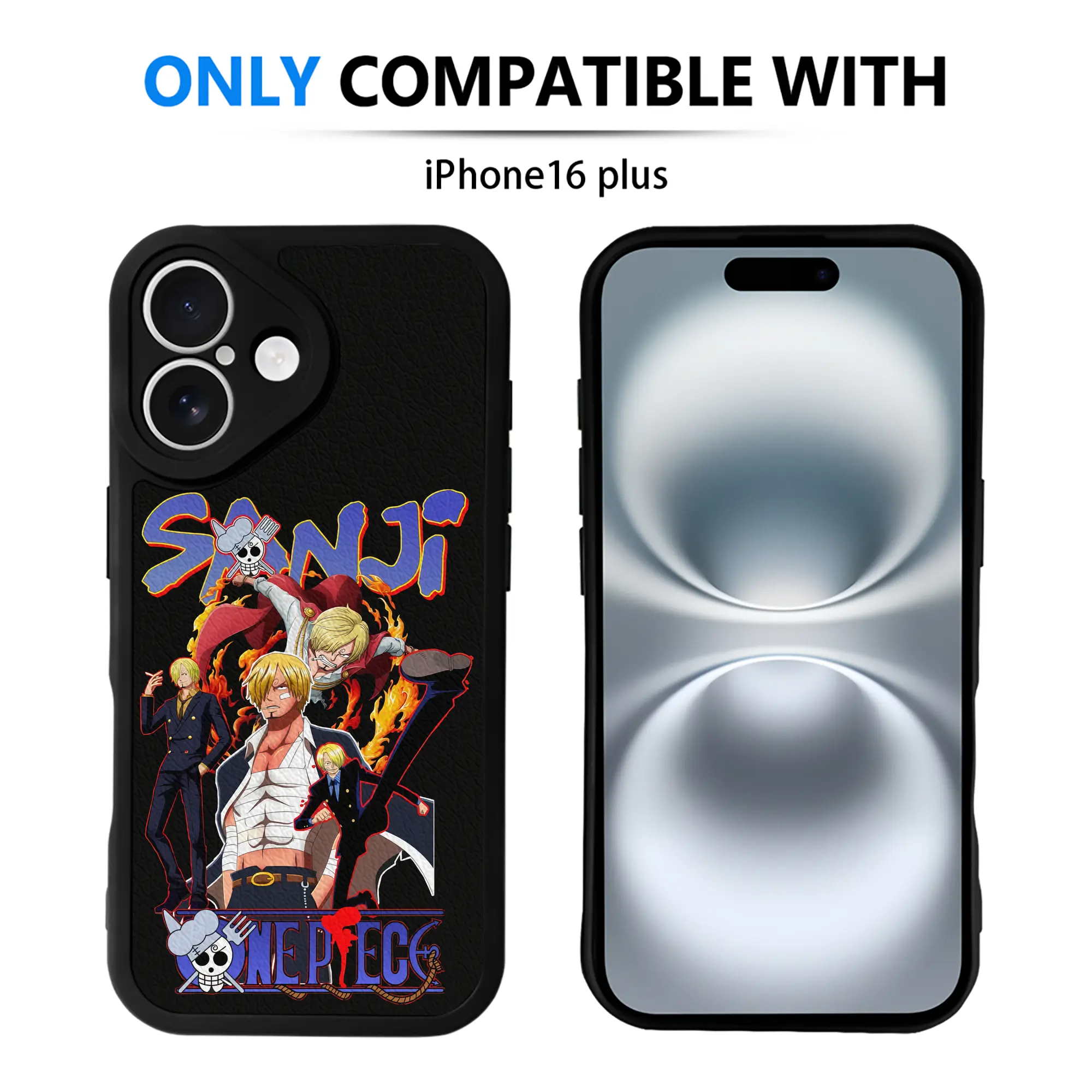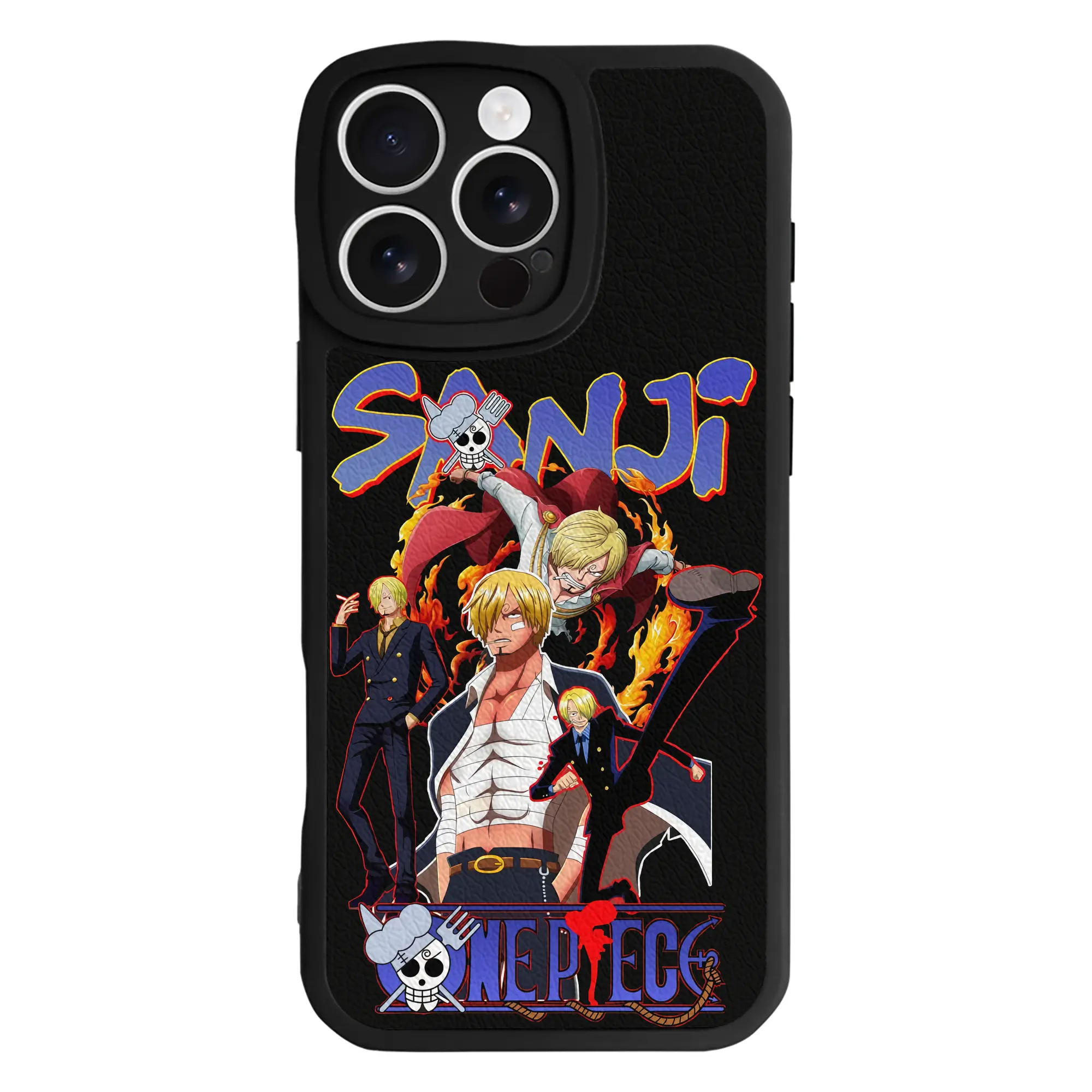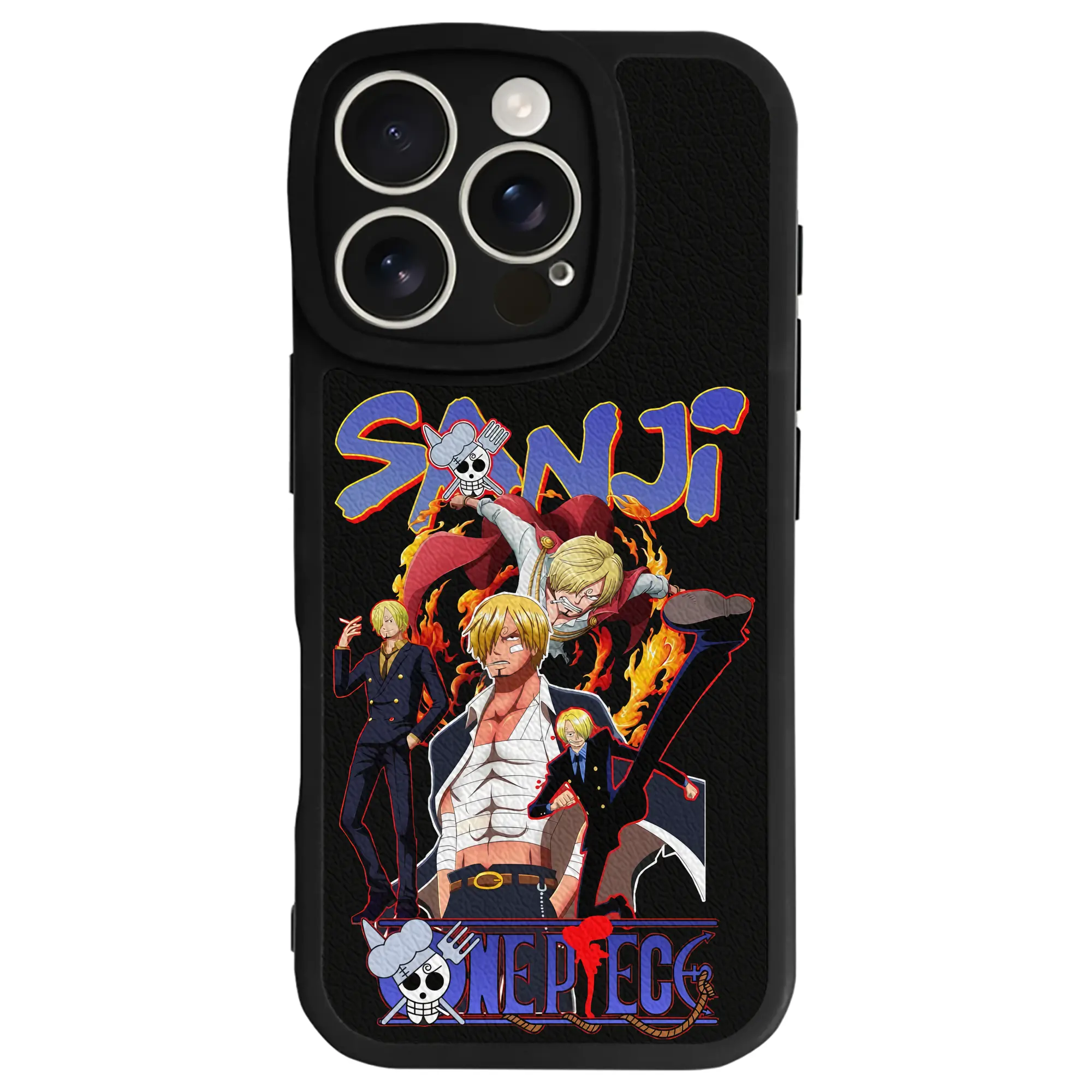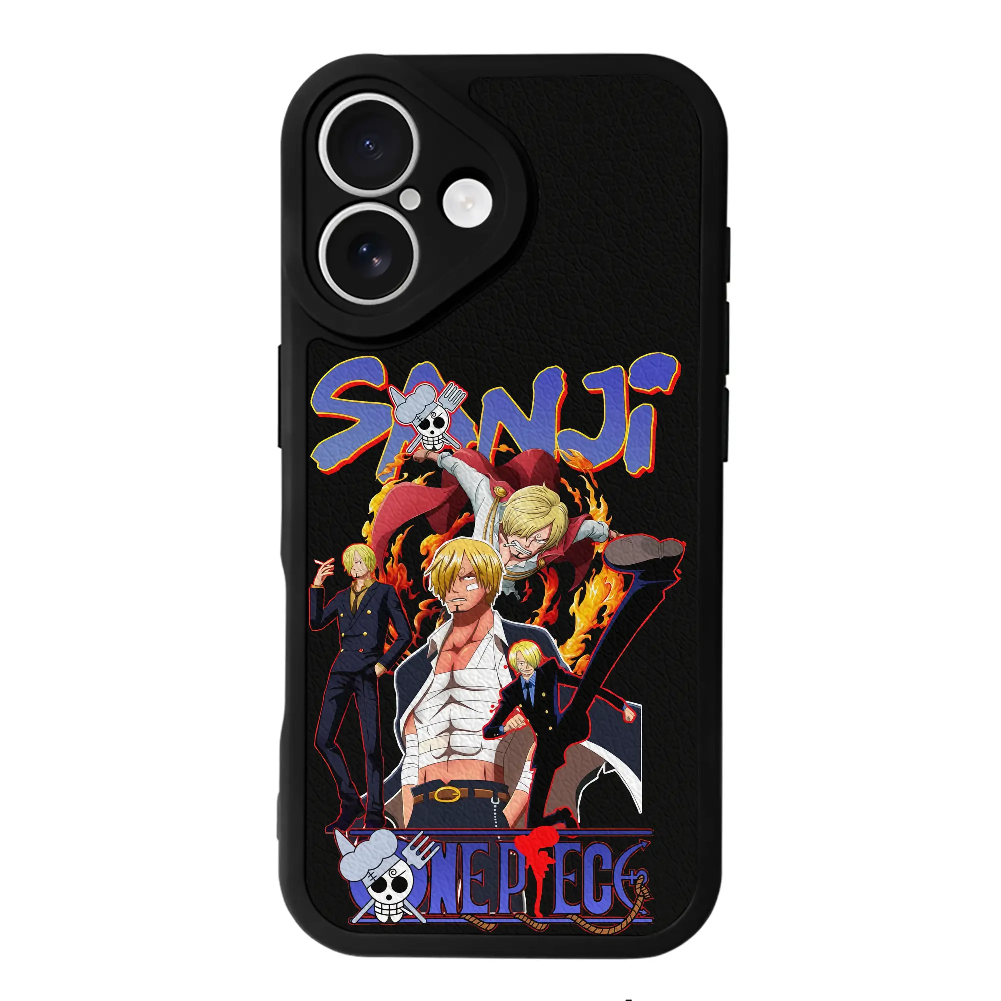 ワンピース グッズ ヴィンスモーク・サンジ - IPhone 16シリーズ対応 ・ シリコンスマホケース ・ レザー調 ・ 高精度フィット ・ 耐衝撃 ・ ワイヤレス充電対応 ・ 精密カット