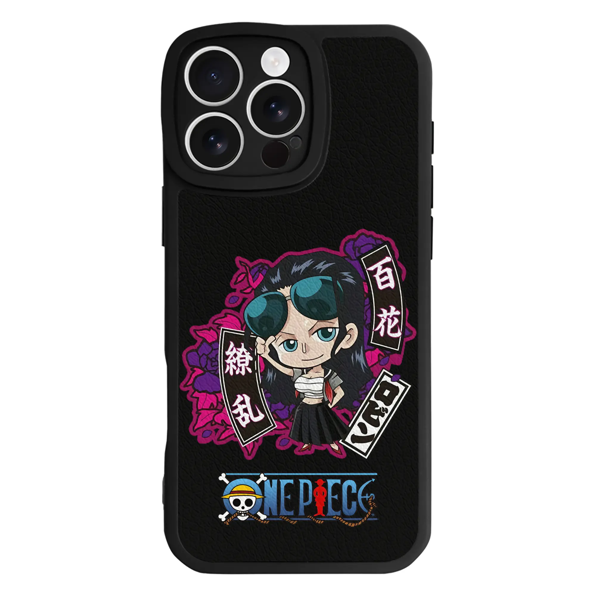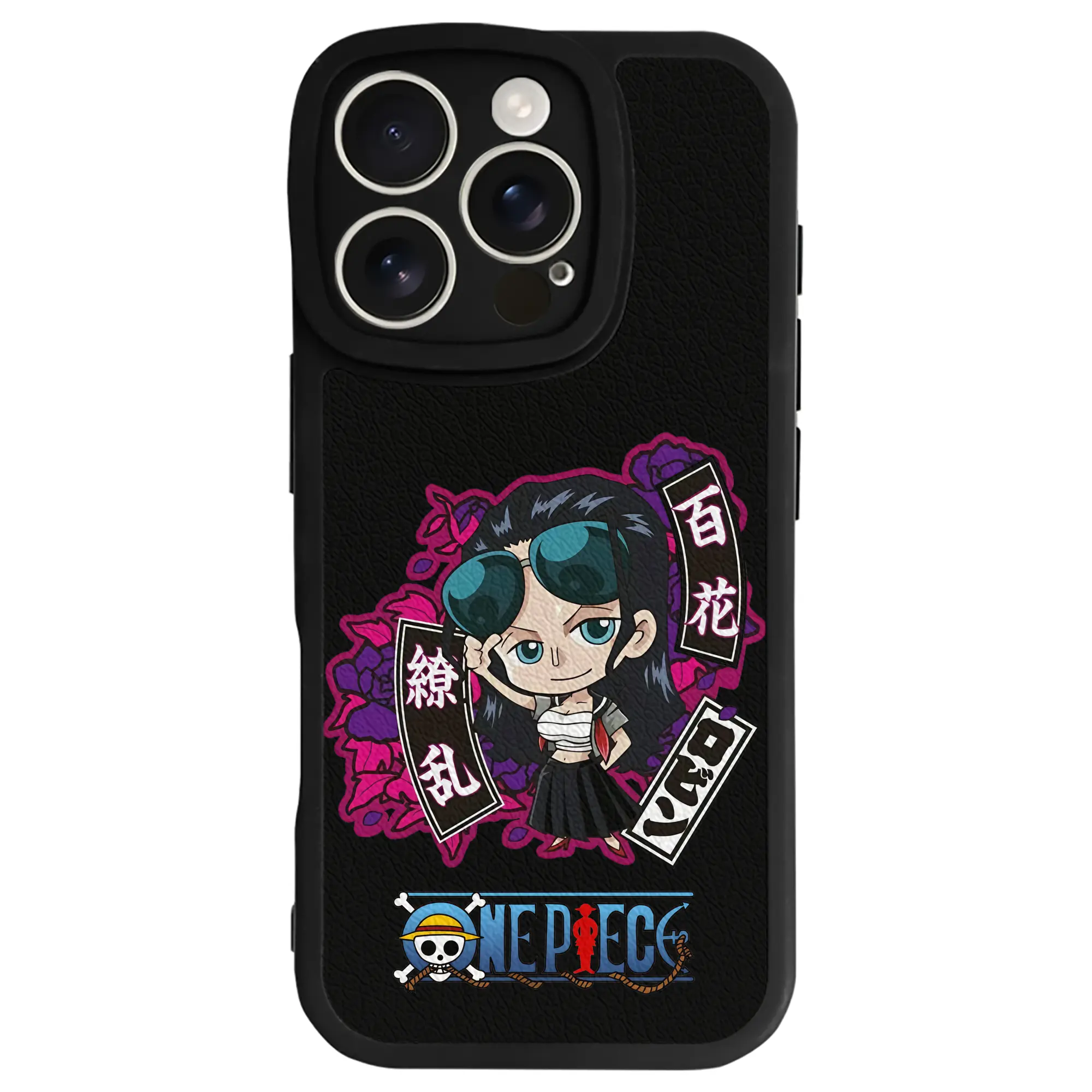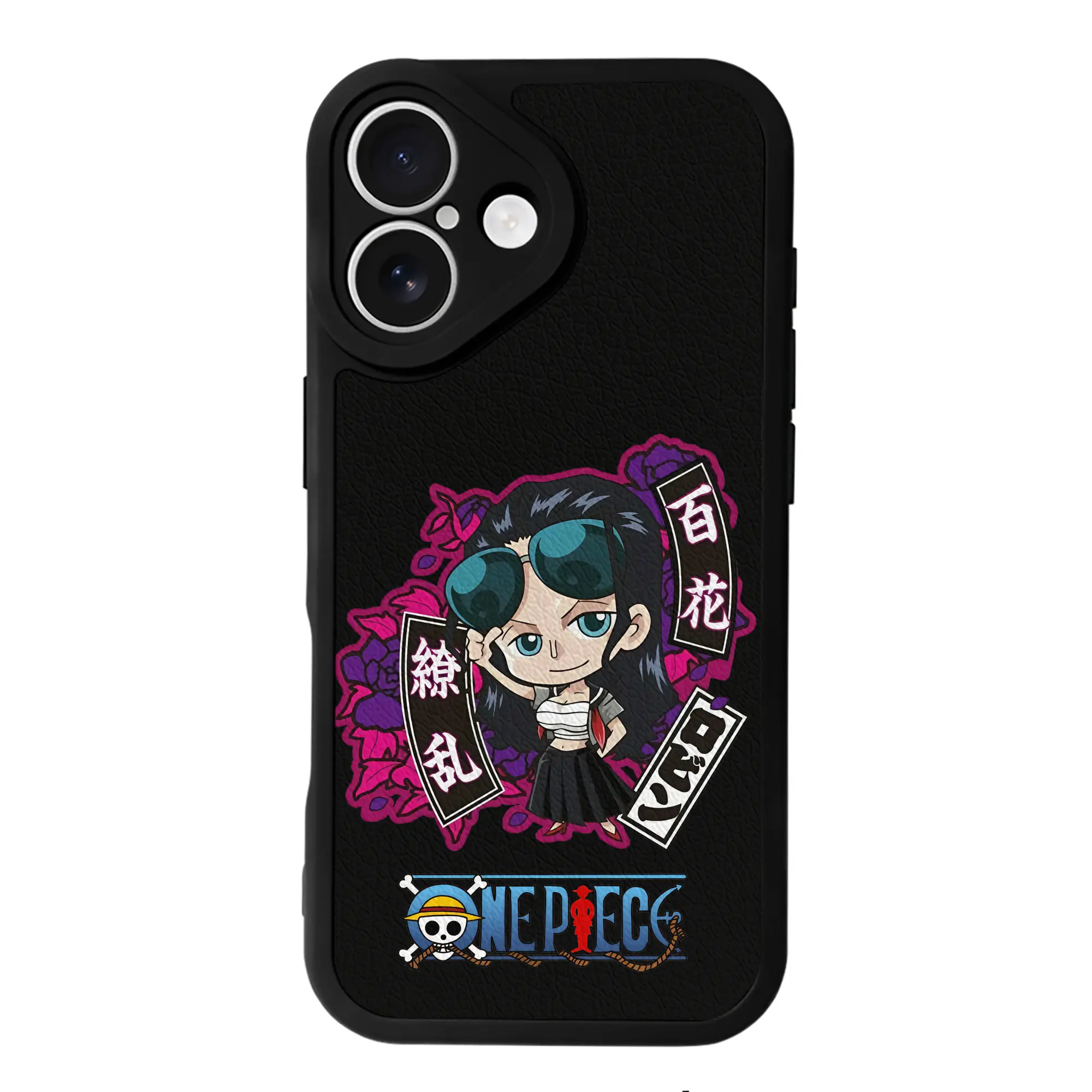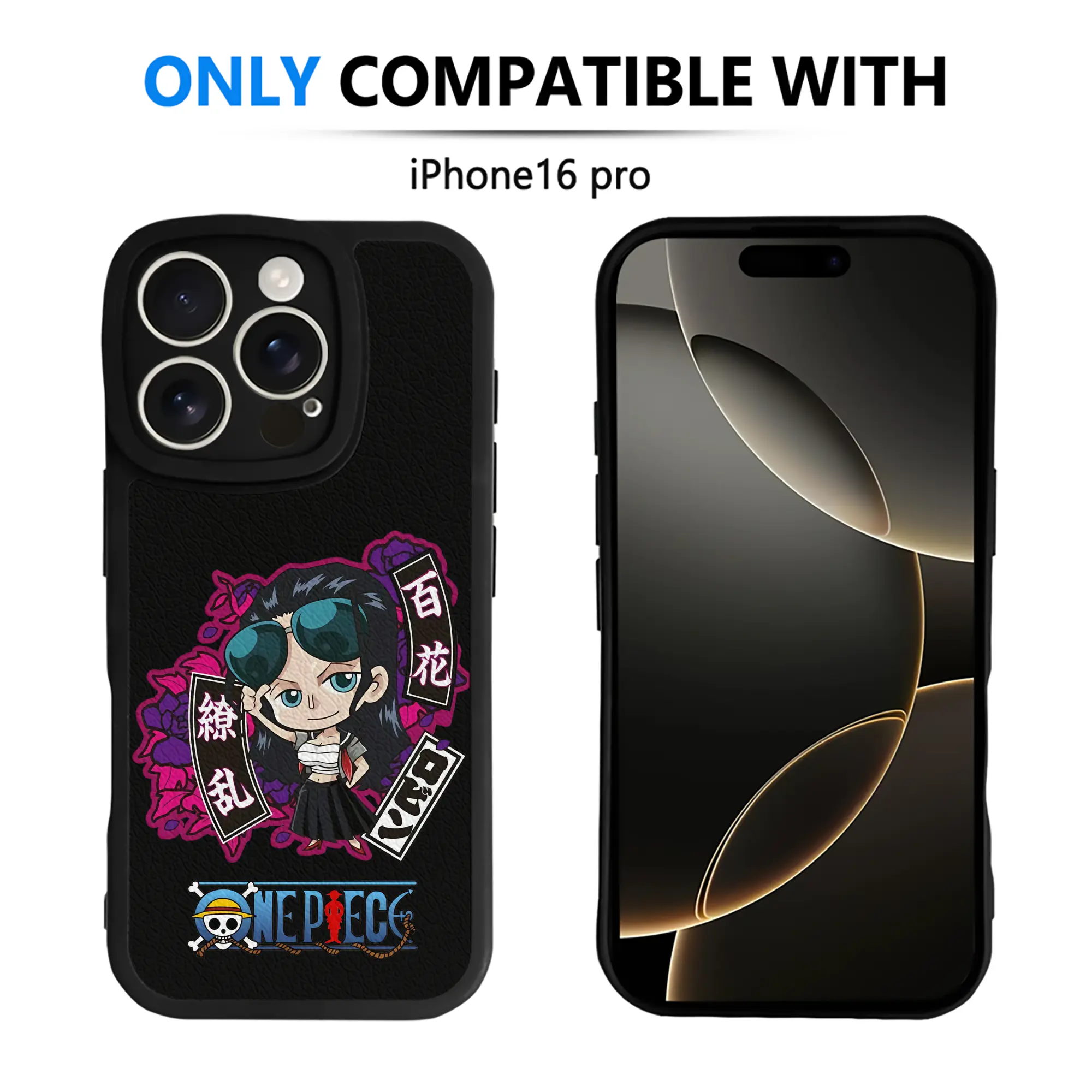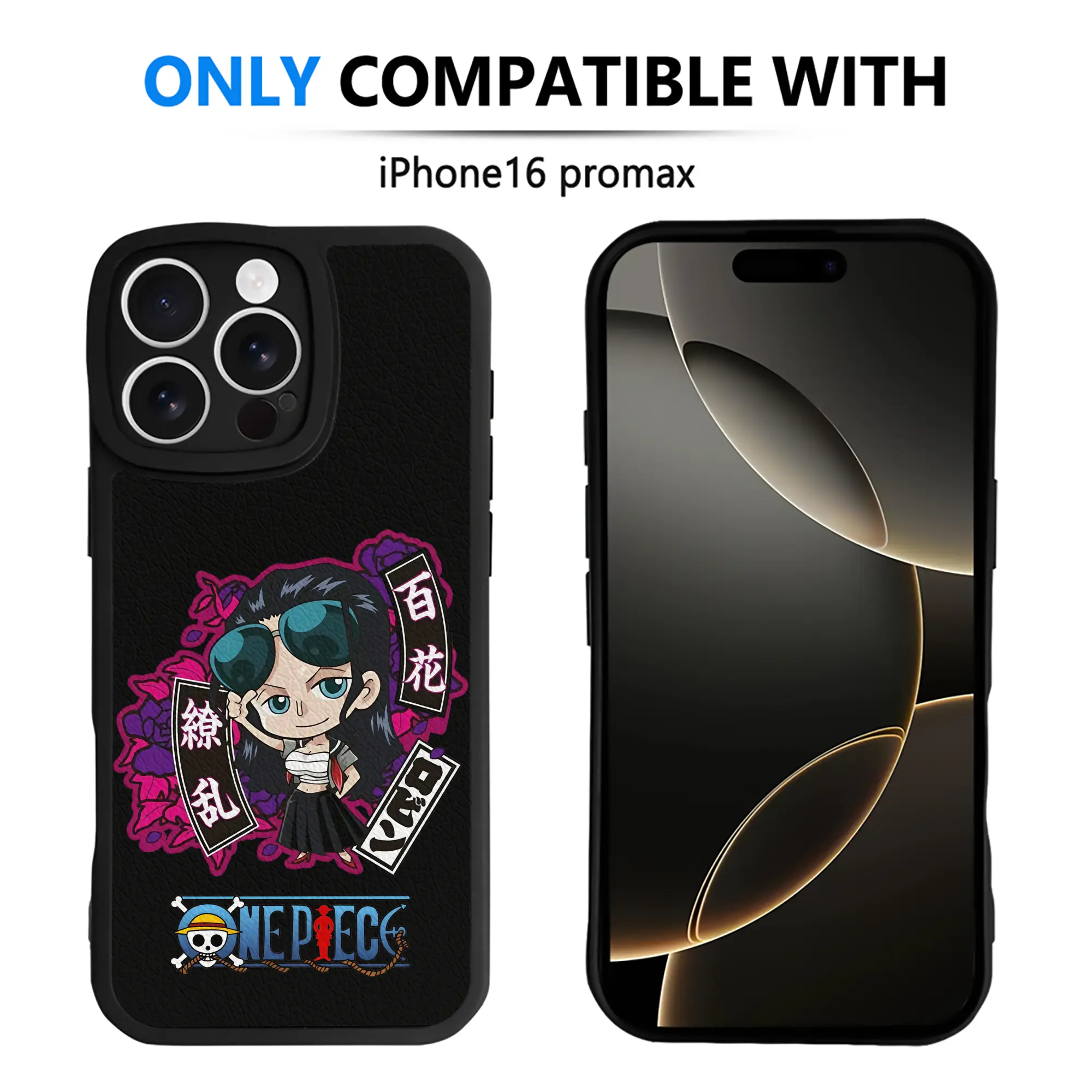 ワンピース グッズ ニコ・ロビン - IPhone 16シリーズ対応 ・ シリコンスマホケース ・ レザー調 ・ 高精度フィット ・ 耐衝撃 ・ ワイヤレス充電対応 ・ 精密カット