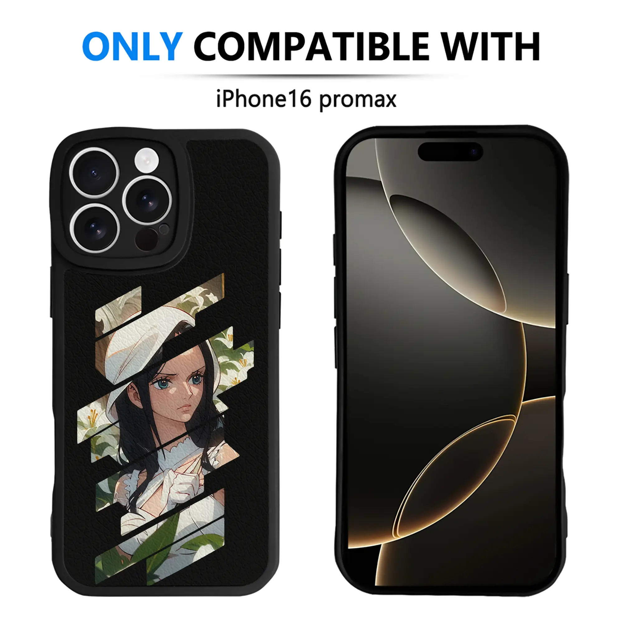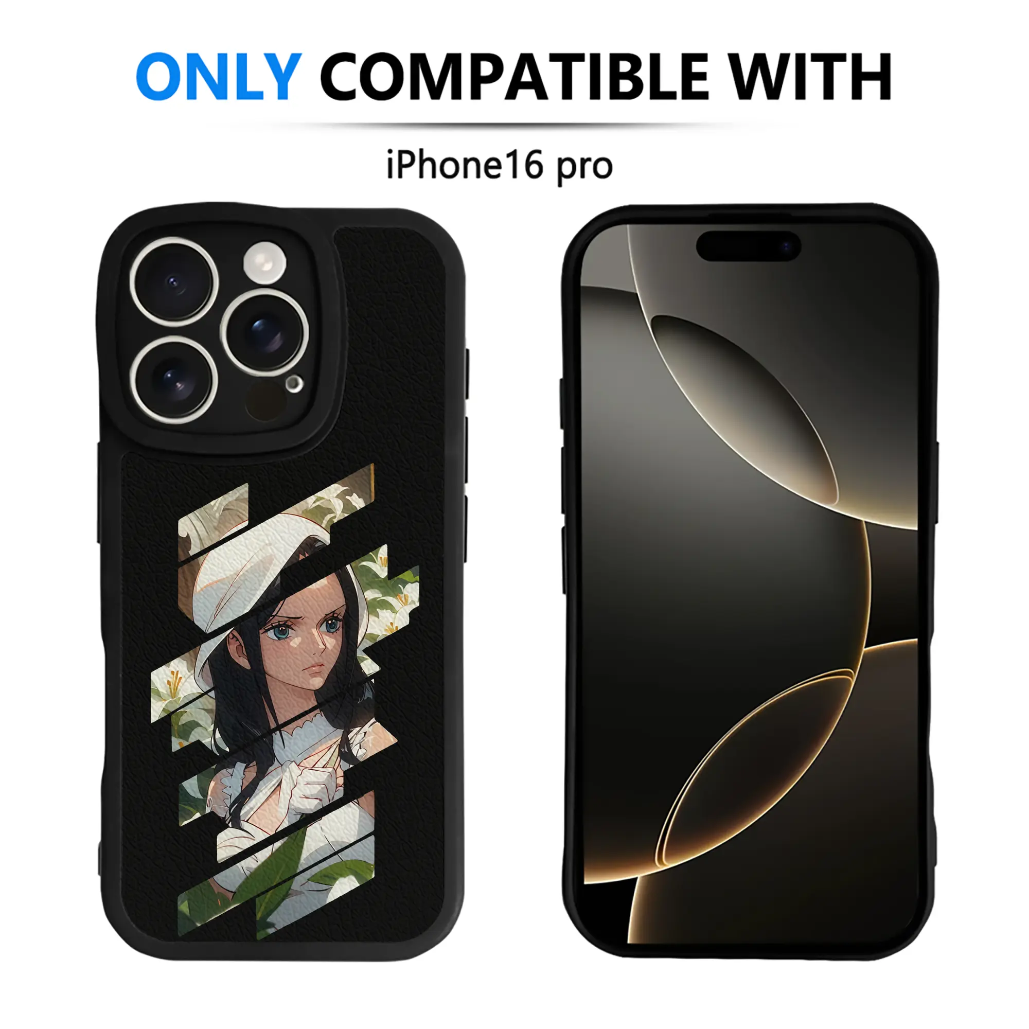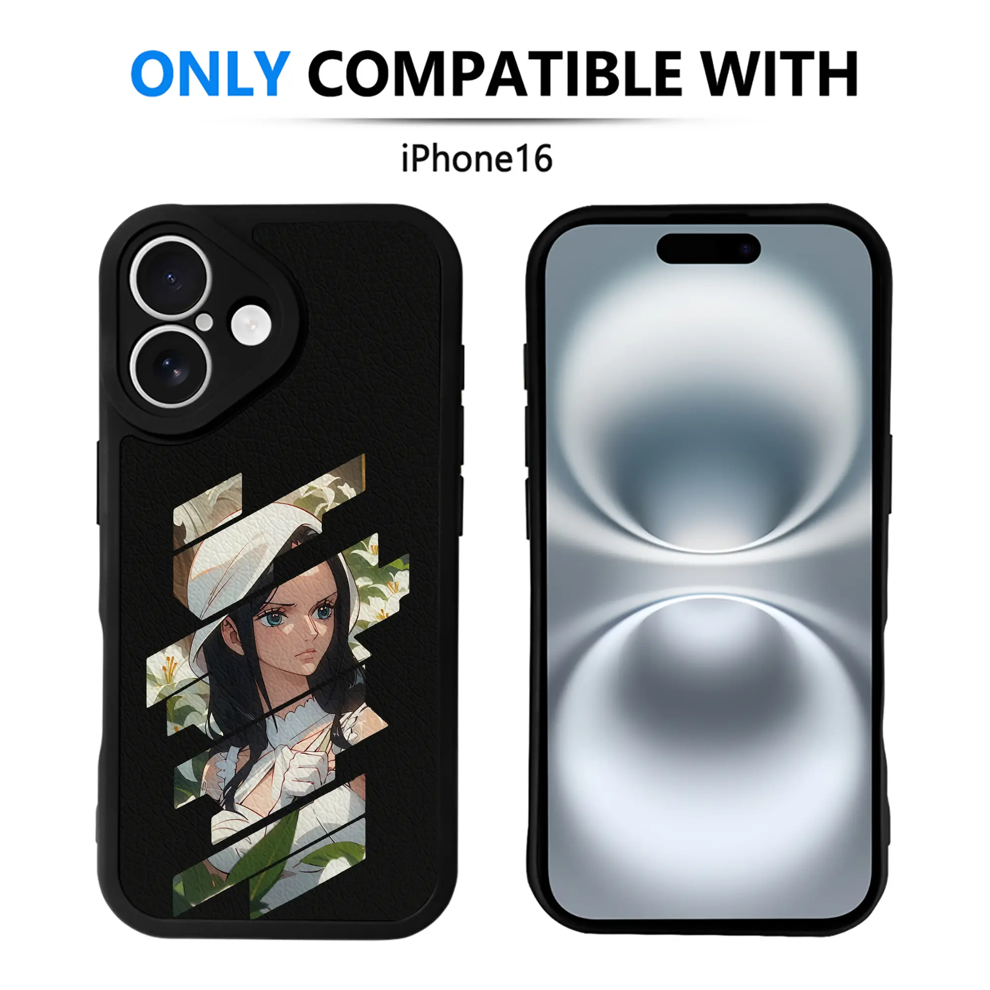 ワンピース グッズ ニコ・ロビン - IPhone 16シリーズ対応 ・ シリコンスマホケース ・ レザー調 ・ 高精度フィット ・ 耐衝撃 ・ ワイヤレス充電対応 ・ 精密カット