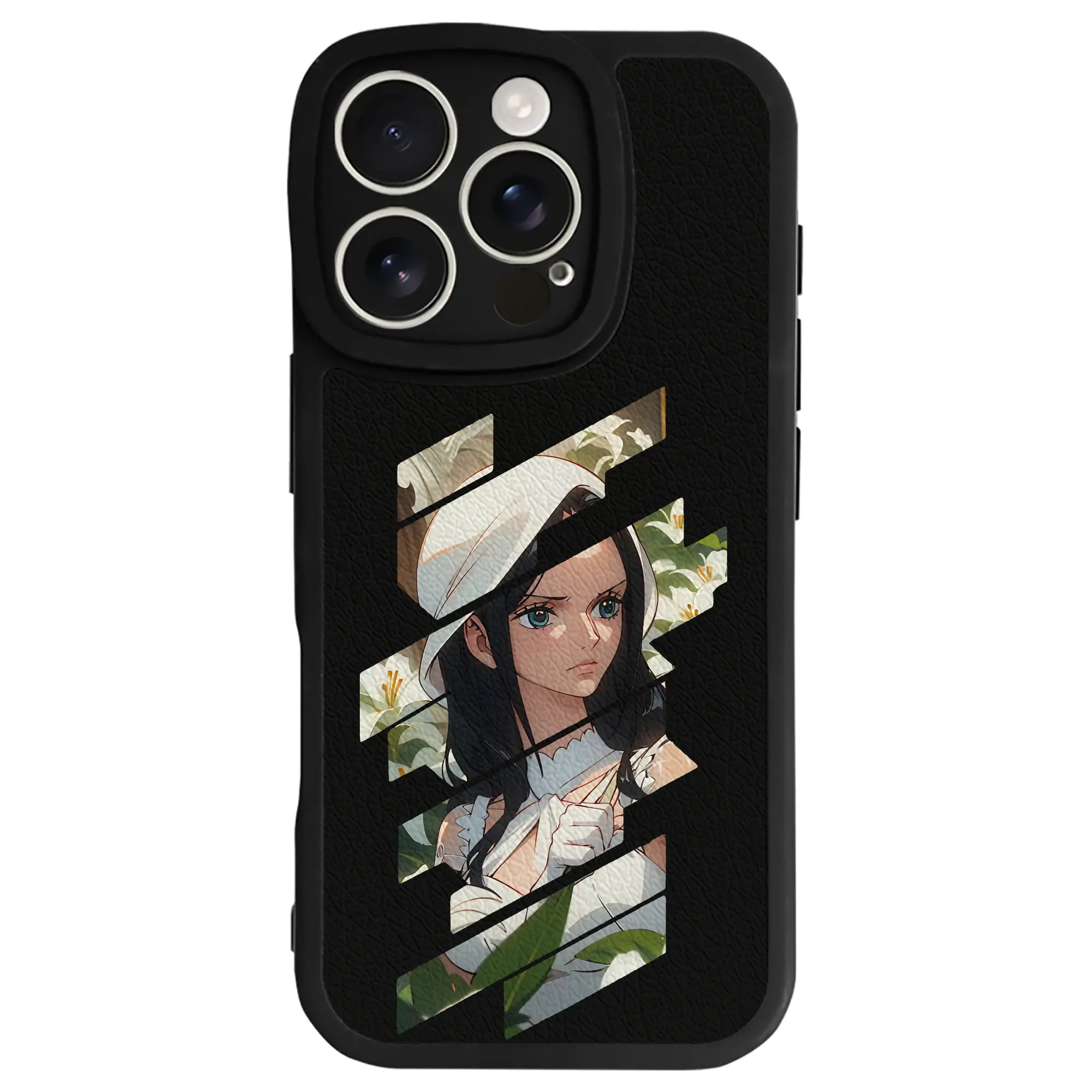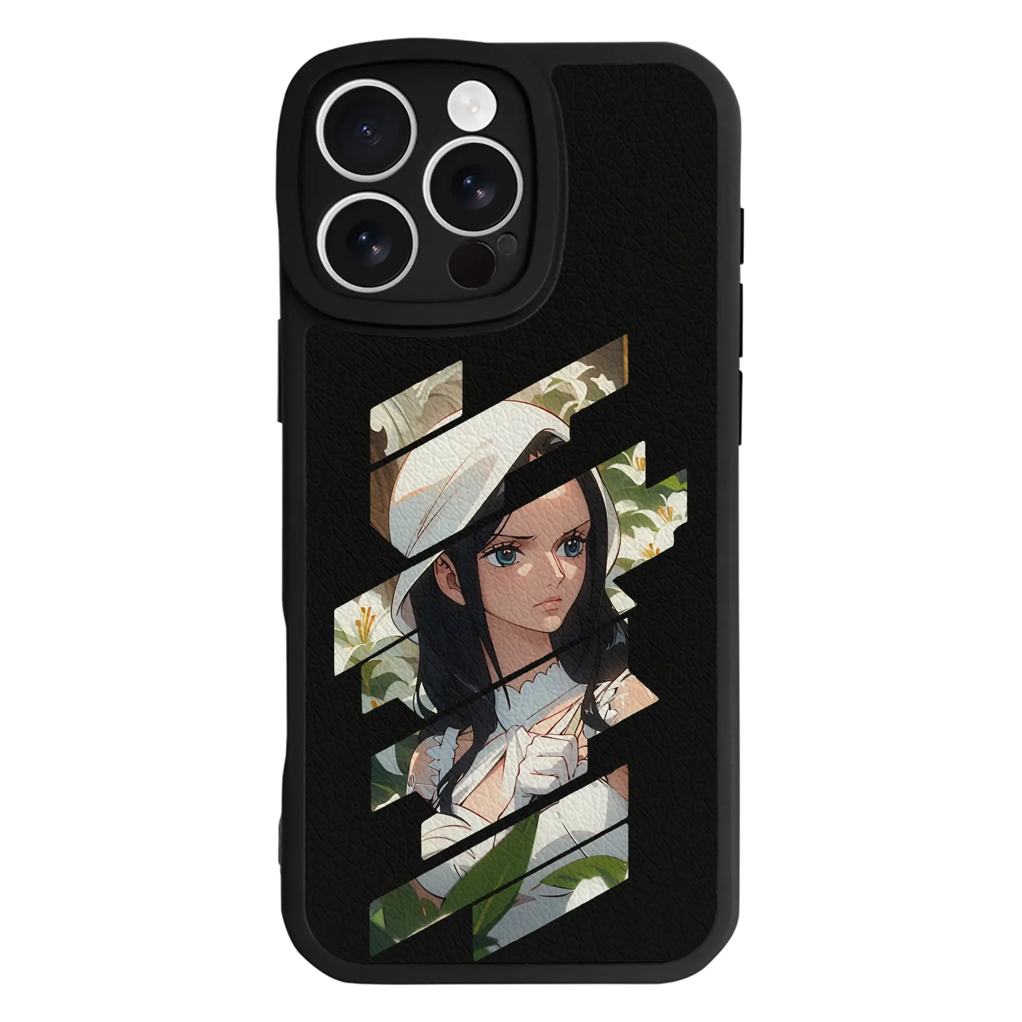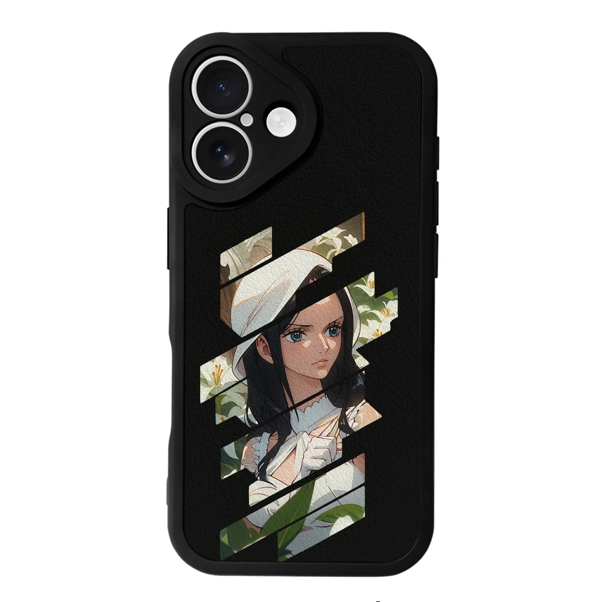 ワンピース グッズ ニコ・ロビン - IPhone 16シリーズ対応 ・ シリコンスマホケース ・ レザー調 ・ 高精度フィット ・ 耐衝撃 ・ ワイヤレス充電対応 ・ 精密カット