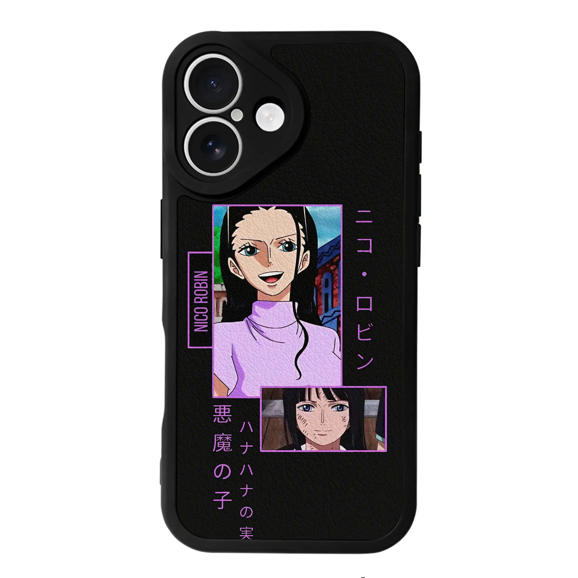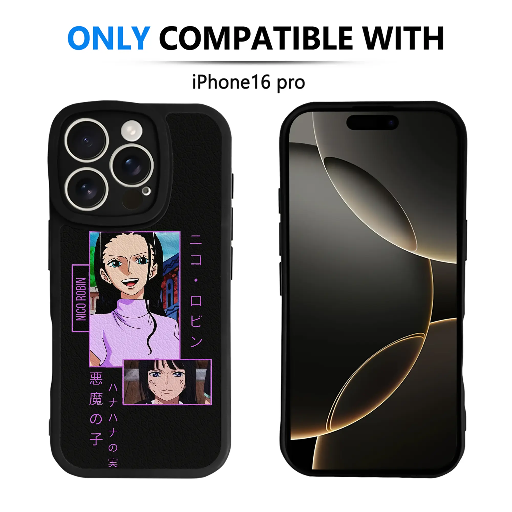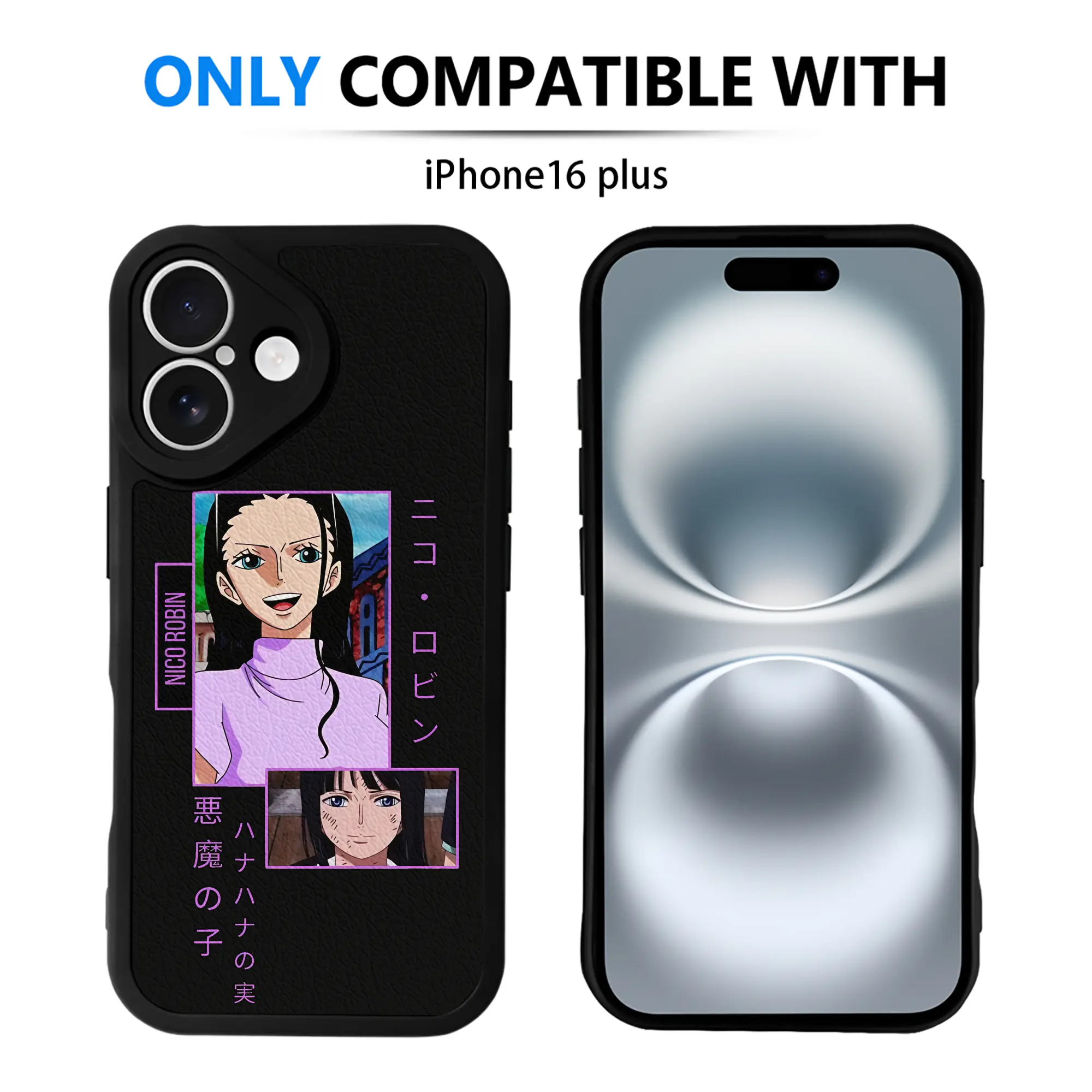 ワンピース グッズ ニコ・ロビン - IPhone 16シリーズ対応 ・ シリコンスマホケース ・ レザー調 ・ 高精度フィット ・ 耐衝撃 ・ ワイヤレス充電対応 ・ 精密カット