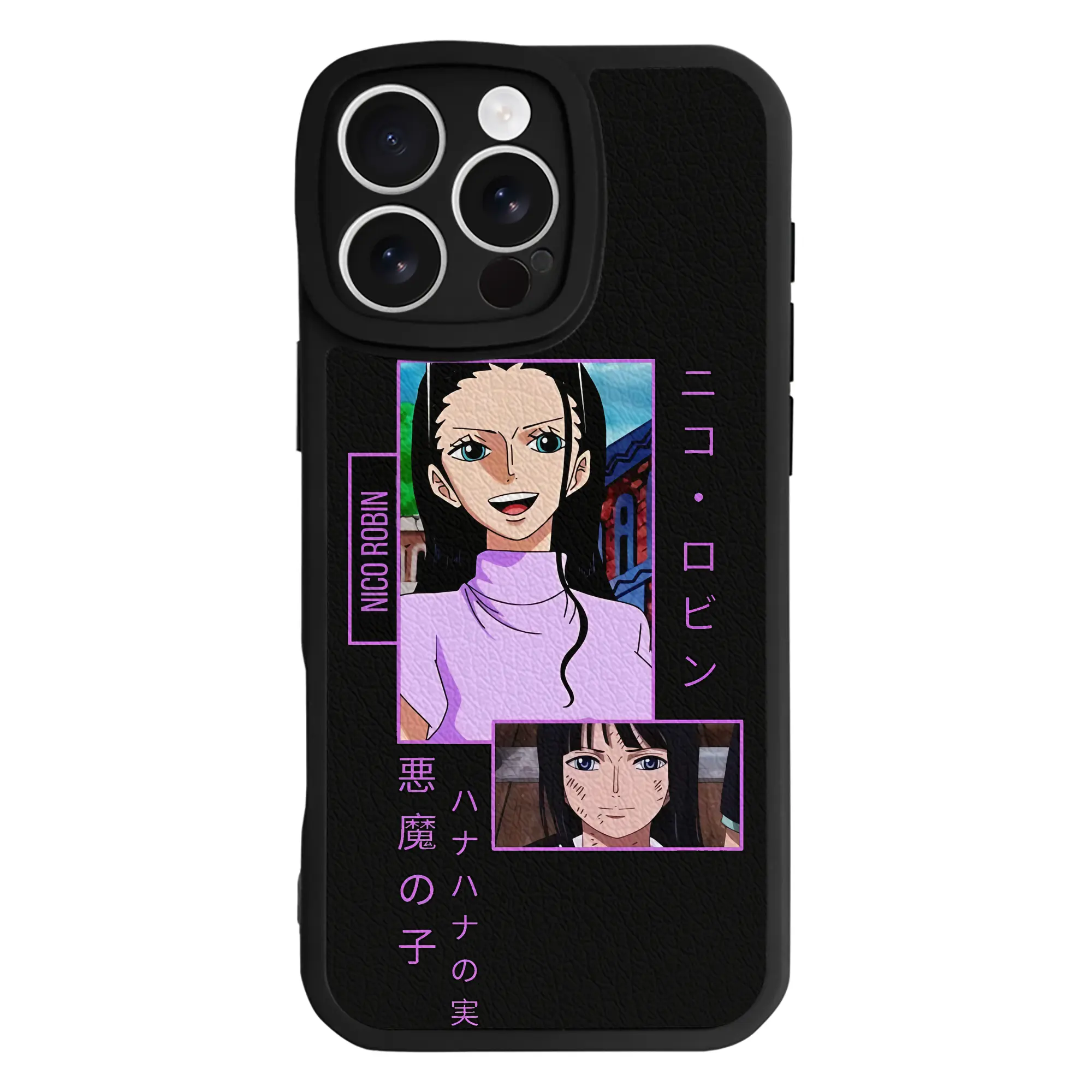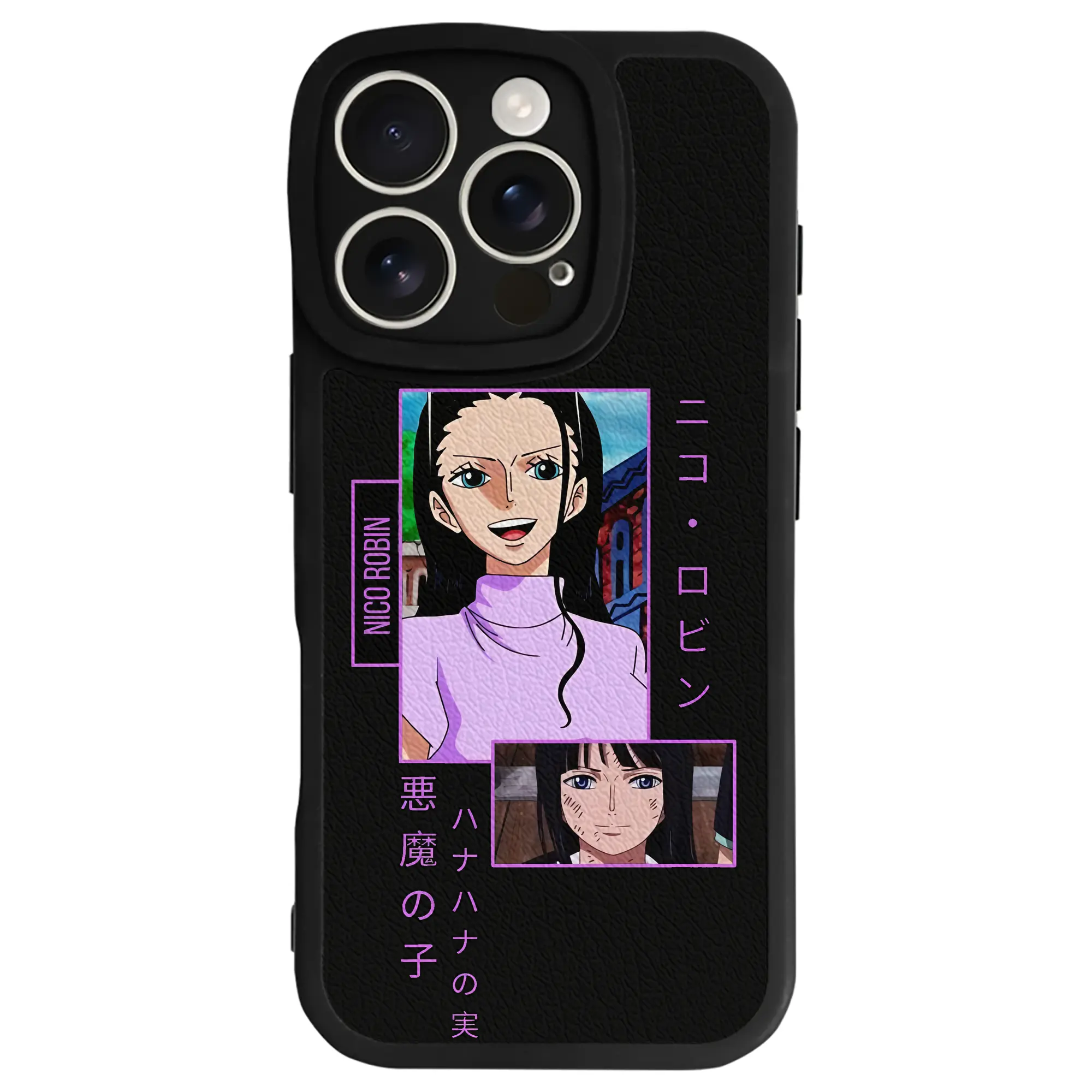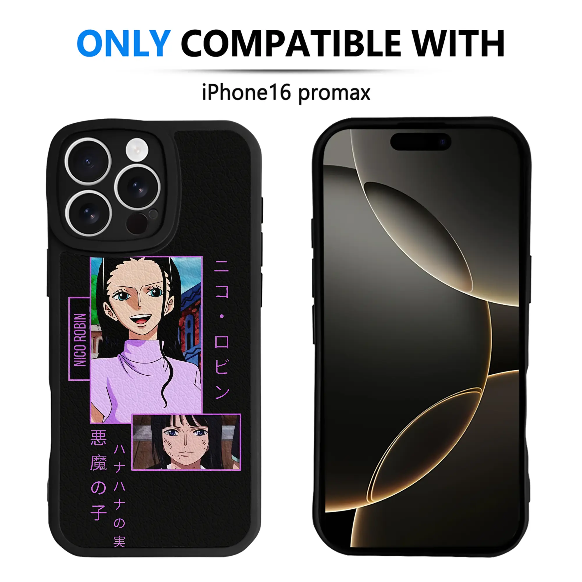 ワンピース グッズ ニコ・ロビン - IPhone 16シリーズ対応 ・ シリコンスマホケース ・ レザー調 ・ 高精度フィット ・ 耐衝撃 ・ ワイヤレス充電対応 ・ 精密カット