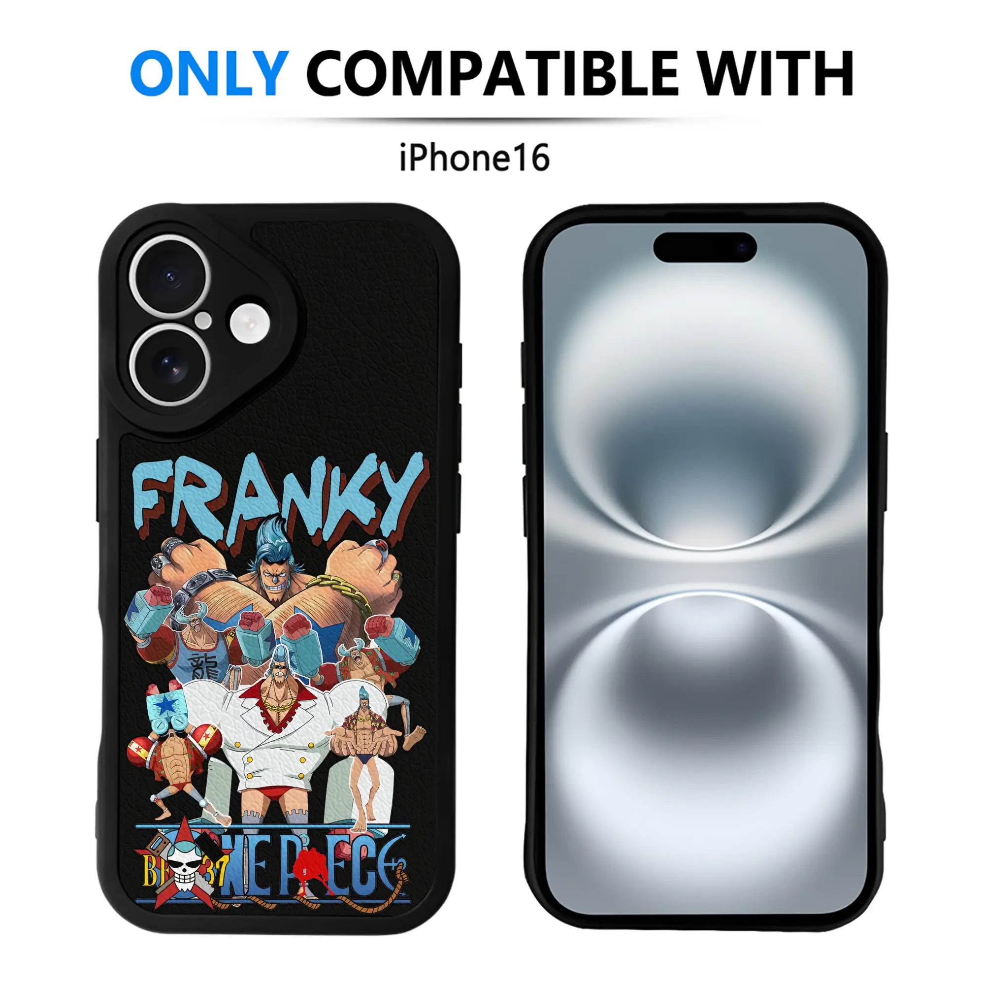 ワンピース グッズ フランキー - IPhone 16シリーズ対応 ・ シリコンスマホケース ・ レザー調 ・ 高精度フィット ・ 耐衝撃 ・ ワイヤレス充電対応 ・ 精密カット