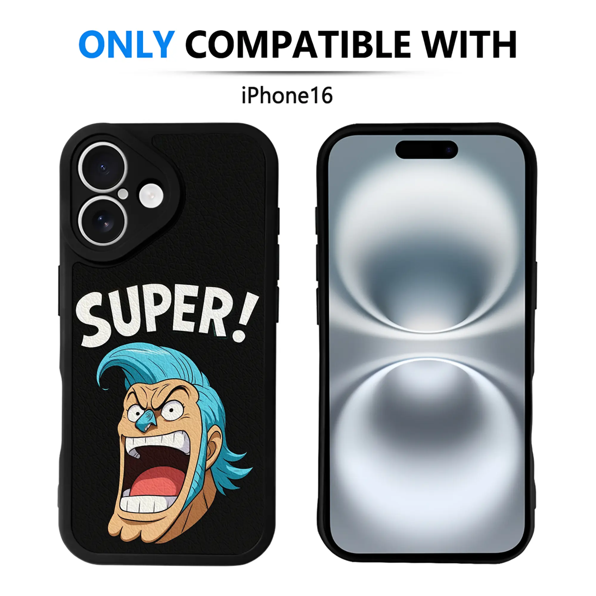 ワンピース グッズ フランキー - IPhone 16シリーズ対応 ・ シリコンスマホケース ・ レザー調 ・ 高精度フィット ・ 耐衝撃 ・ ワイヤレス充電対応 ・ 精密カット