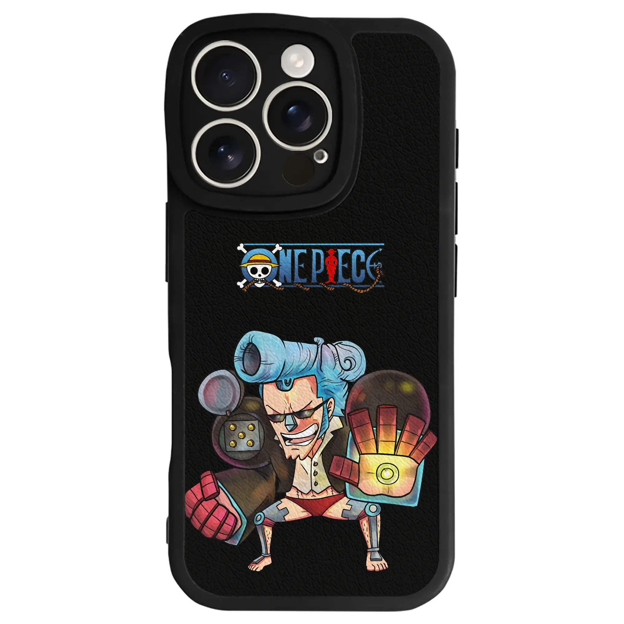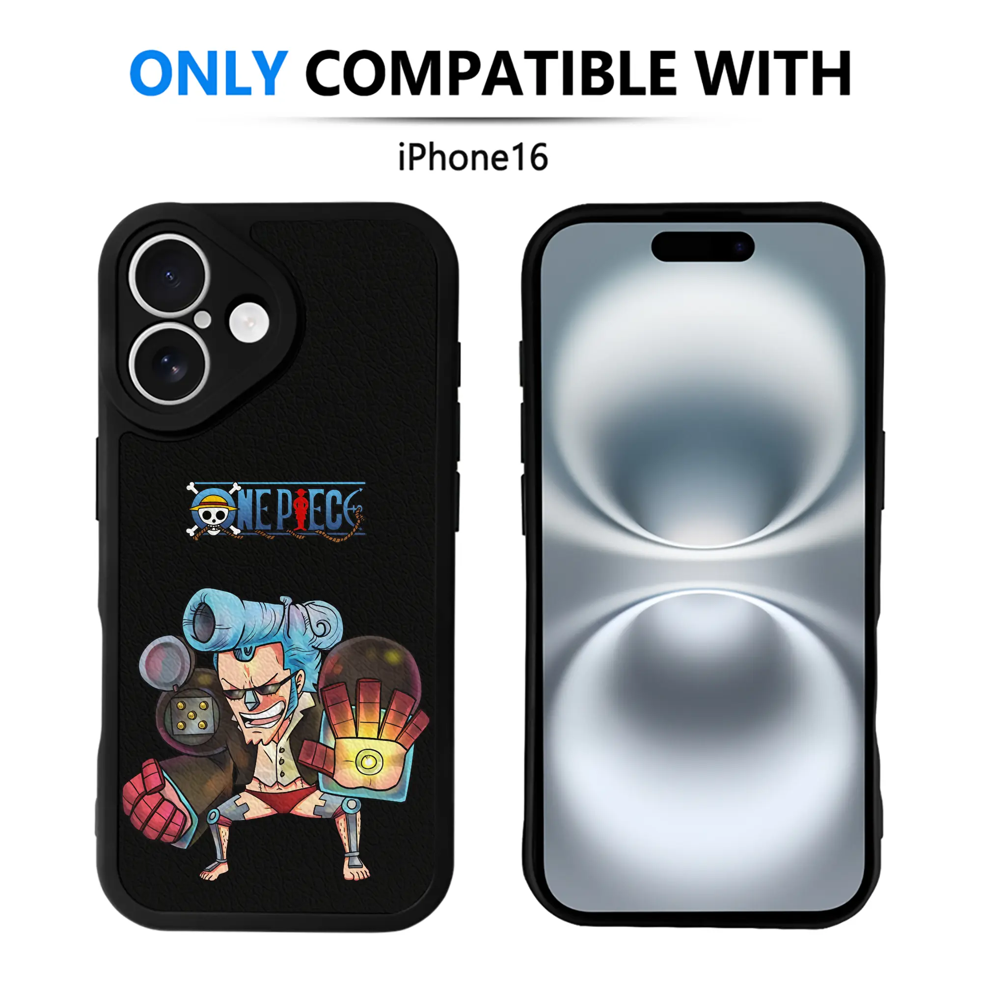ワンピース グッズ フランキー - IPhone 16シリーズ対応 ・ シリコンスマホケース ・ レザー調 ・ 高精度フィット ・ 耐衝撃 ・ ワイヤレス充電対応 ・ 精密カット
