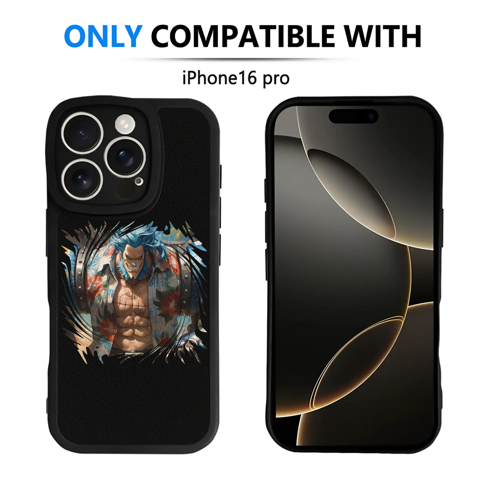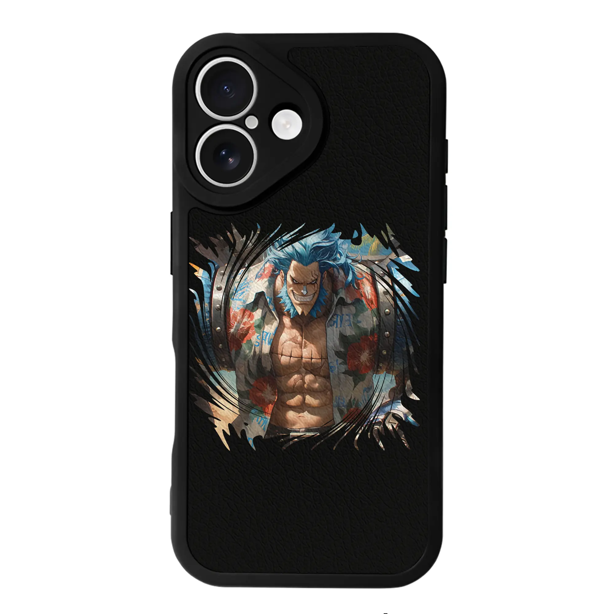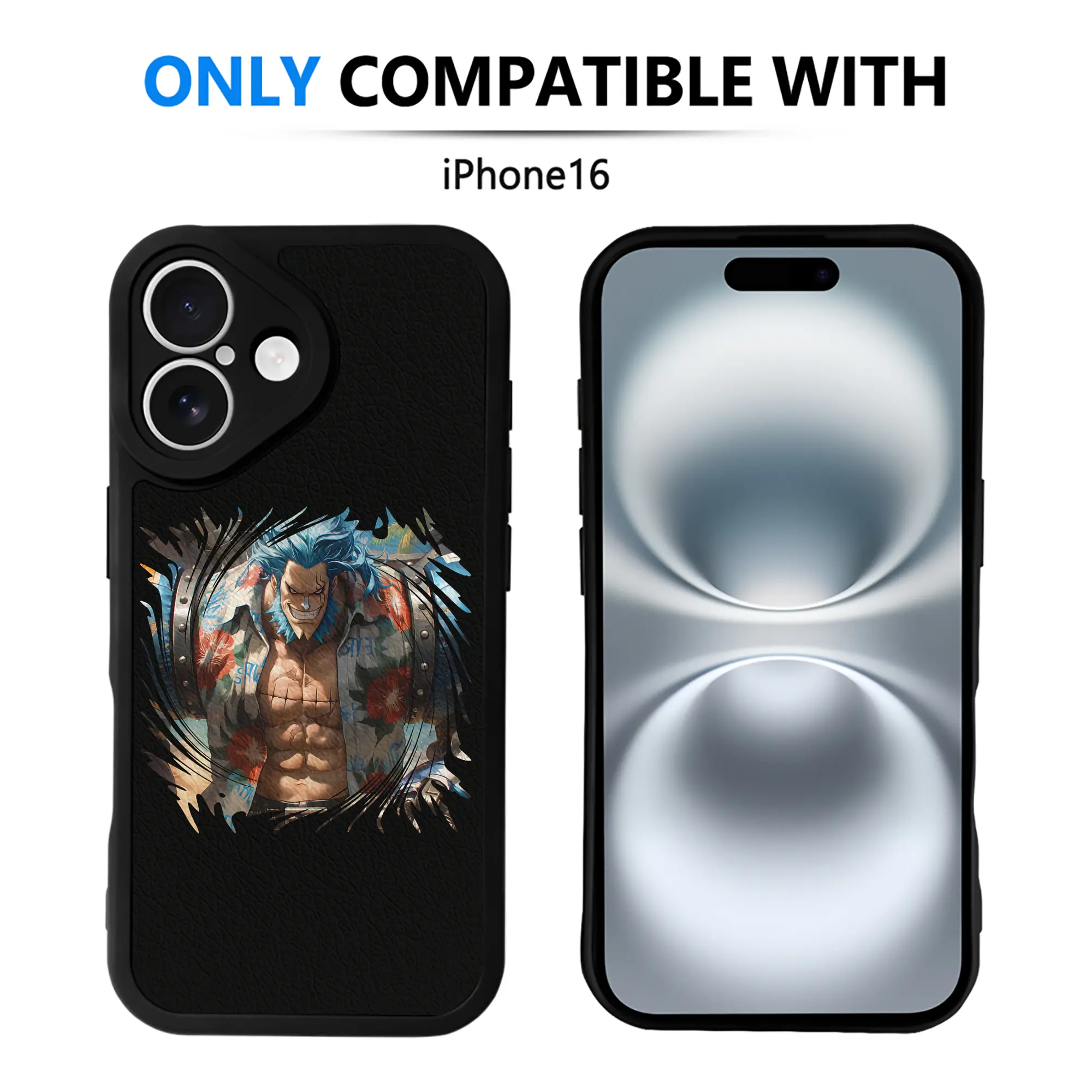 ワンピース グッズ フランキー - IPhone 16シリーズ対応 ・ シリコンスマホケース ・ レザー調 ・ 高精度フィット ・ 耐衝撃 ・ ワイヤレス充電対応 ・ 精密カット