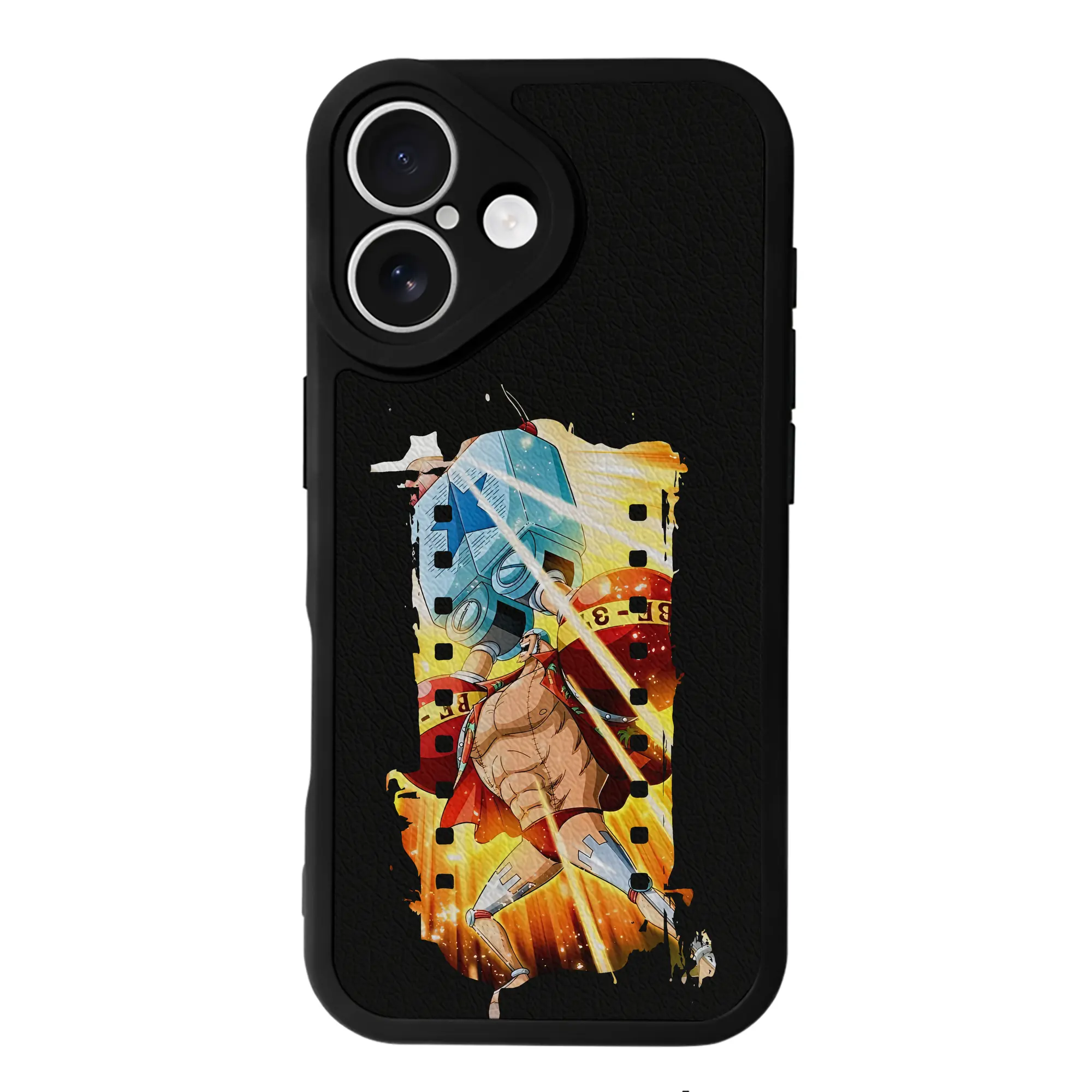 ワンピース グッズ フランキー - IPhone 16シリーズ対応 ・ シリコンスマホケース ・ レザー調 ・ 高精度フィット ・ 耐衝撃 ・ ワイヤレス充電対応 ・ 精密カット