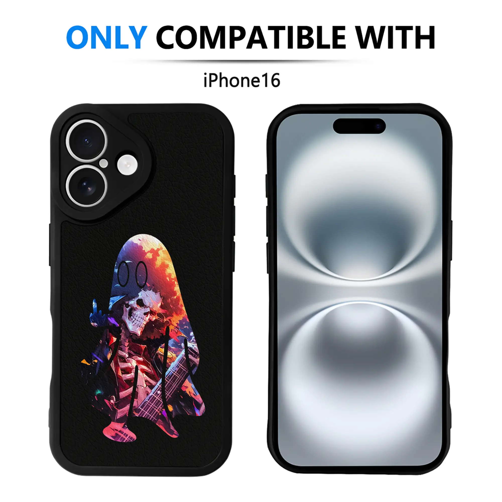 ワンピース グッズ ブルック - IPhone 16シリーズ対応 ・ シリコンスマホケース ・ レザー調 ・ 高精度フィット ・ 耐衝撃 ・ ワイヤレス充電対応 ・ 精密カット