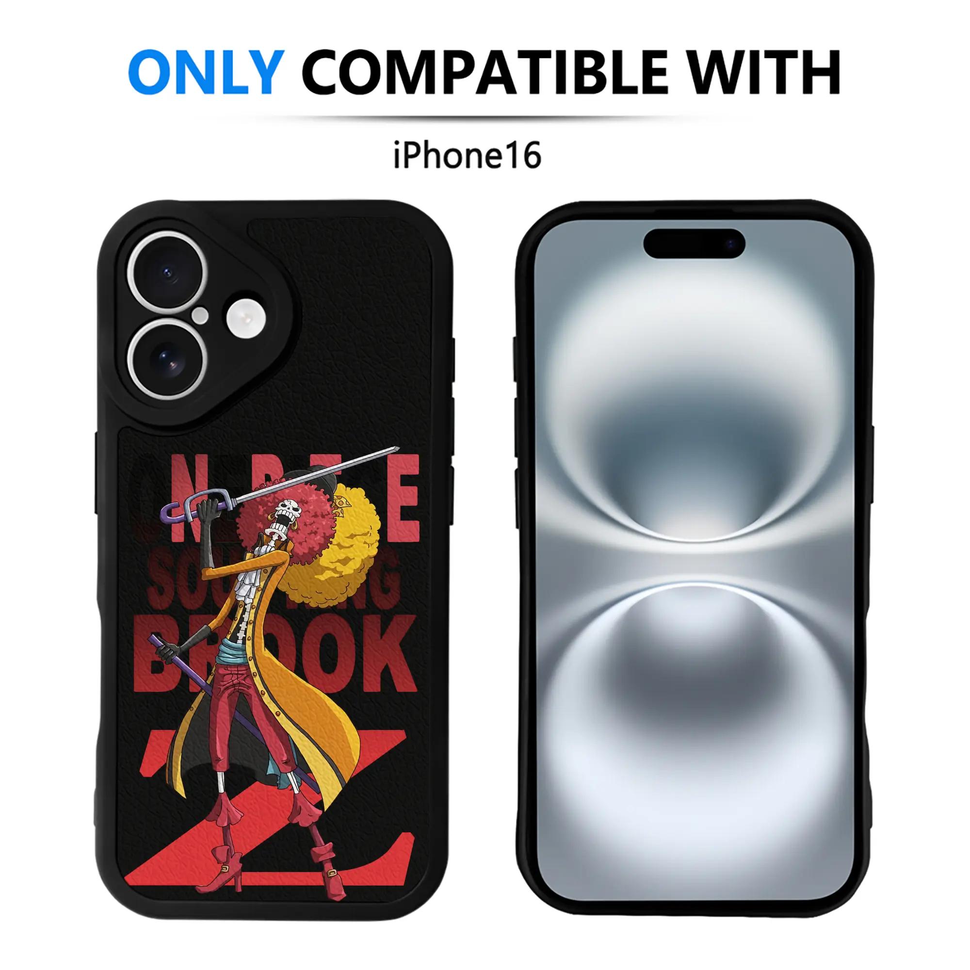 ワンピース グッズ ブルック - IPhone 16シリーズ対応 ・ シリコンスマホケース ・ レザー調 ・ 高精度フィット ・ 耐衝撃 ・ ワイヤレス充電対応 ・ 精密カット