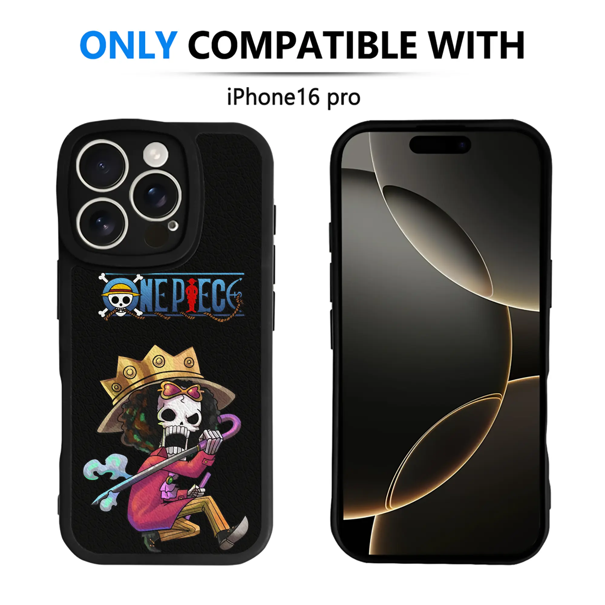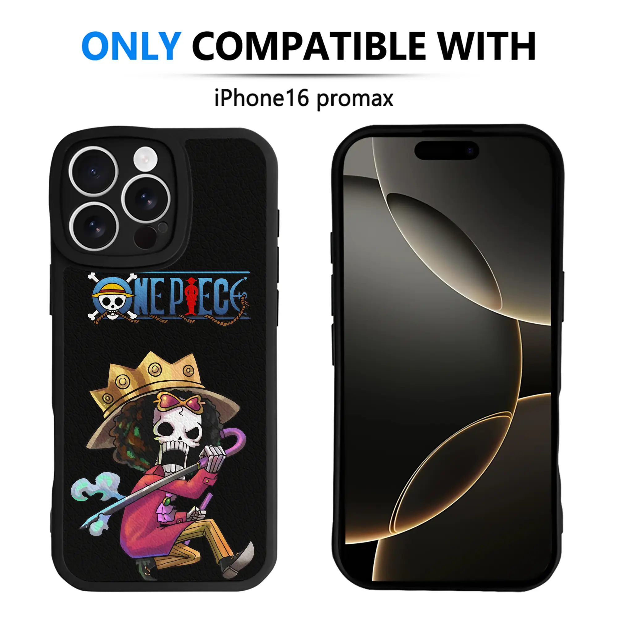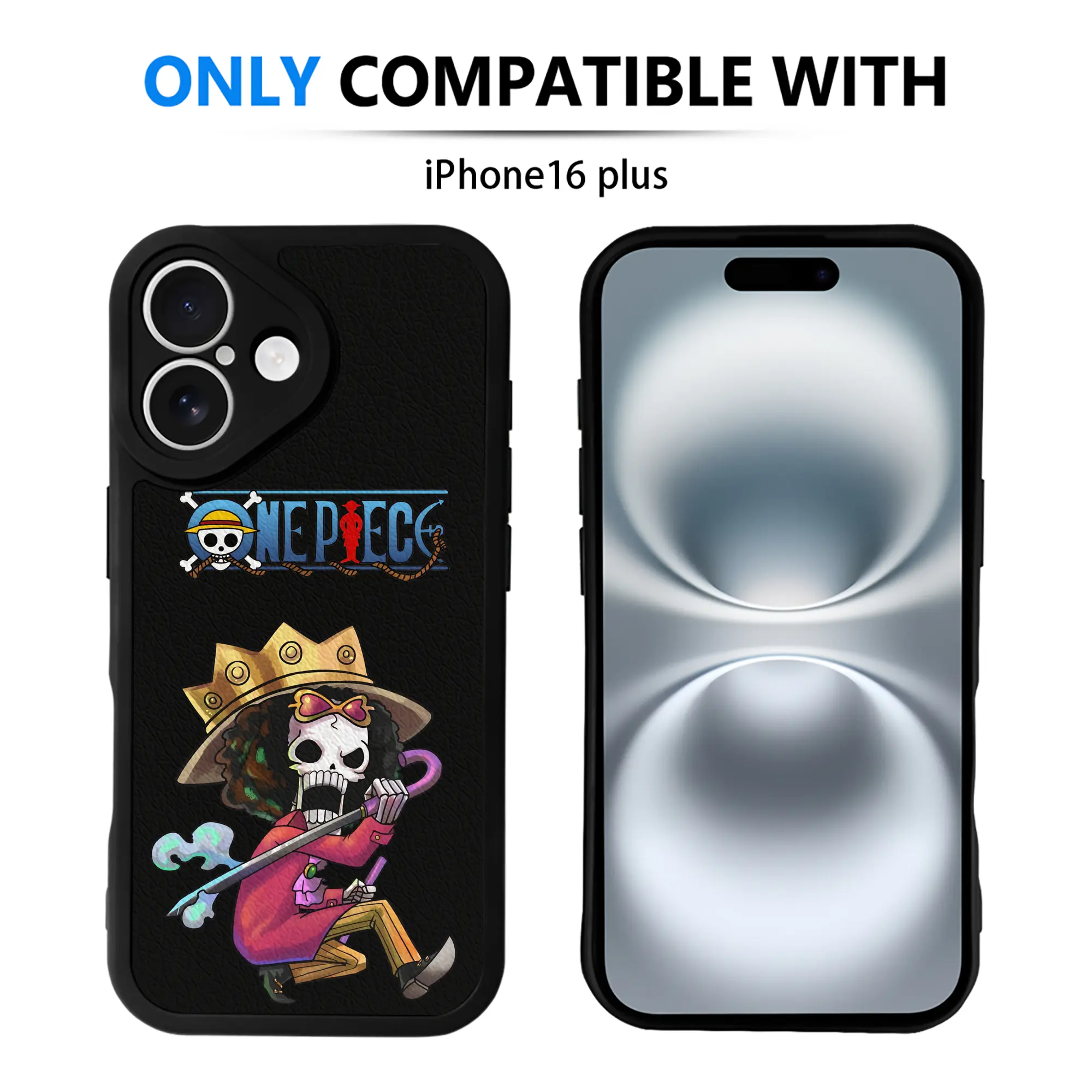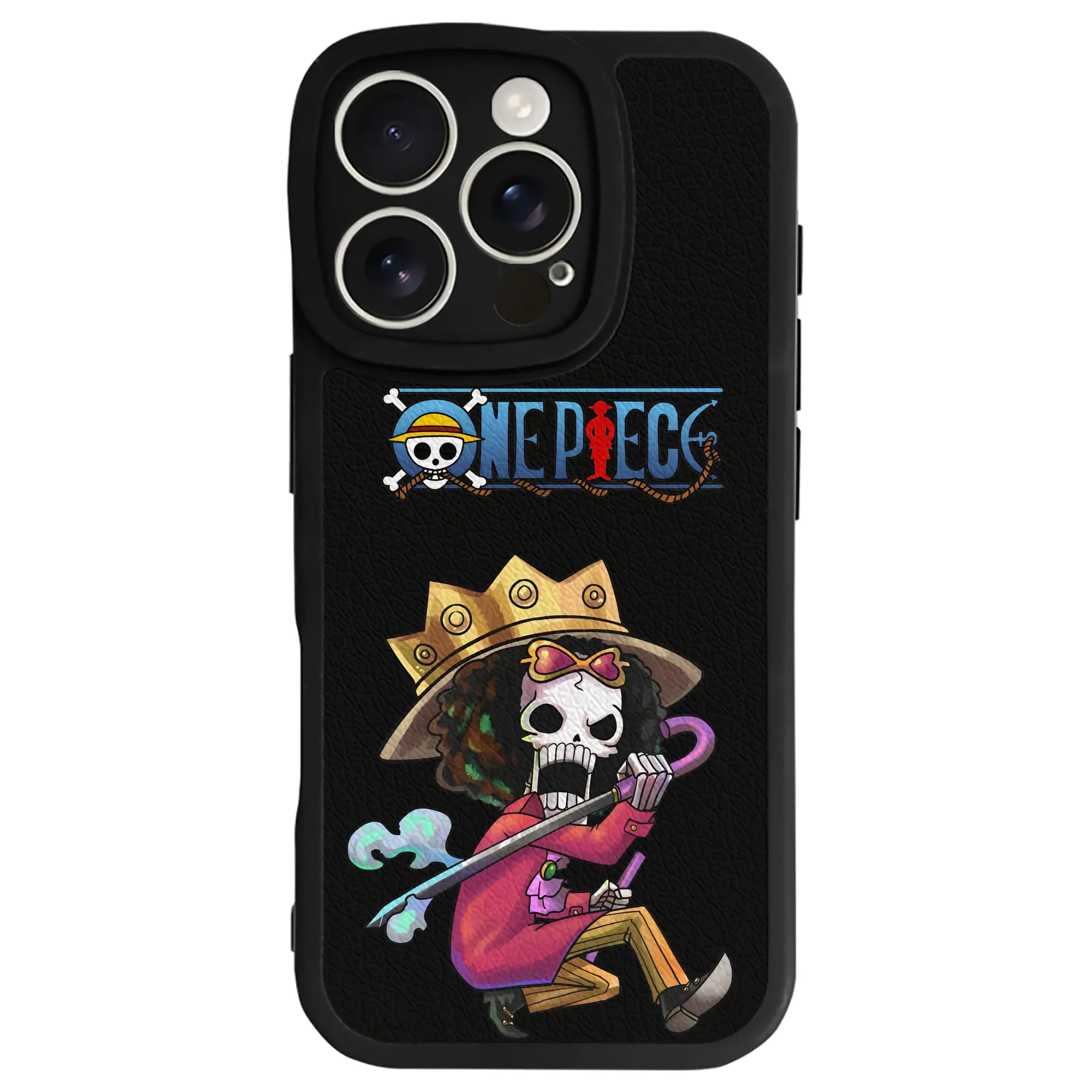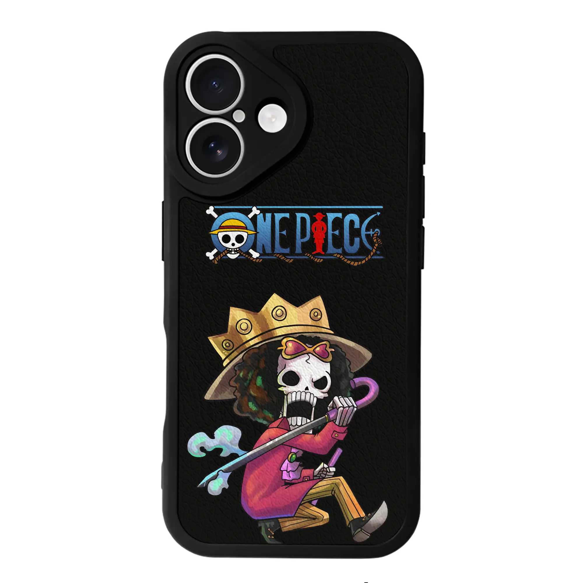 ワンピース グッズ ブルック - IPhone 16シリーズ対応 ・ シリコンスマホケース ・ レザー調 ・ 高精度フィット ・ 耐衝撃 ・ ワイヤレス充電対応 ・ 精密カット