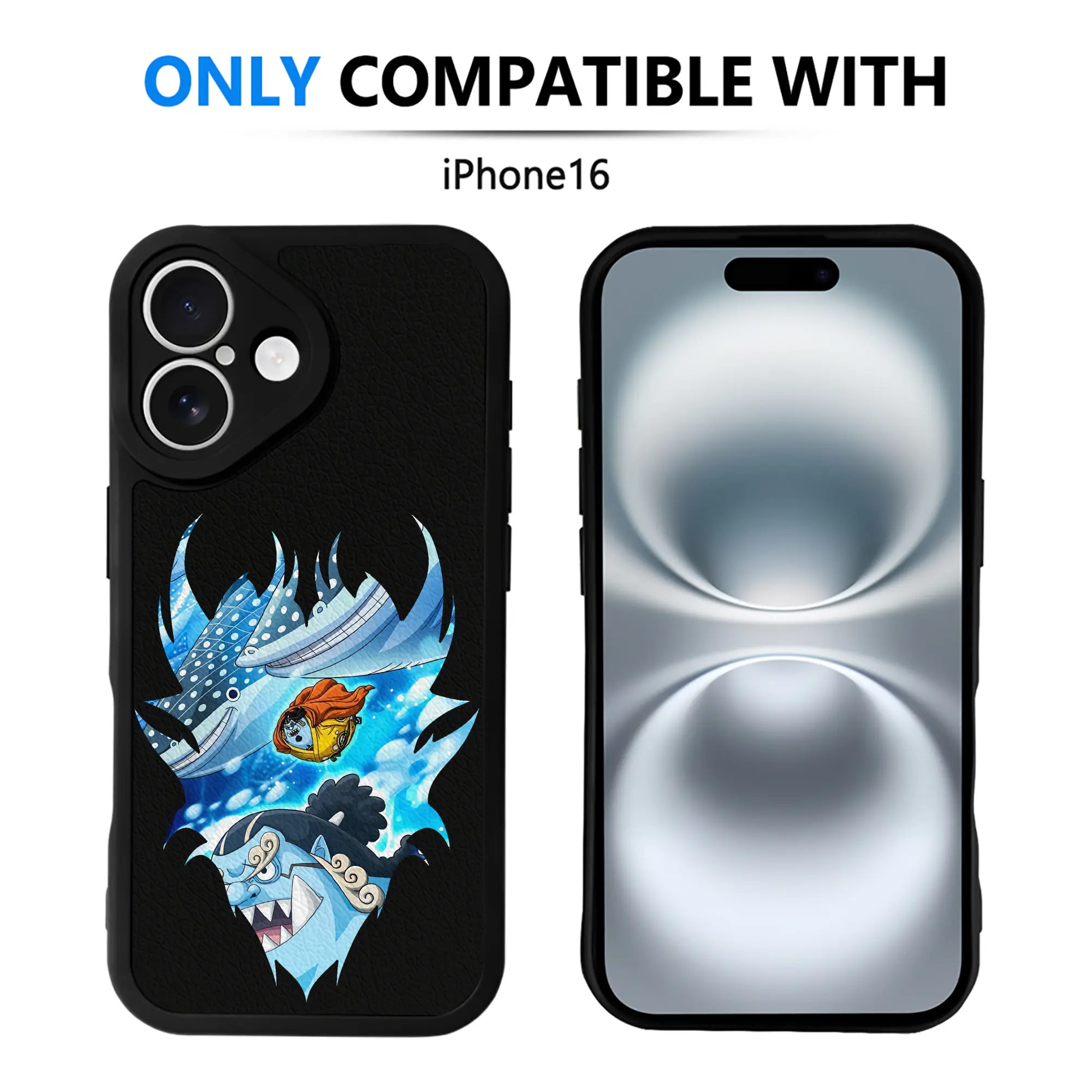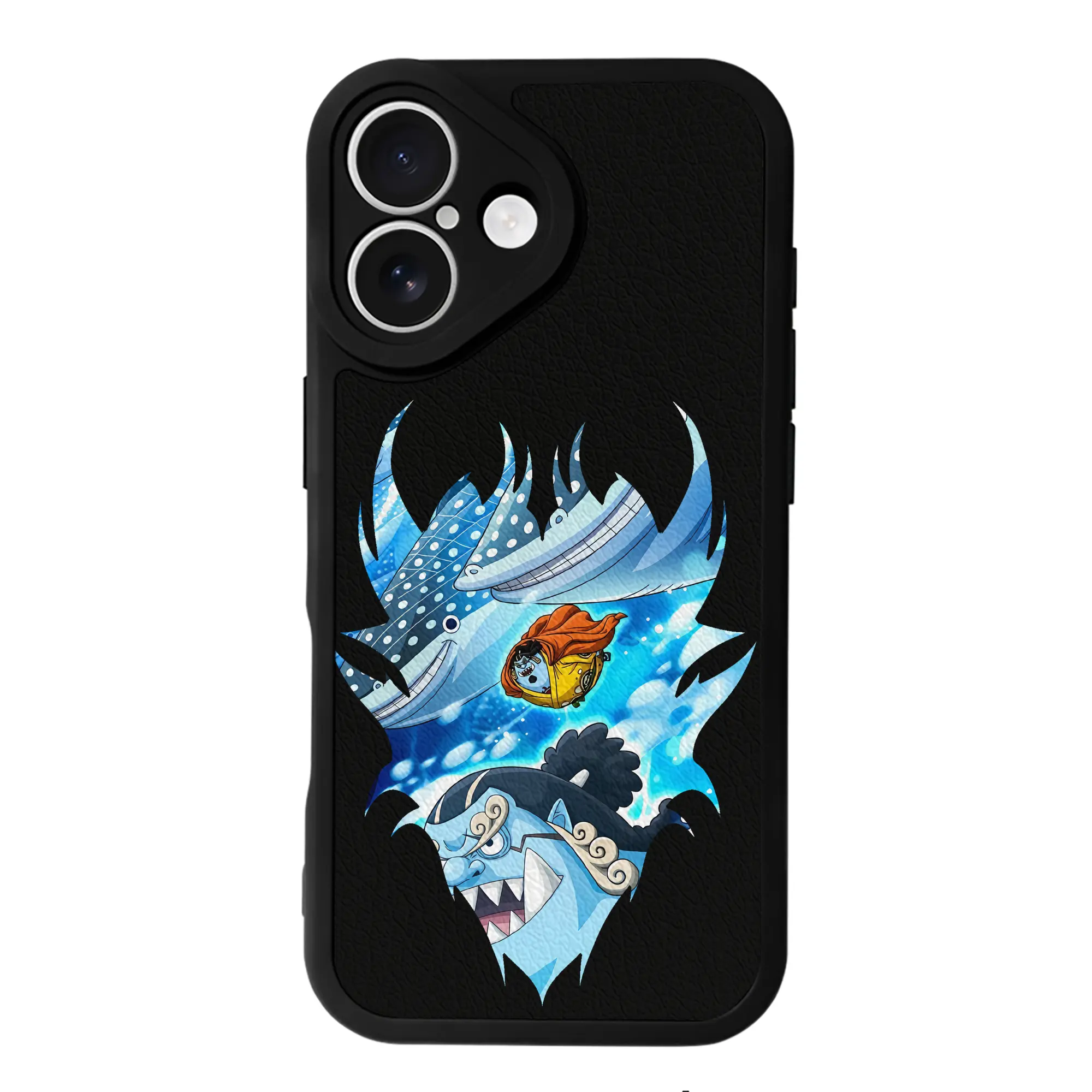 ワンピース グッズ ジンベエ - IPhone 16シリーズ対応 ・ シリコンスマホケース ・ レザー調 ・ 高精度フィット ・ 耐衝撃 ・ ワイヤレス充電対応 ・ 精密カット