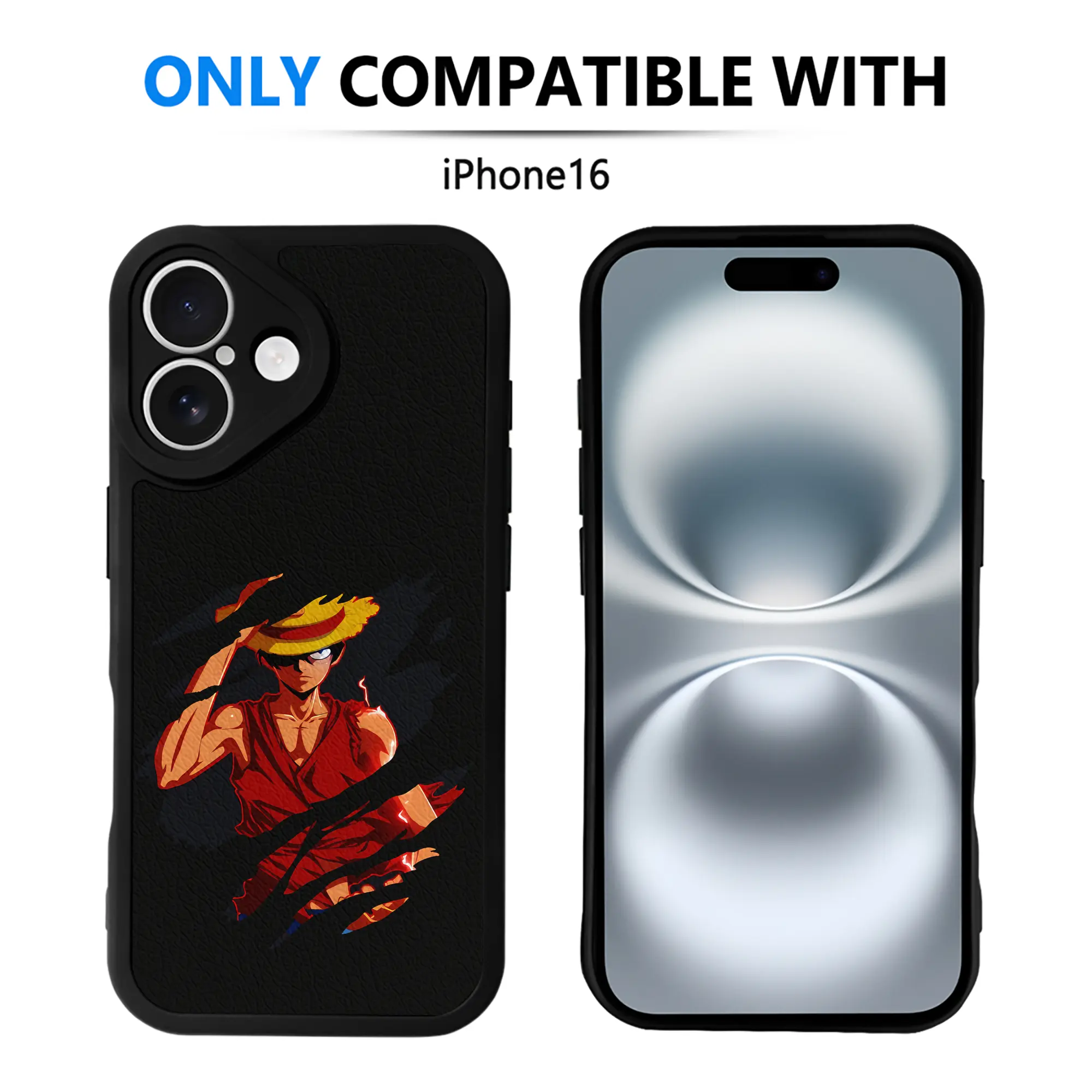 ワンピース グッズ モンキー・D・ルフィ - IPhone 16シリーズ対応 ・ シリコンスマホケース ・ レザー調 ・ 高精度フィット ・ 耐衝撃 ・ ワイヤレス充電対応 ・ 精密カット