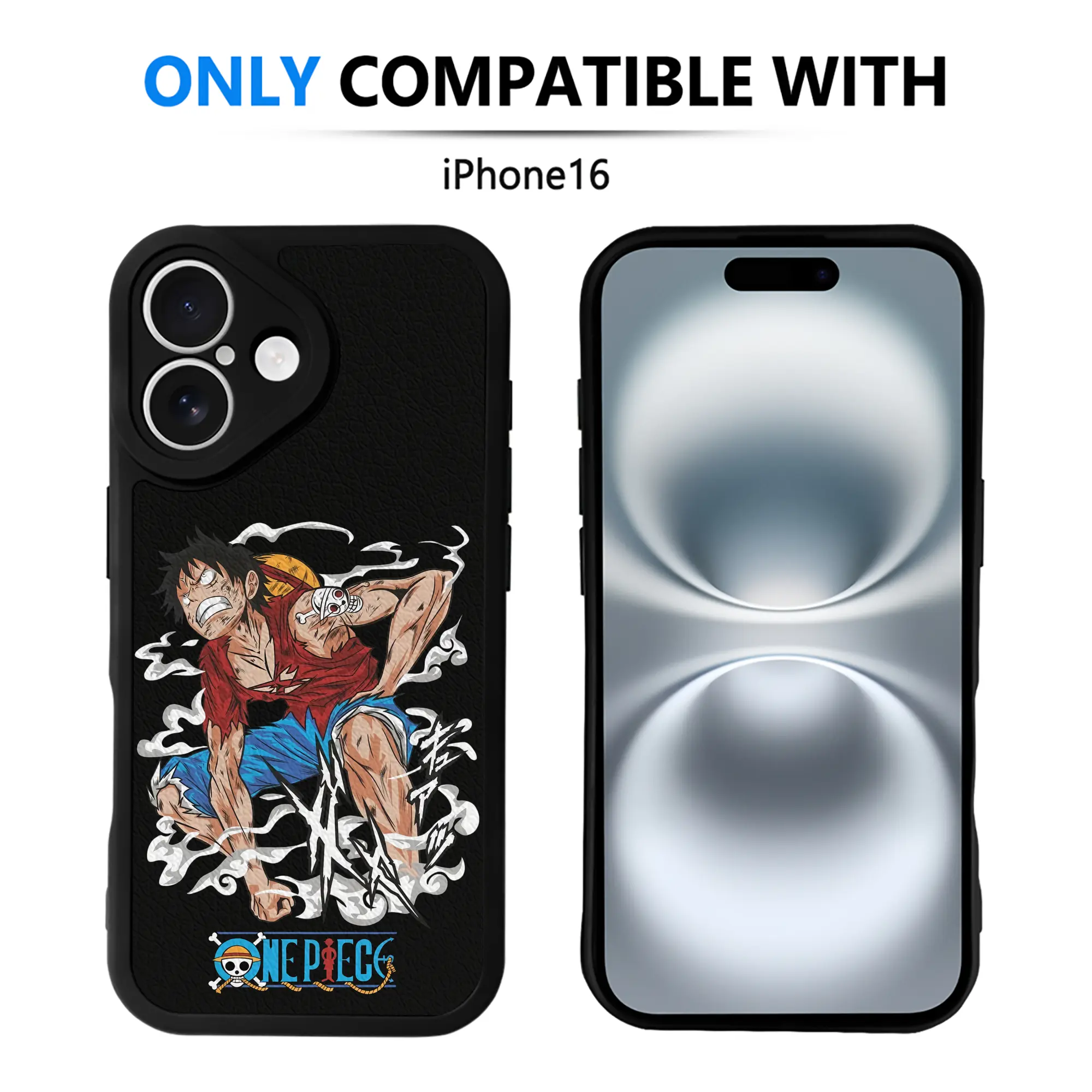 ワンピース グッズ モンキー・D・ルフィ - IPhone 16シリーズ対応 ・ シリコンスマホケース ・ レザー調 ・ 高精度フィット ・ 耐衝撃 ・ ワイヤレス充電対応 ・ 精密カット