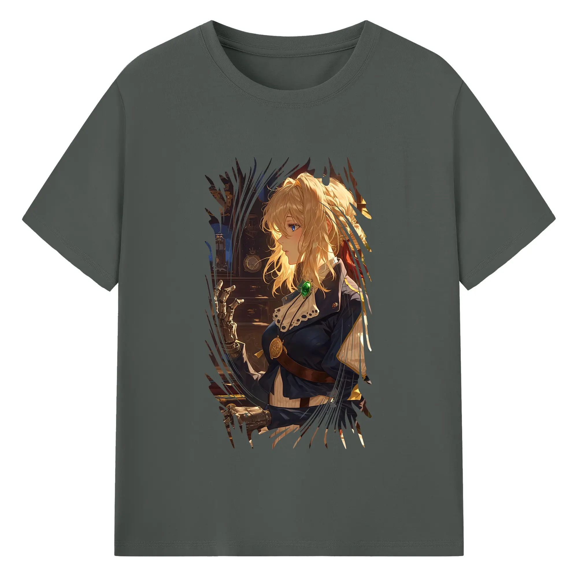 ヴァイオレット・エヴァーガーデン グッズ,ヴァイオレット・エヴァーガーデン - 綿100% ヴィンテージ風 半袖Tシャツ ・ フロントプリント ・ 柔らか肌触り ・ 通気性 快適 ・ スポーツ カジュアル 外出用