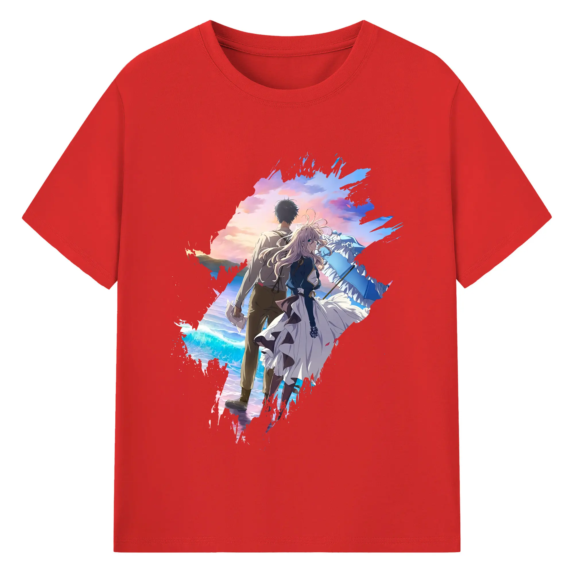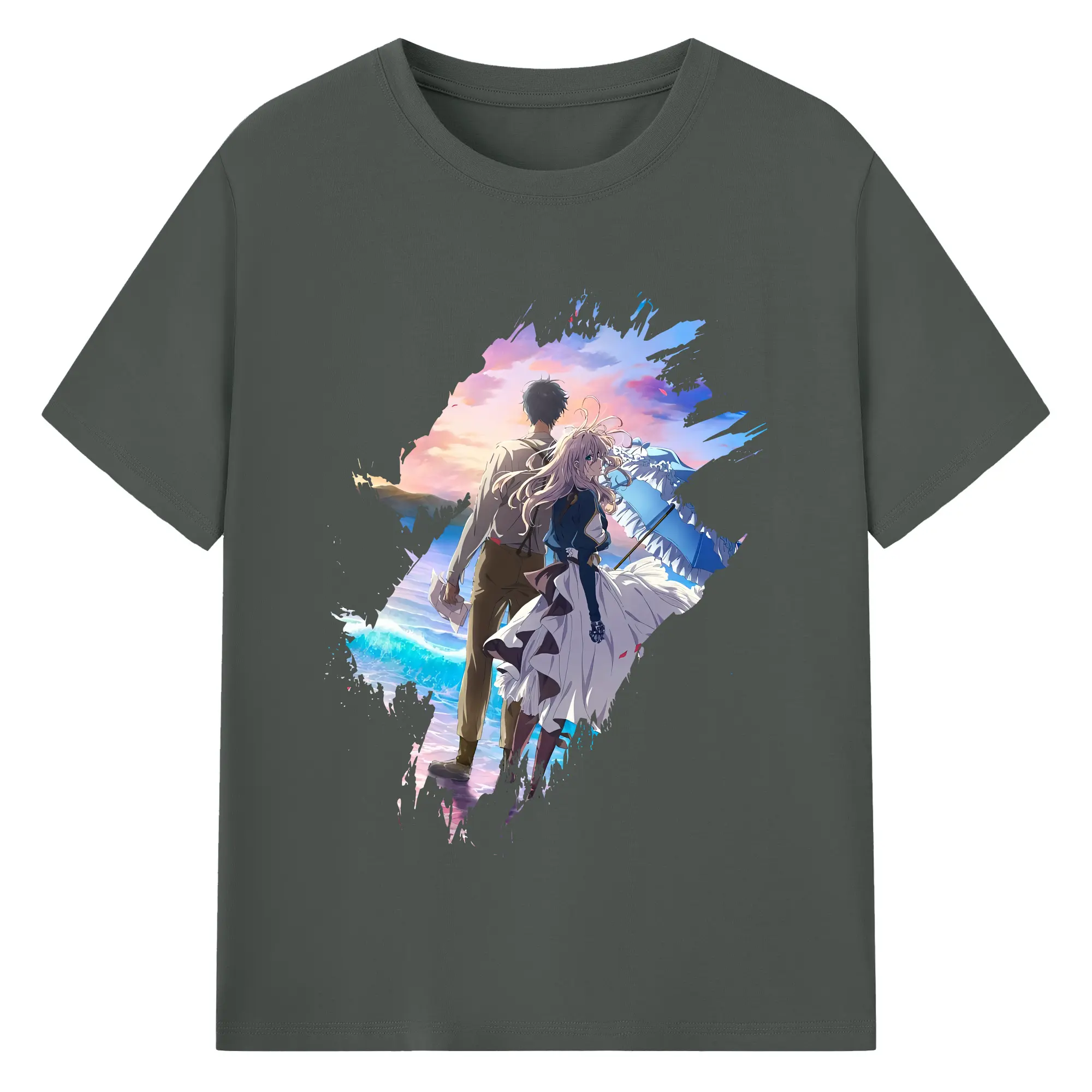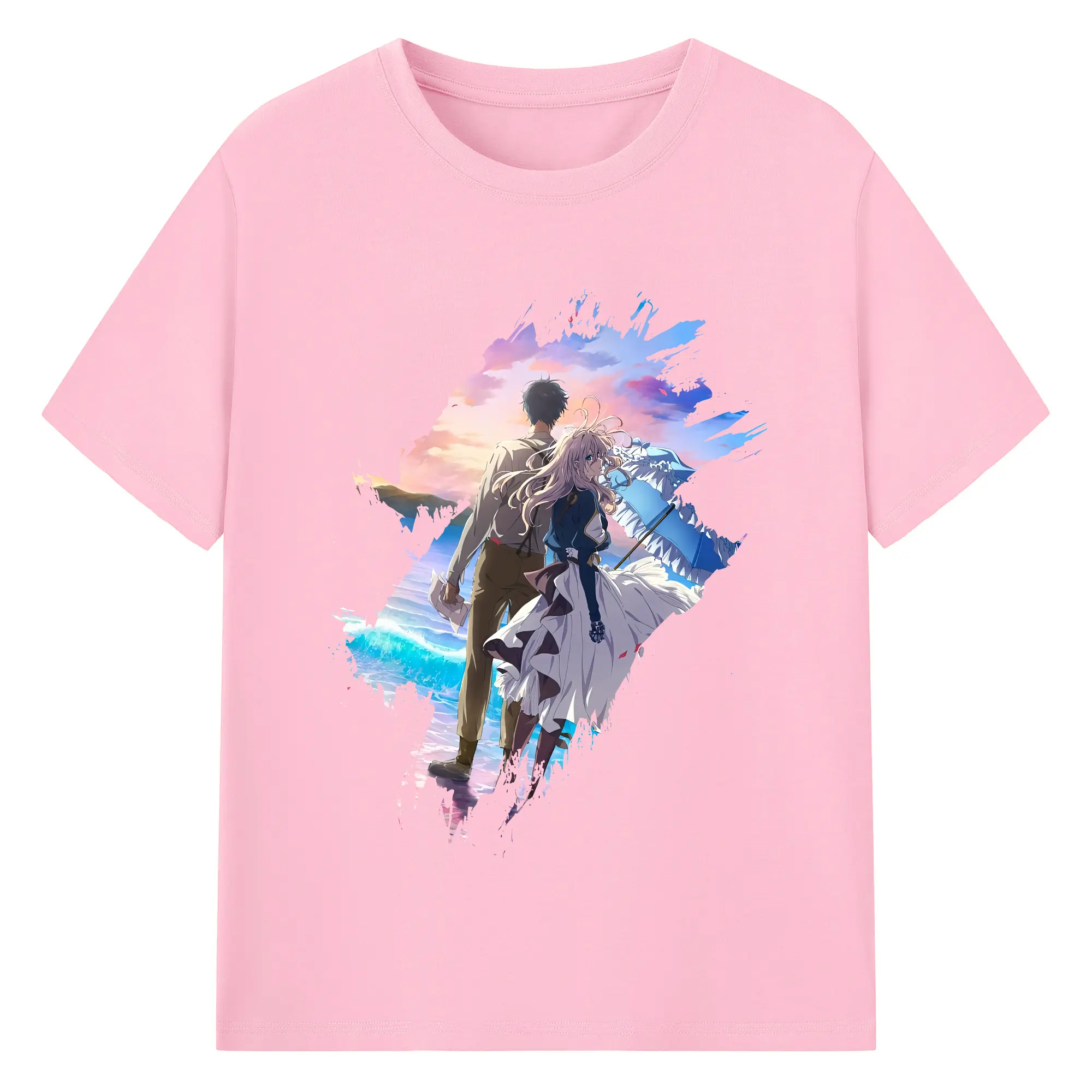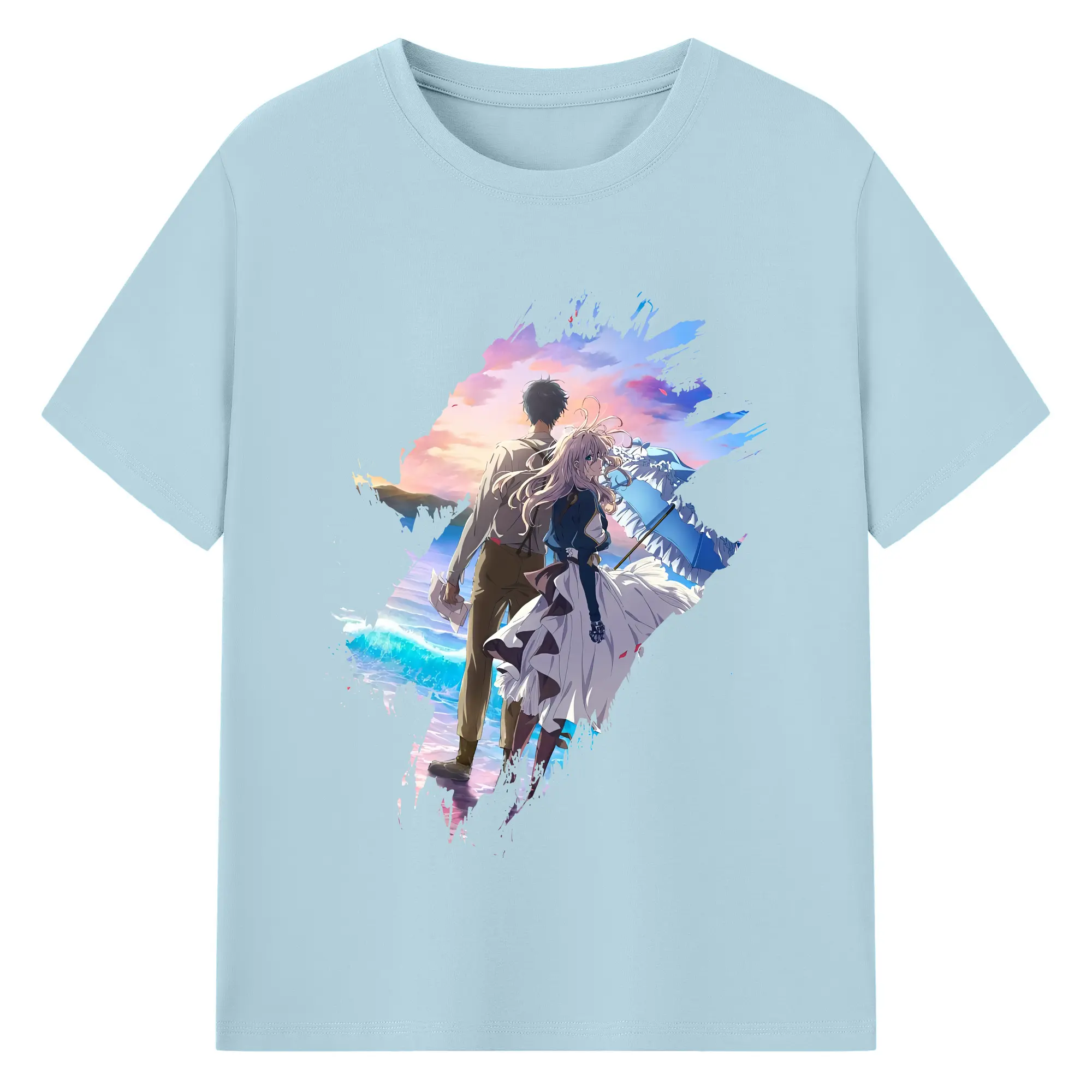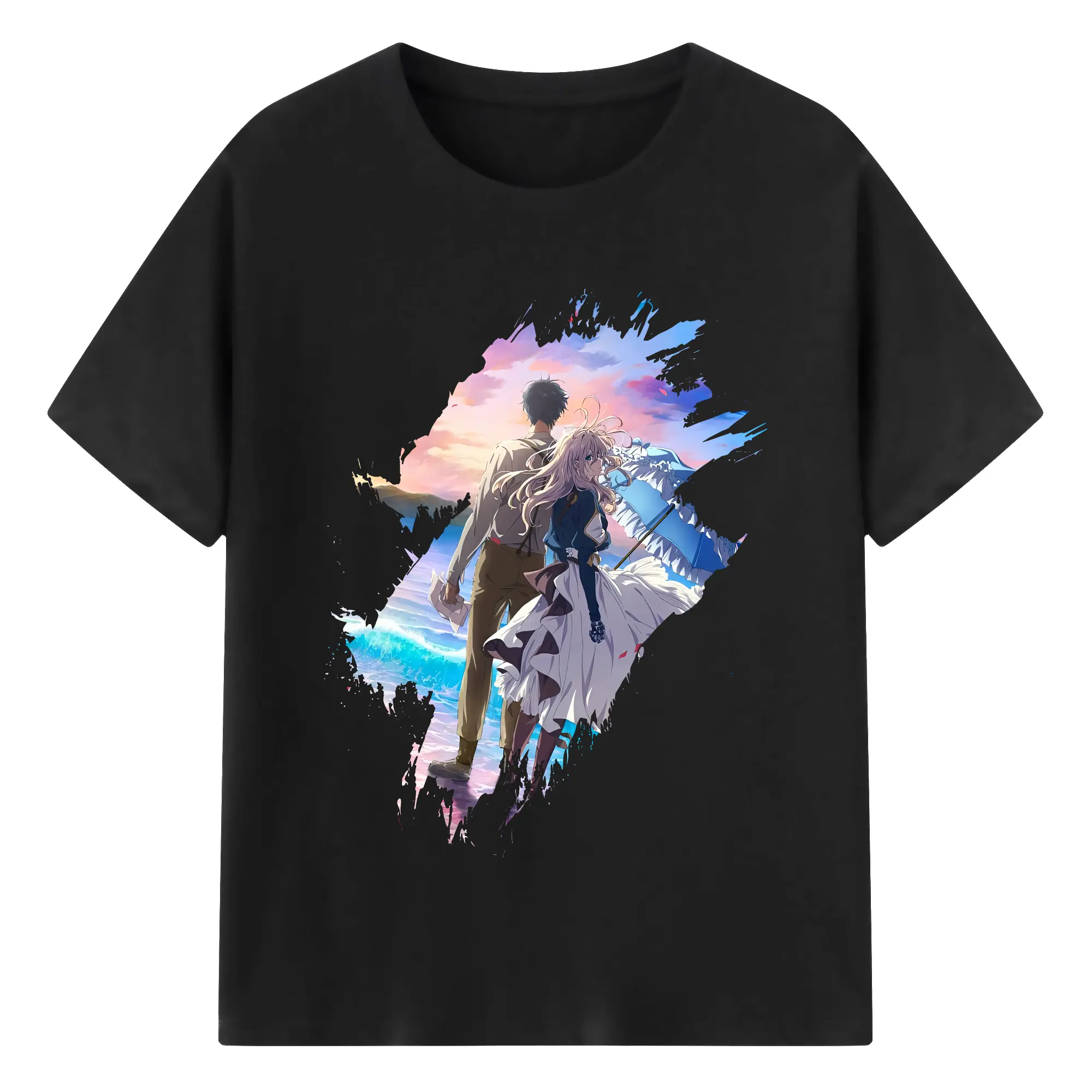 ヴァイオレット・エヴァーガーデン グッズ,ヴァイオレット・エヴァーガーデン - 綿100% 半袖Tシャツ ・ バックプリント ・ 快適 通気性 ・ 日常使い 散歩 スポーツ用