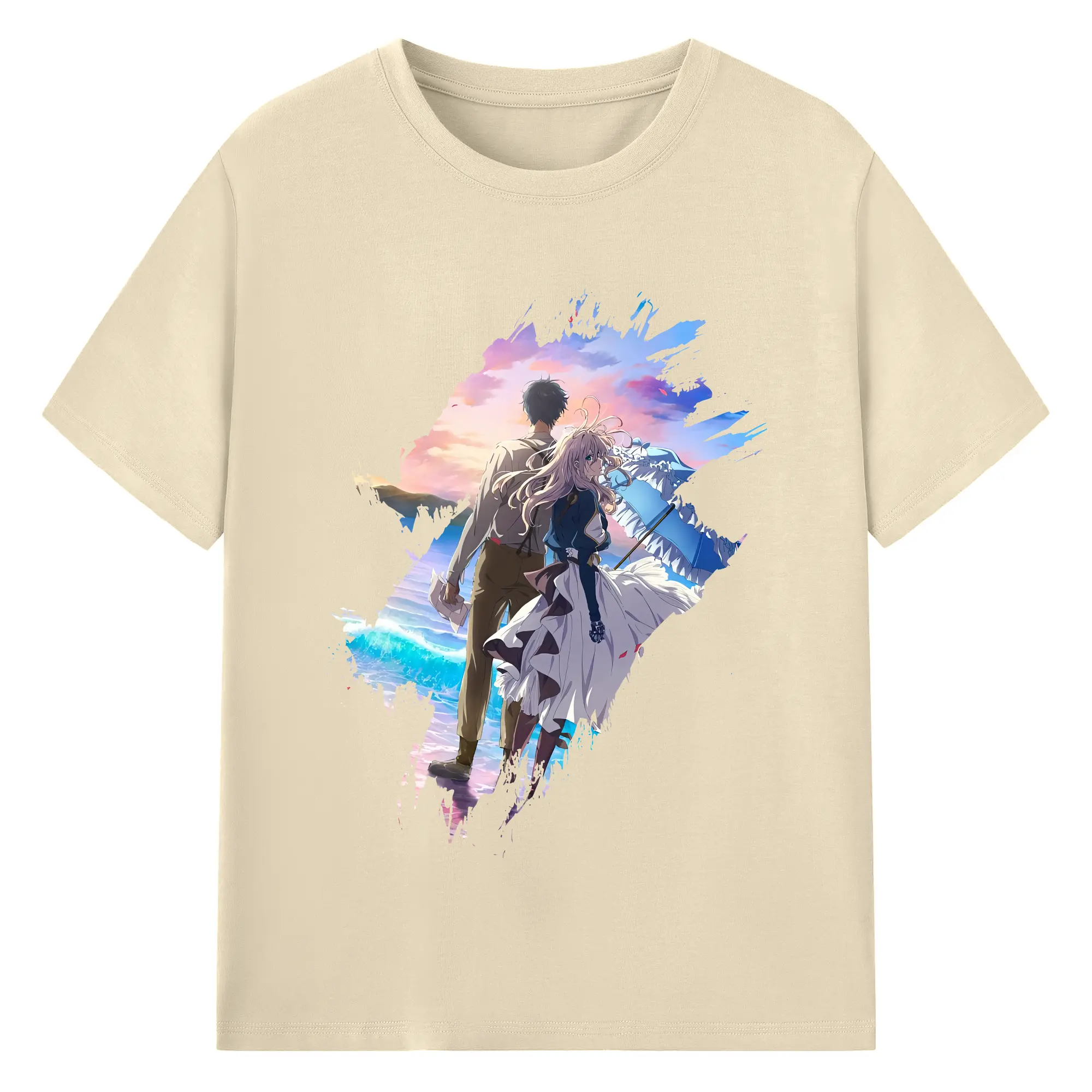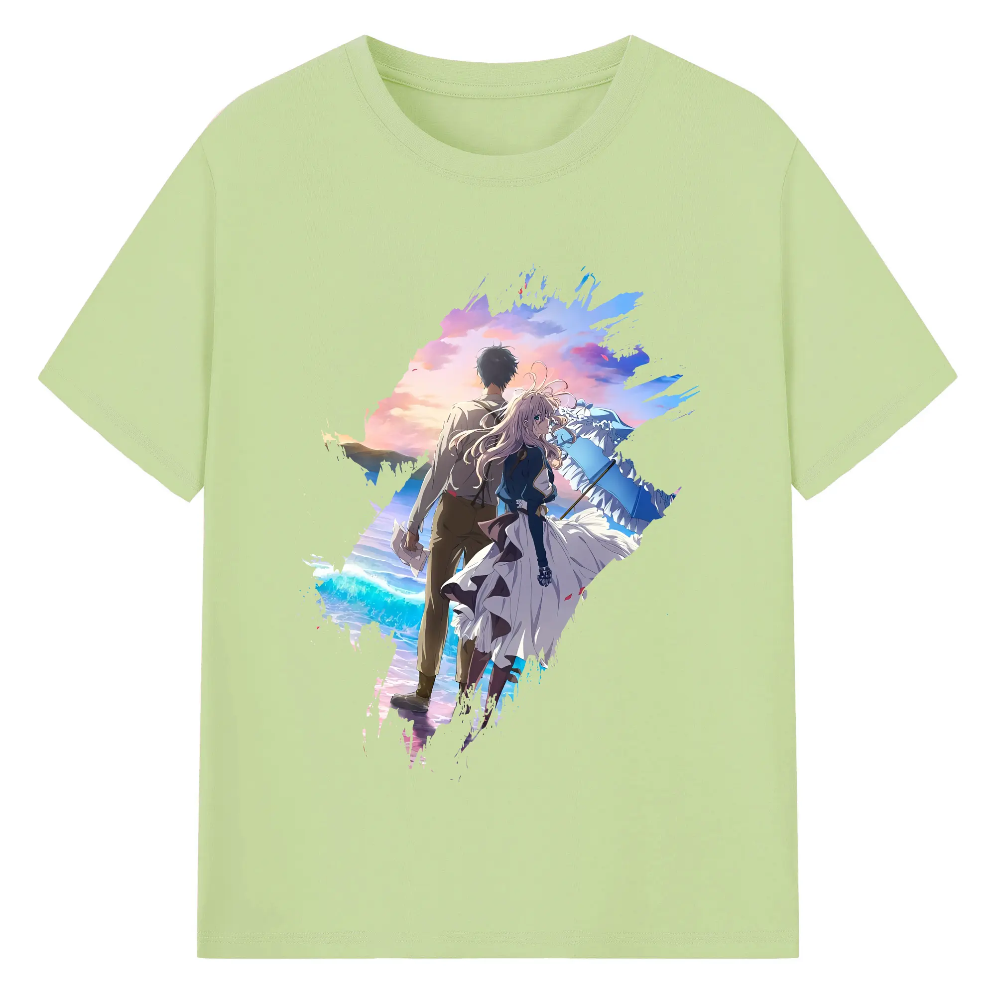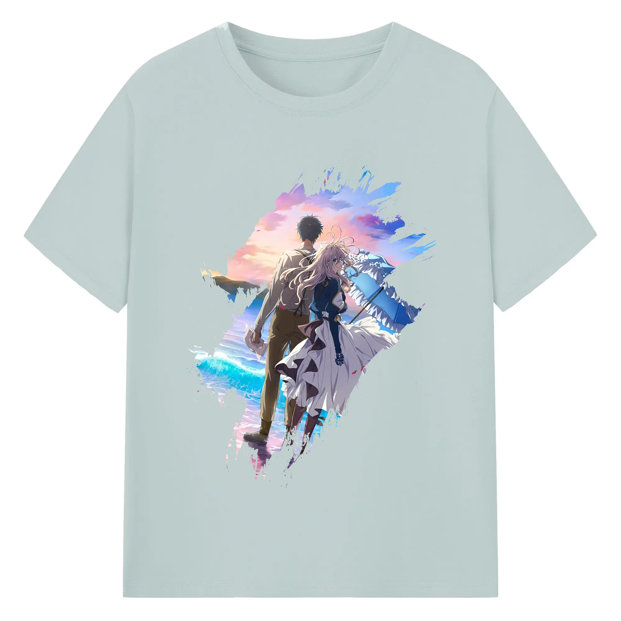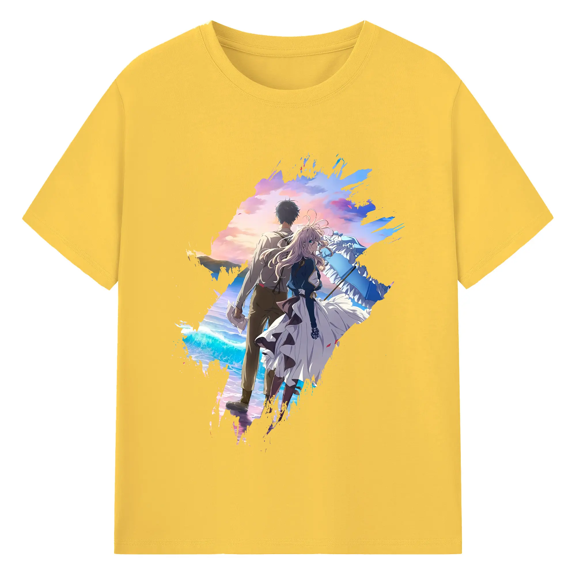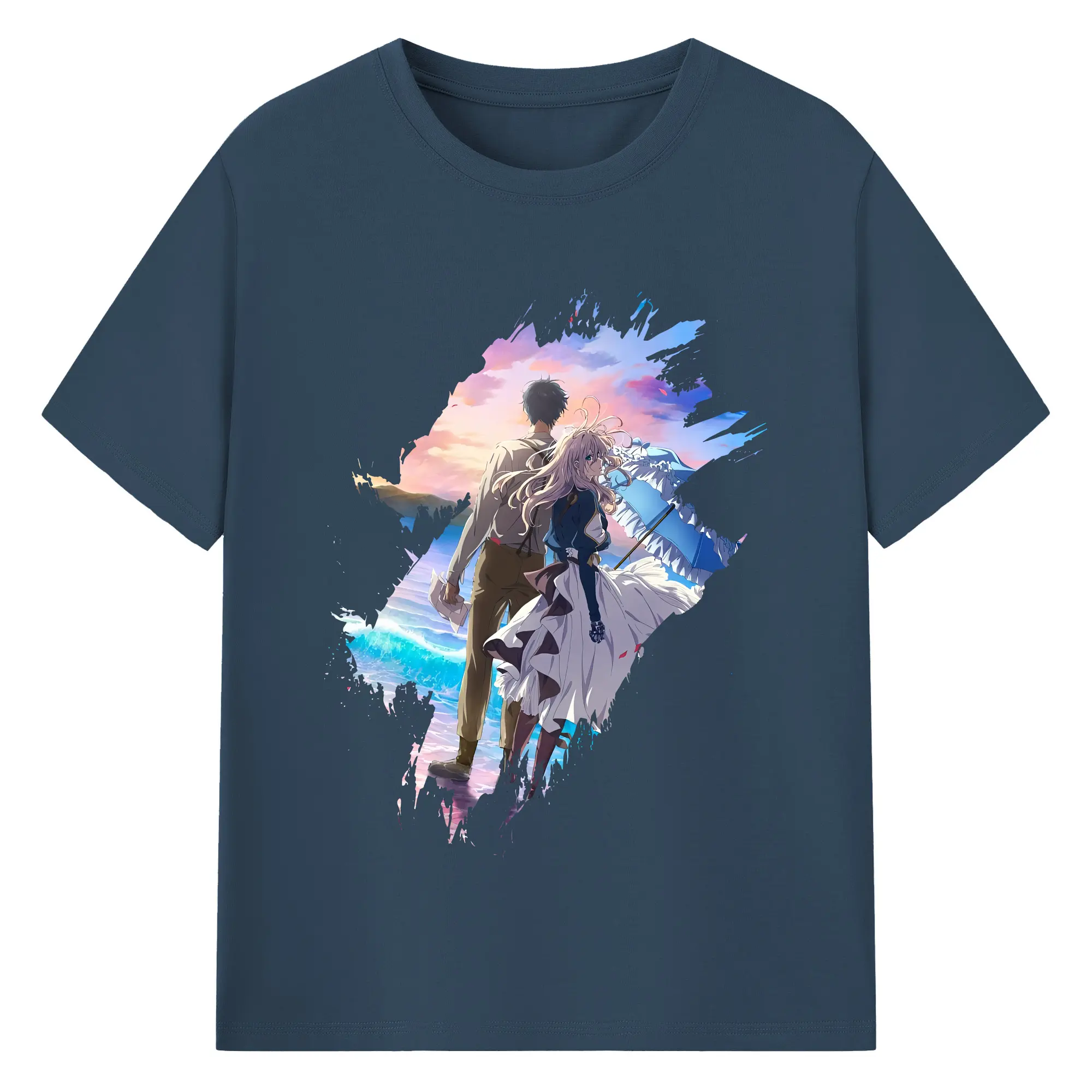 ヴァイオレット・エヴァーガーデン グッズ,ヴァイオレット・エヴァーガーデン - 綿100% 半袖Tシャツ ・ バックプリント ・ 快適 通気性 ・ 日常使い 散歩 スポーツ用