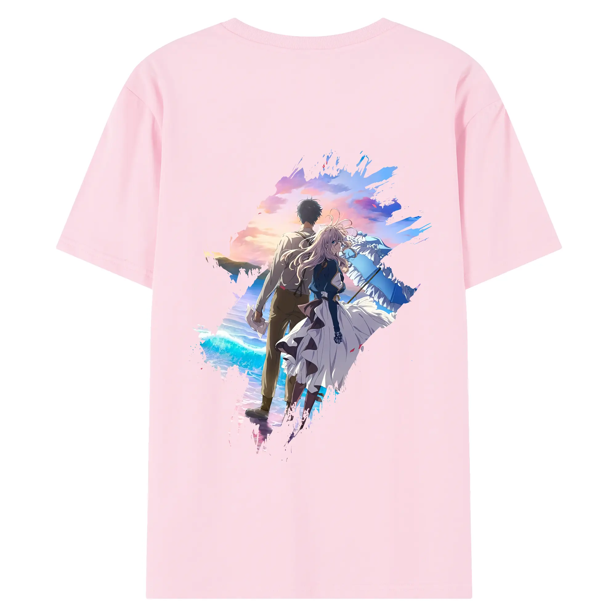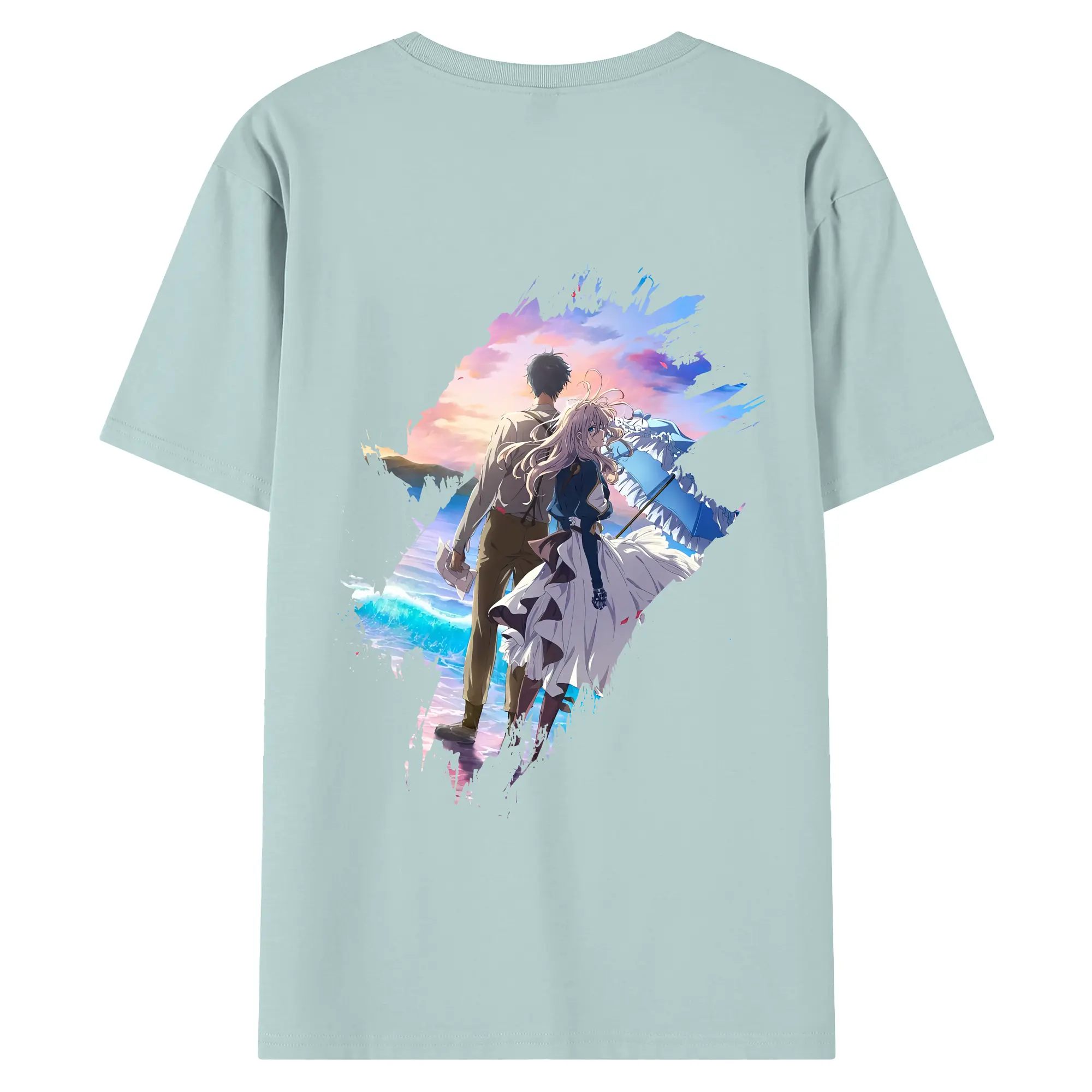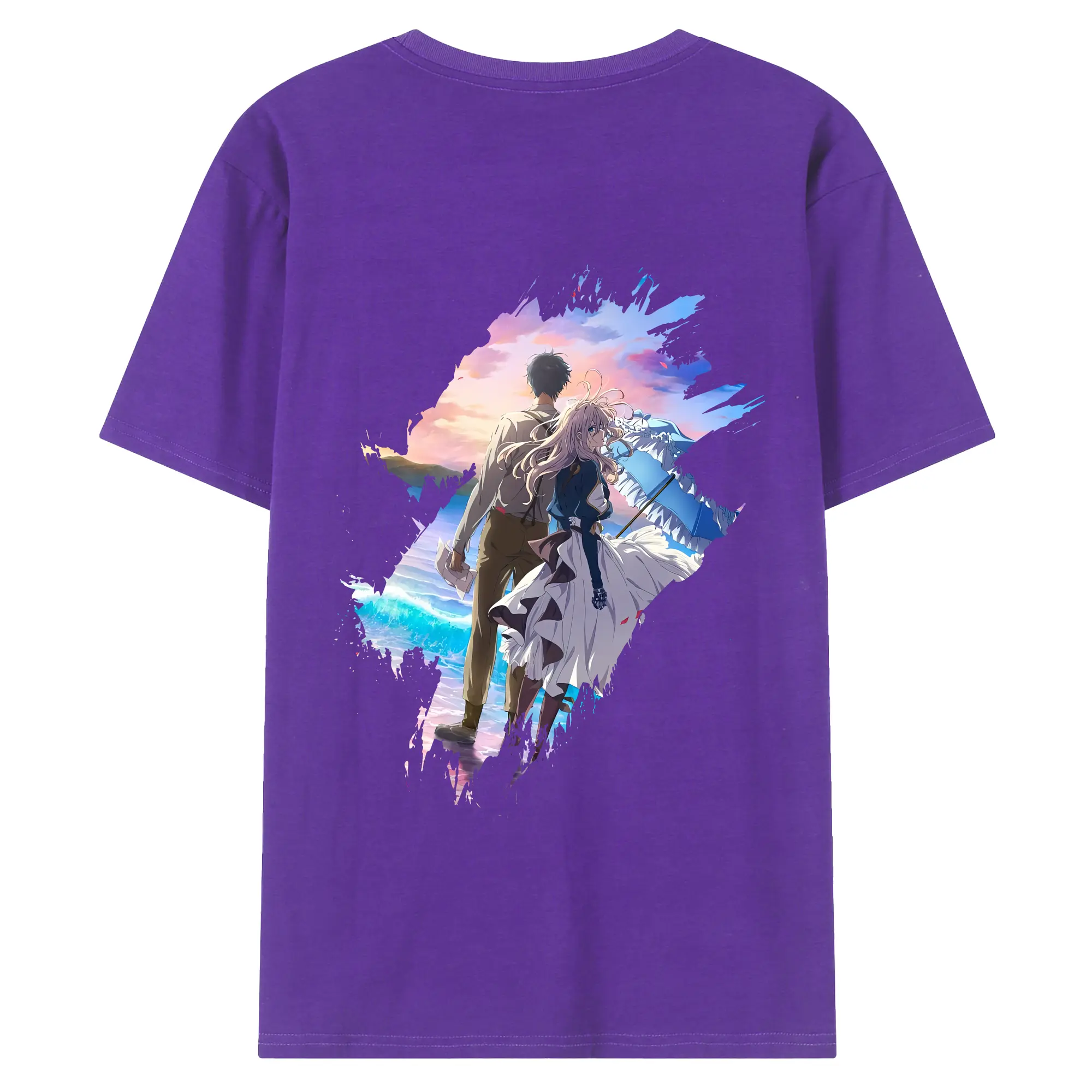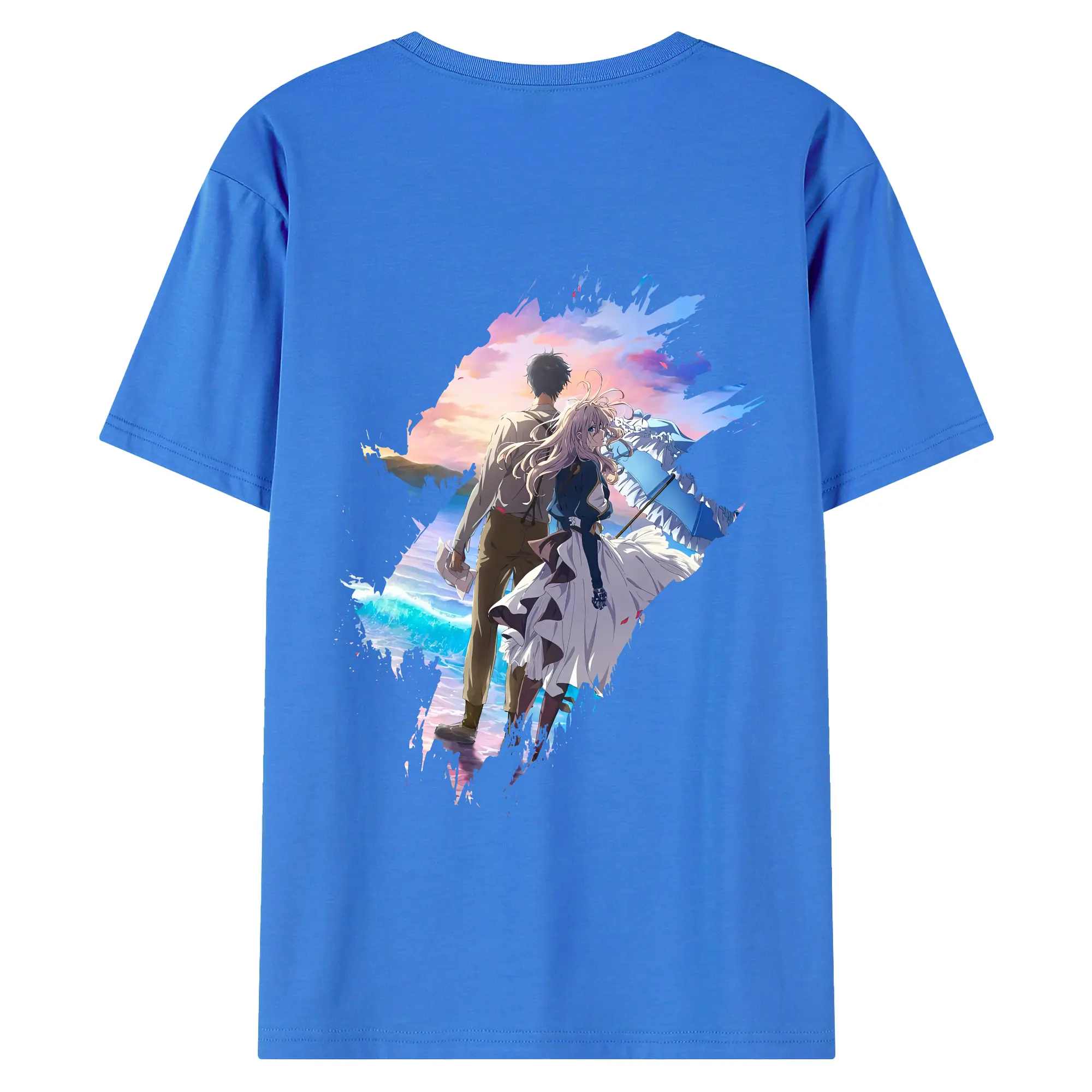 ヴァイオレット・エヴァーガーデン グッズ,ヴァイオレット・エヴァーガーデン - 綿100% 半袖Tシャツ ・ フロントプリント ・ 快適 通気性 ・ 日常使い 散歩 スポーツ用