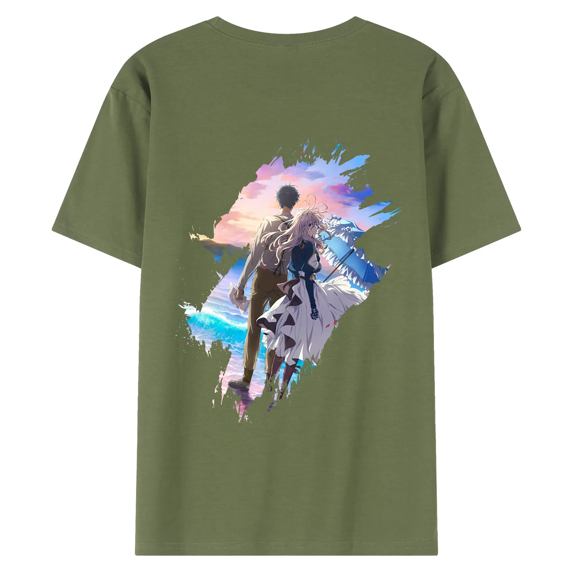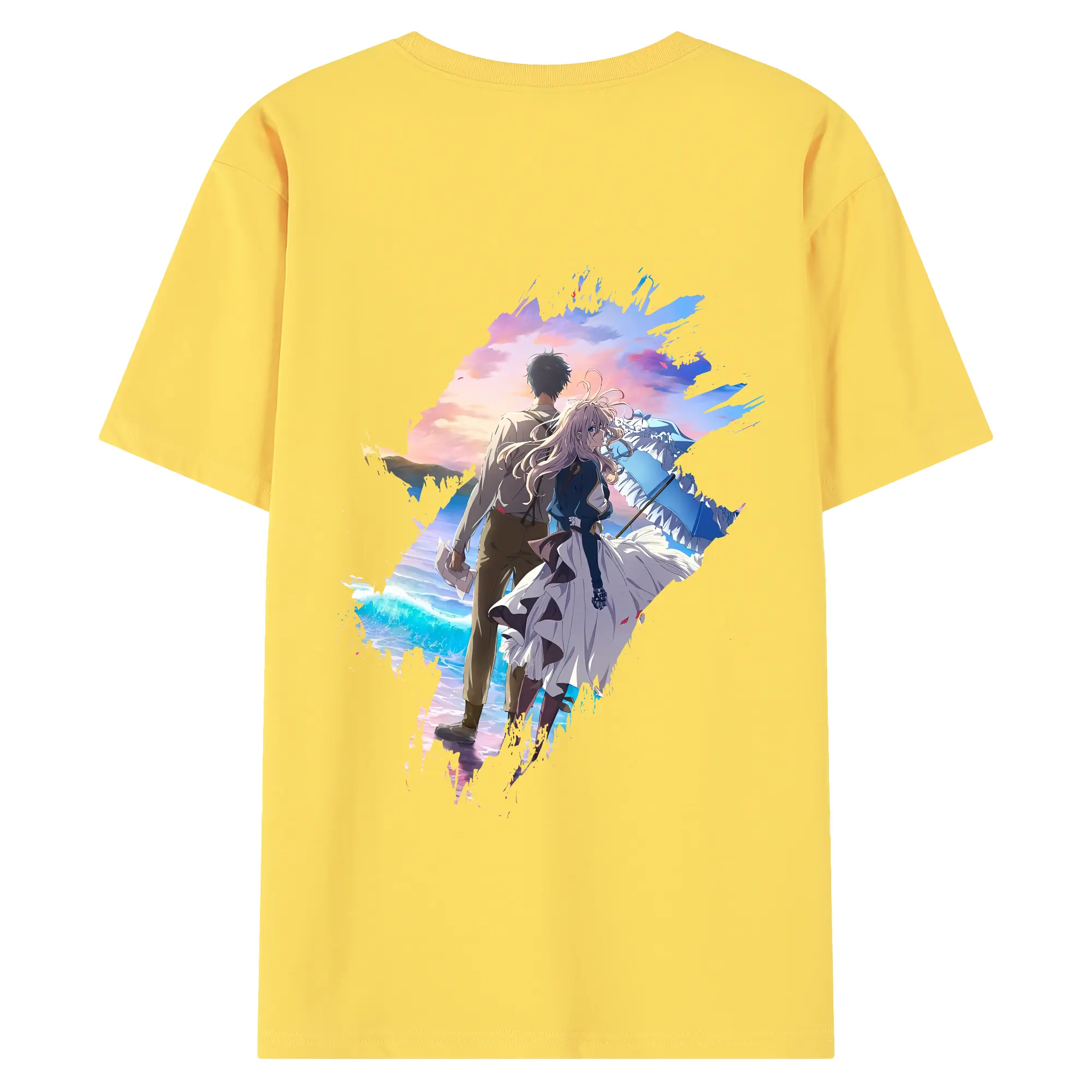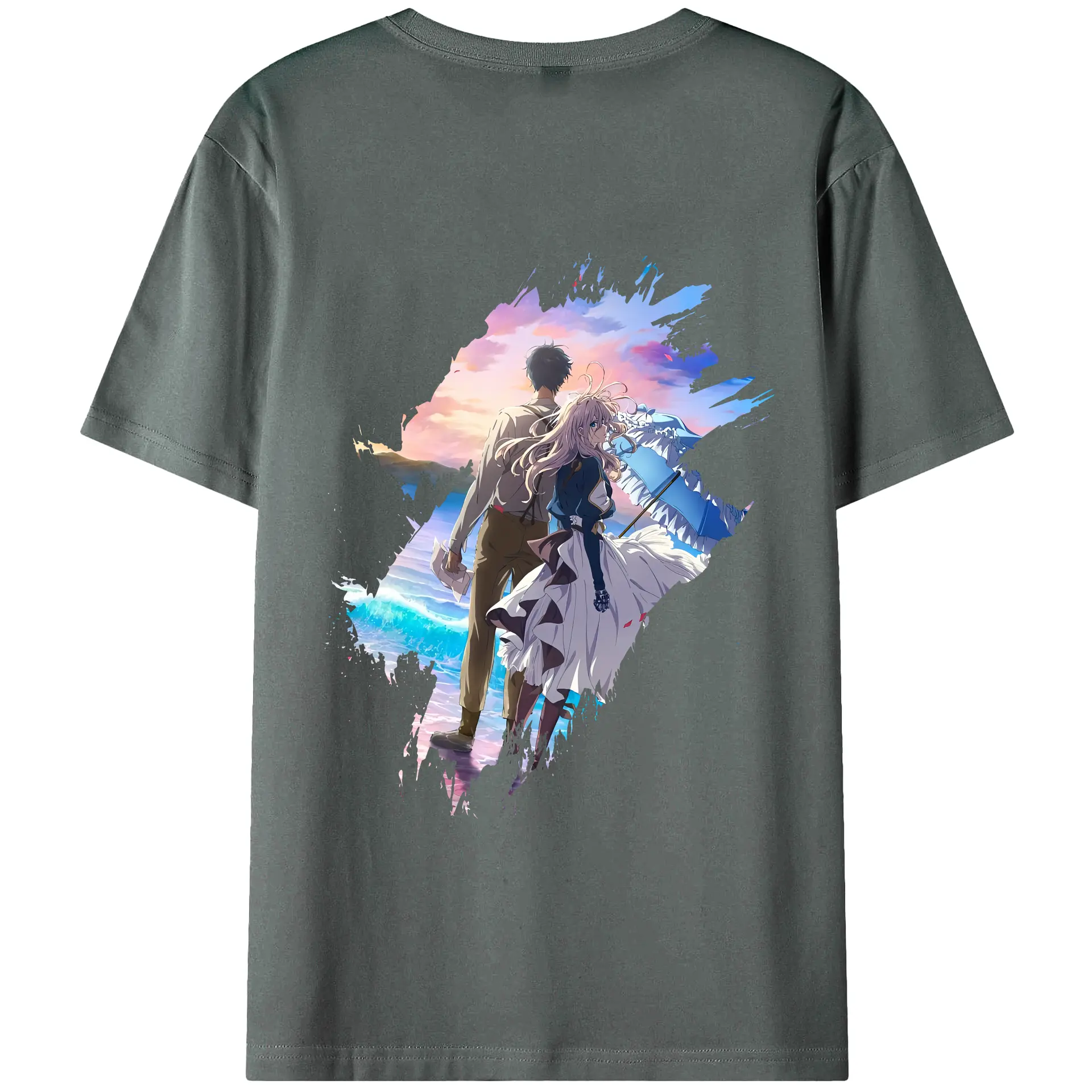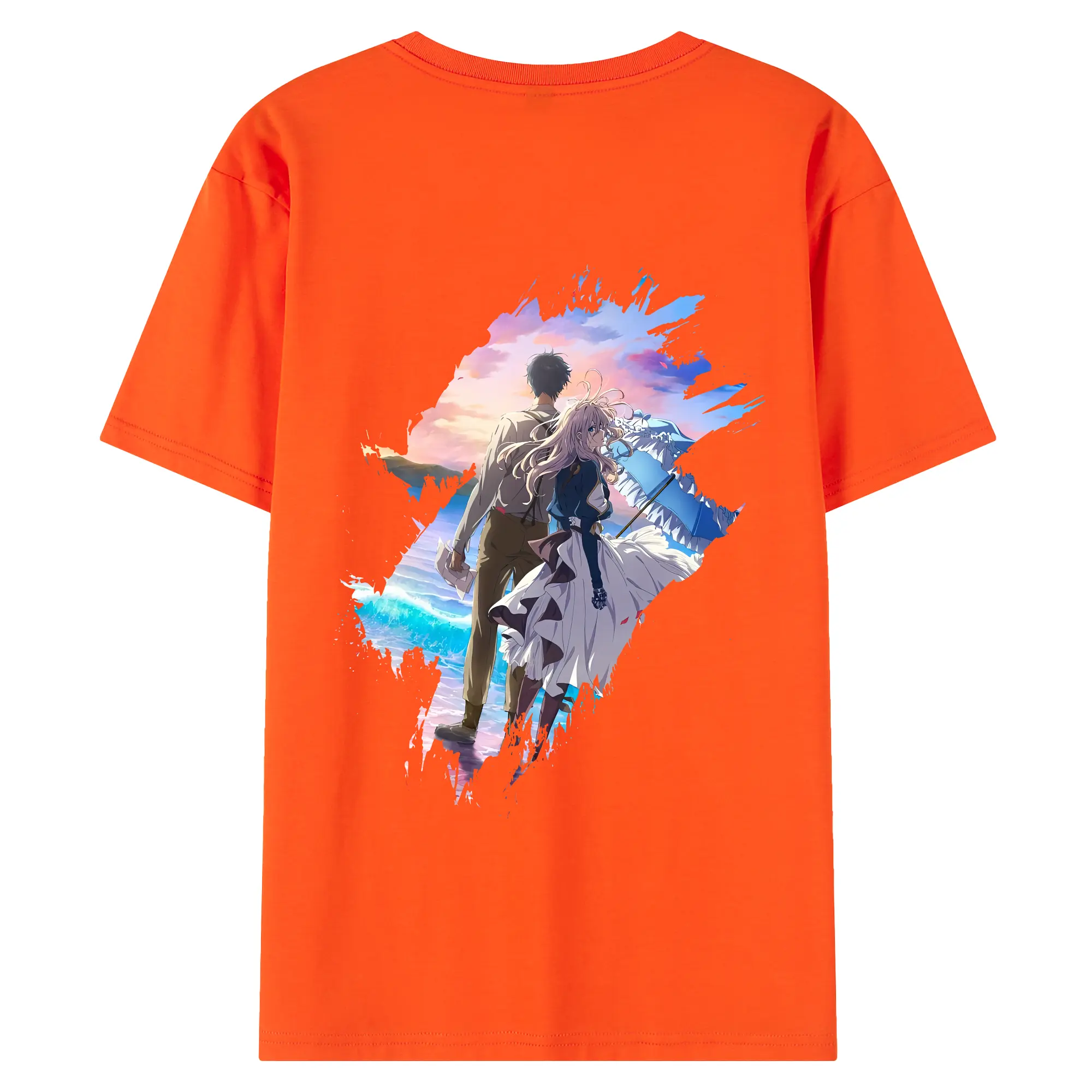 ヴァイオレット・エヴァーガーデン グッズ,ヴァイオレット・エヴァーガーデン - 綿100% 半袖Tシャツ ・ フロントプリント ・ 快適 通気性 ・ 日常使い 散歩 スポーツ用