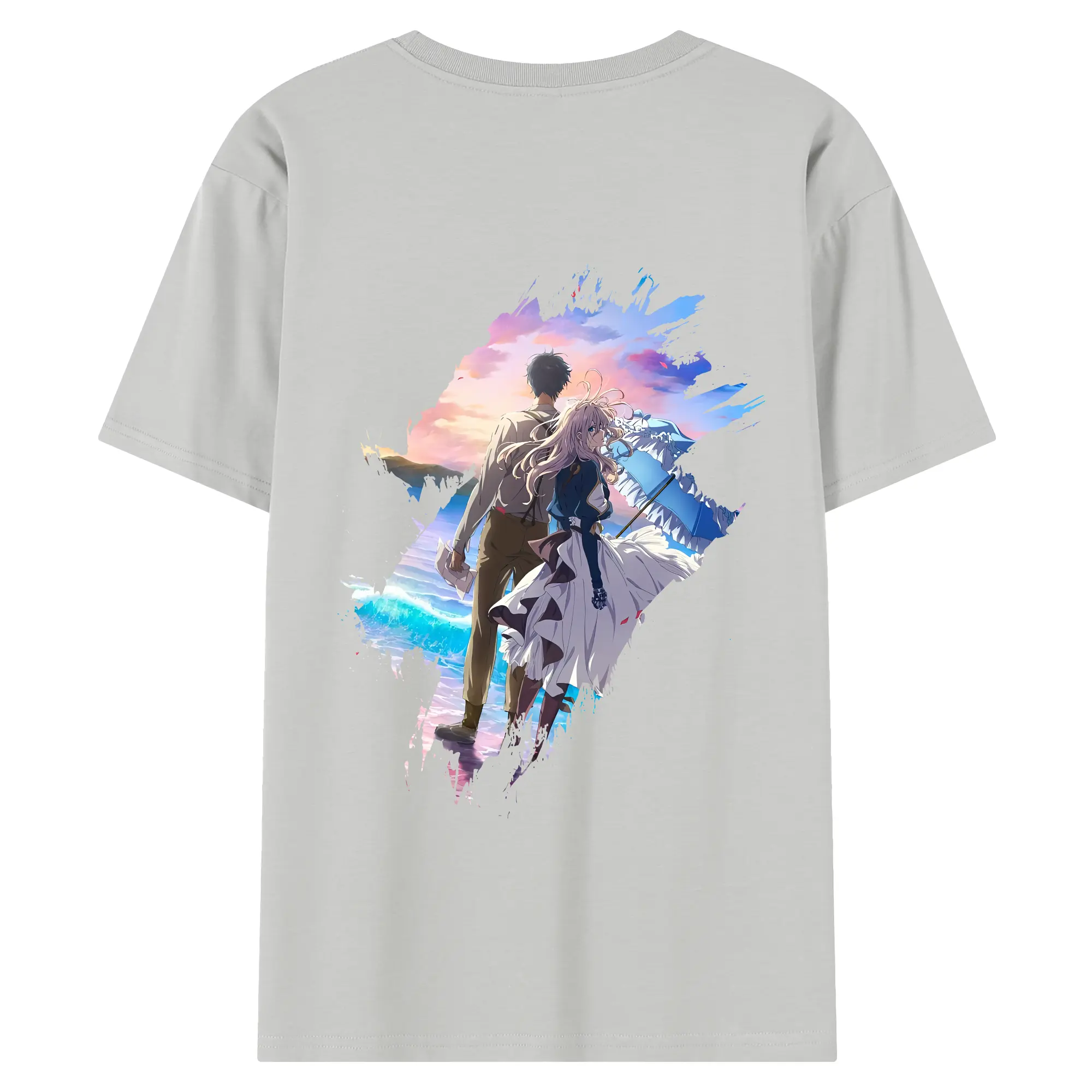 ヴァイオレット・エヴァーガーデン グッズ,ヴァイオレット・エヴァーガーデン - 綿100% ヴィンテージ風 半袖Tシャツ ・ 背面プリント ・ 柔らか肌触り ・ 通気性 快適 ・ スポーツ カジュアル 外出用