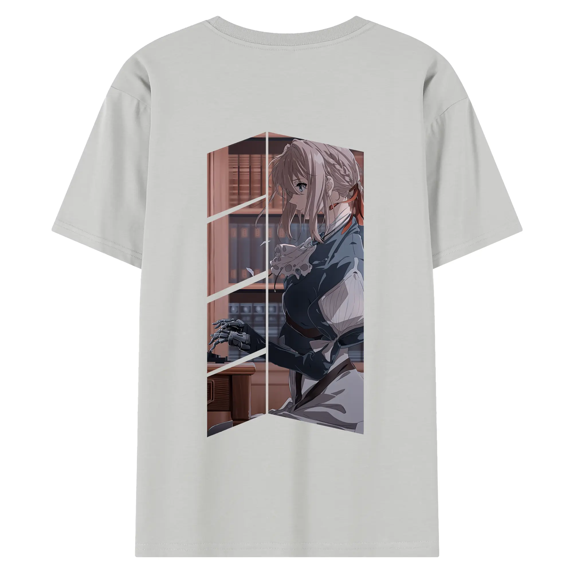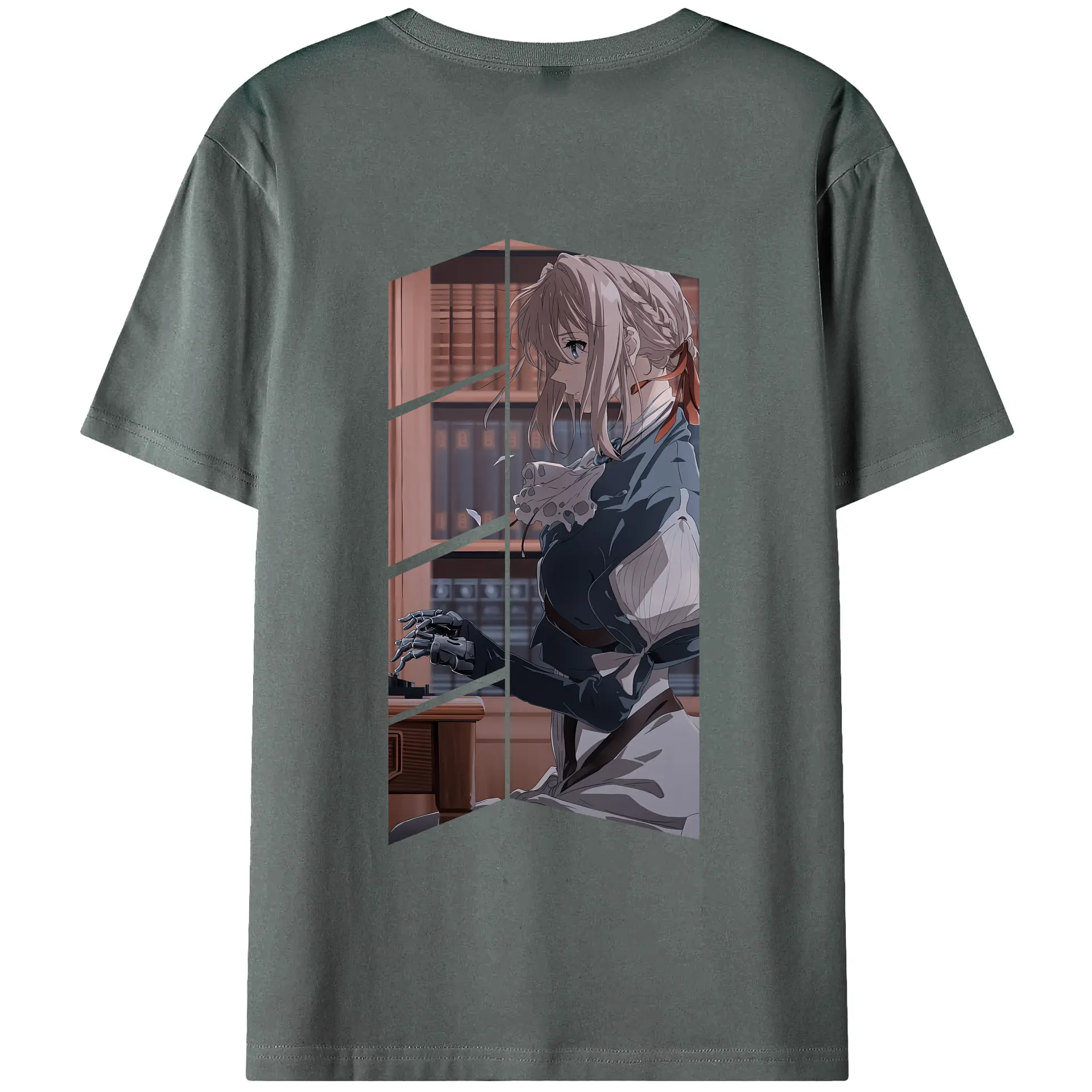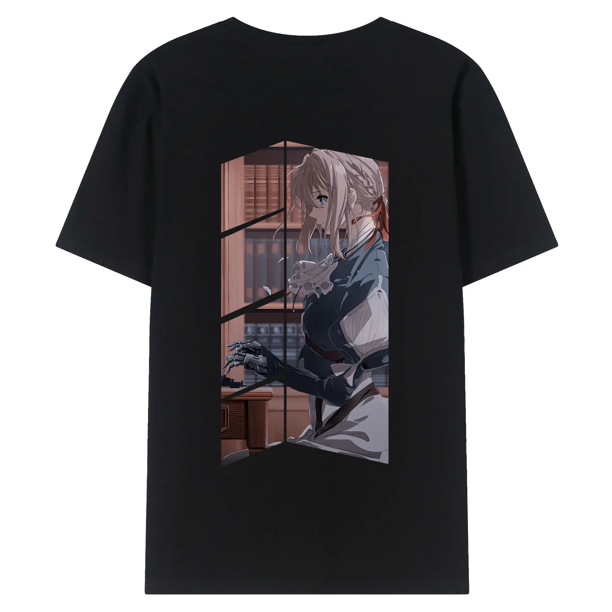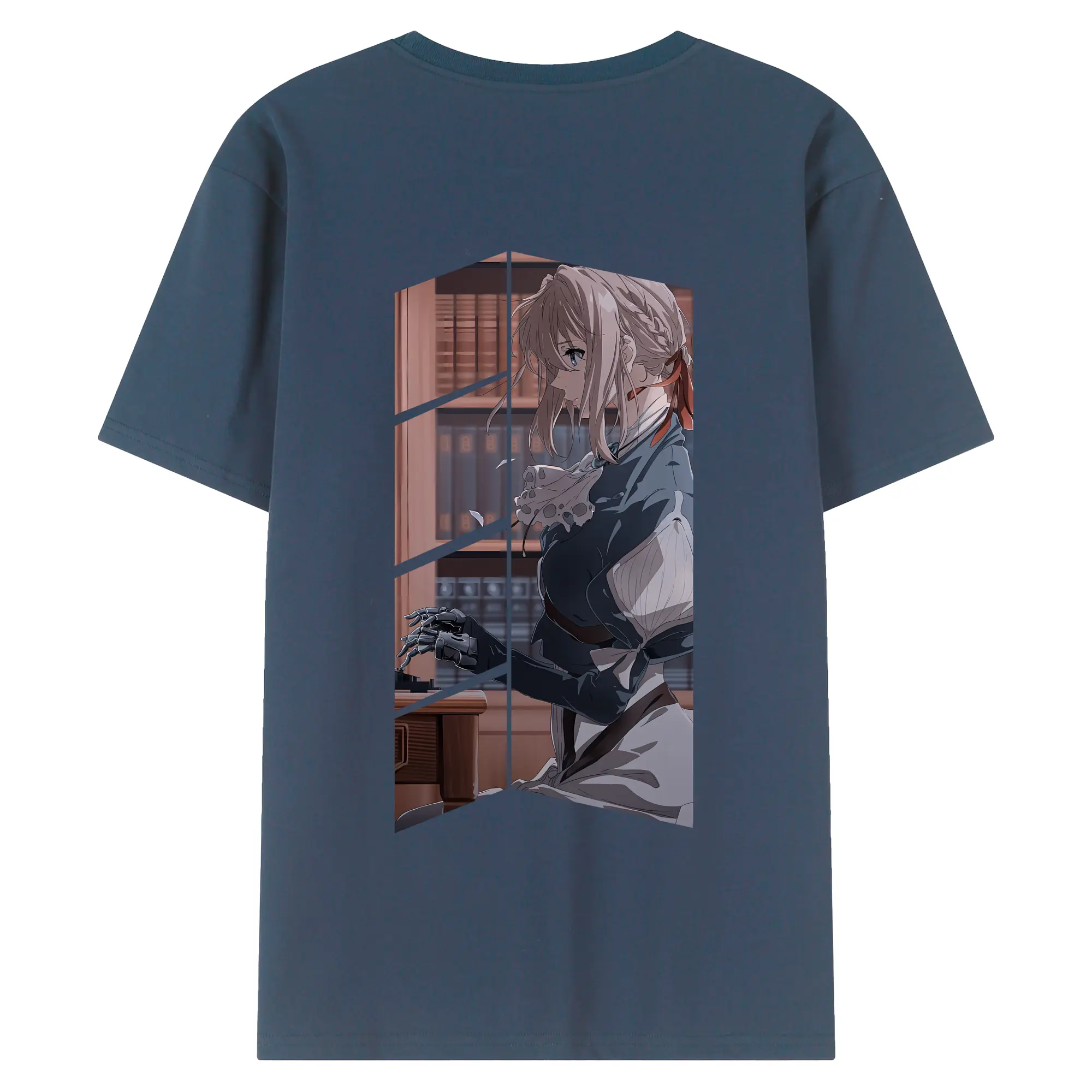 ヴァイオレット・エヴァーガーデン グッズ,ヴァイオレット・エヴァーガーデン - 綿100% ヴィンテージ風 半袖Tシャツ ・ 背面プリント ・ 柔らか肌触り ・ 通気性 快適 ・ スポーツ カジュアル 外出用