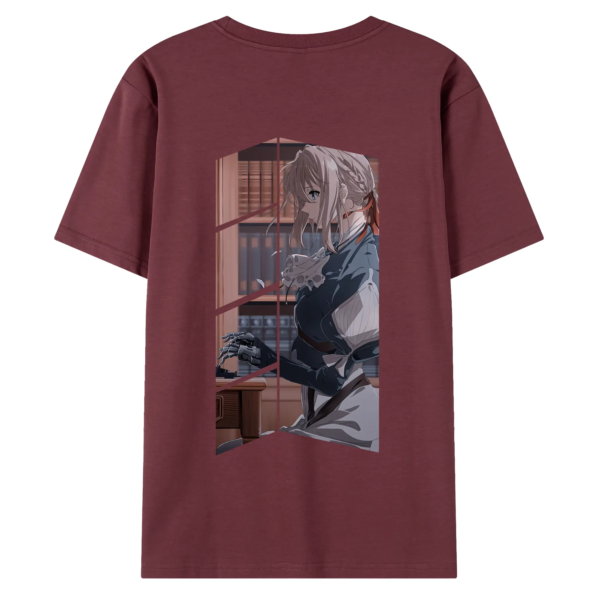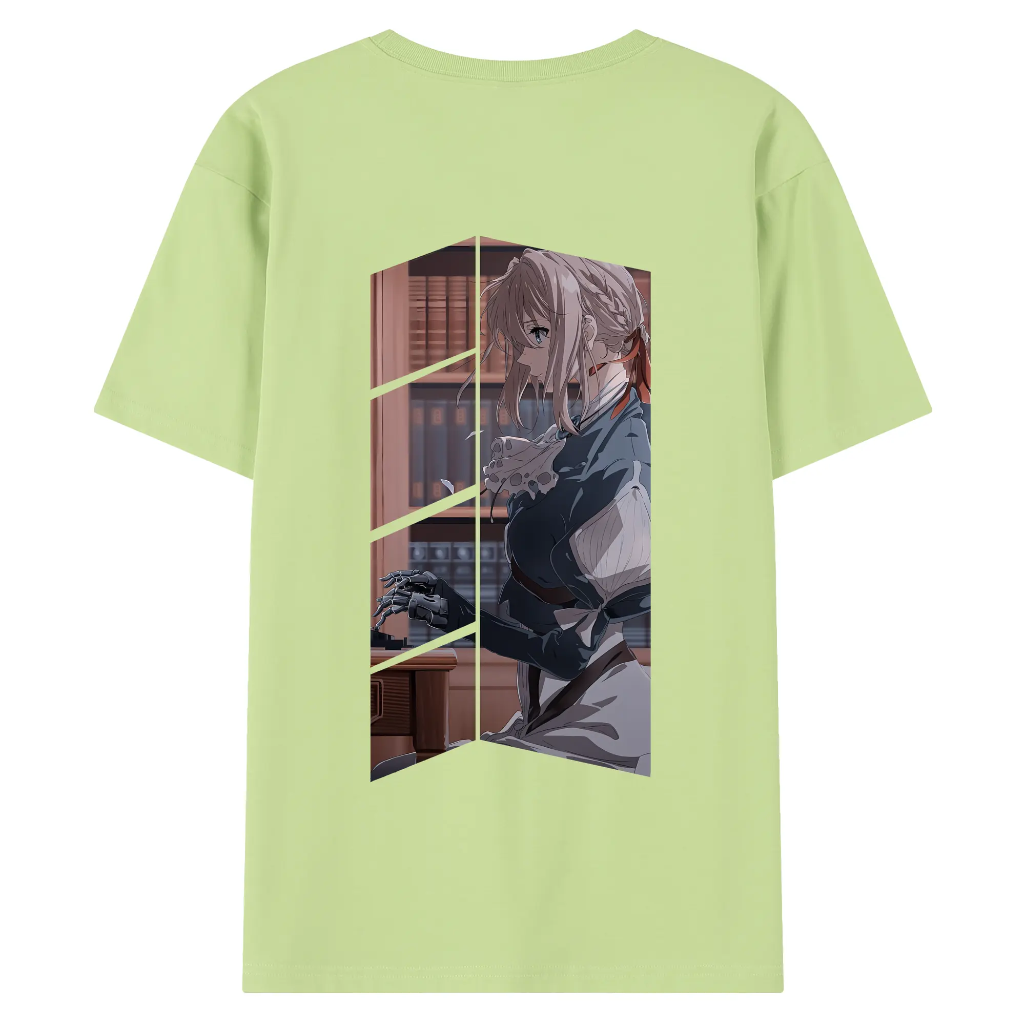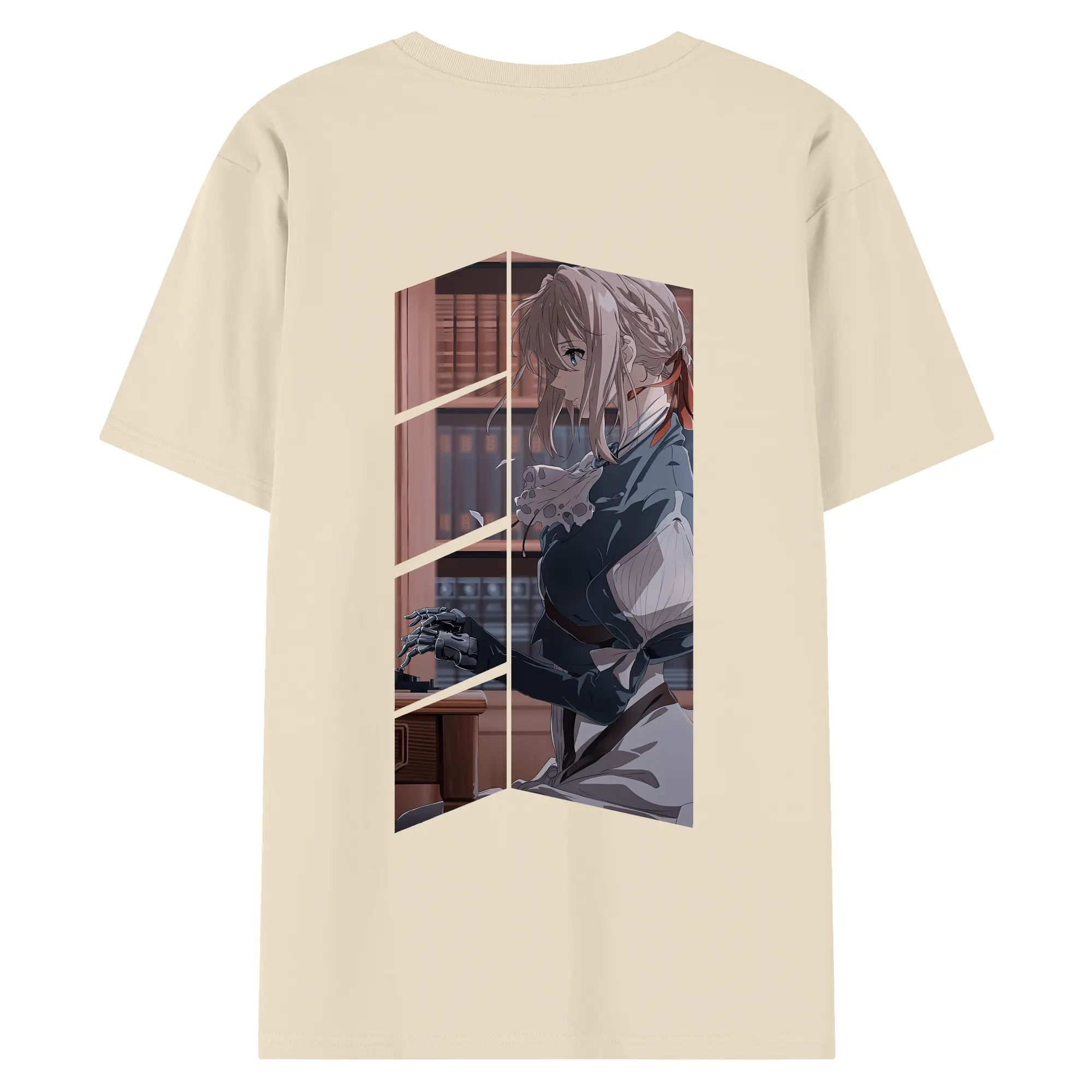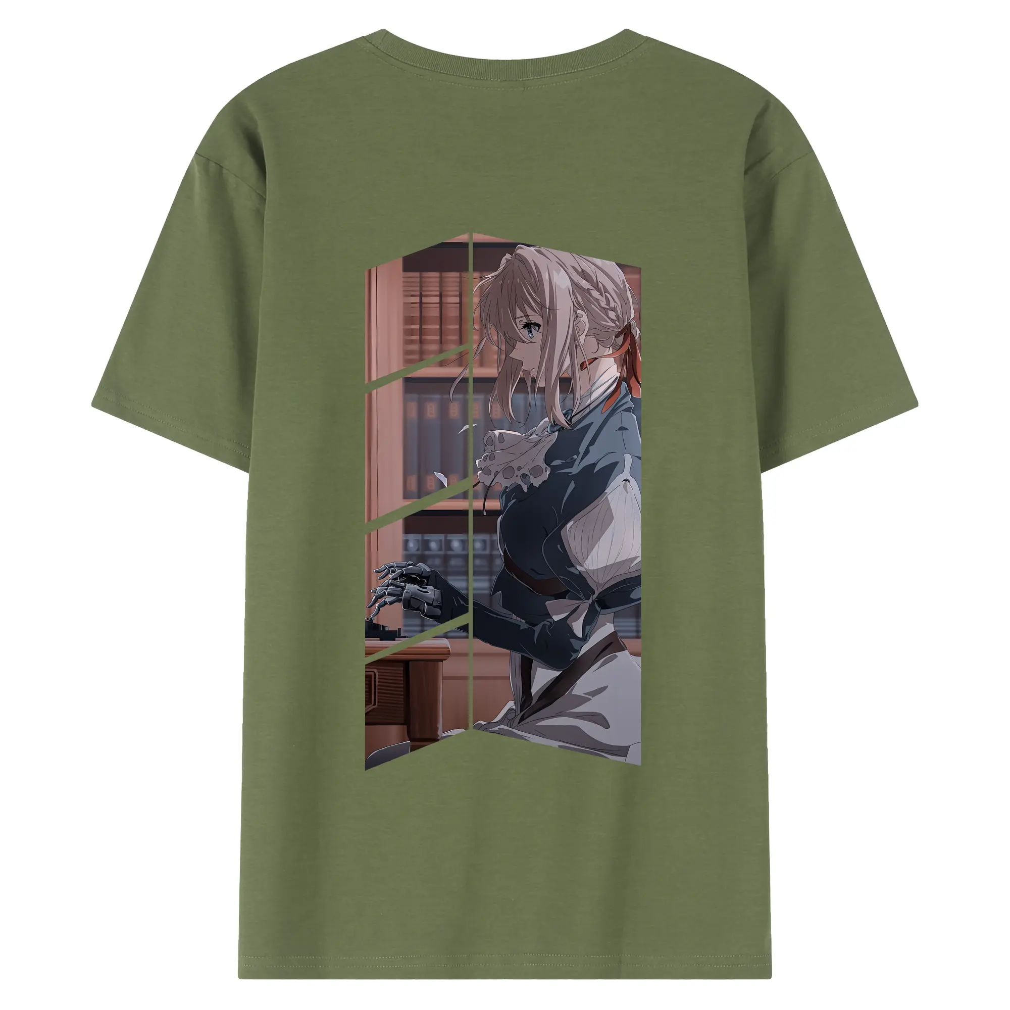 ヴァイオレット・エヴァーガーデン グッズ,ヴァイオレット・エヴァーガーデン - 綿100% ヴィンテージ風 半袖Tシャツ ・ 背面プリント ・ 柔らか肌触り ・ 通気性 快適 ・ スポーツ カジュアル 外出用