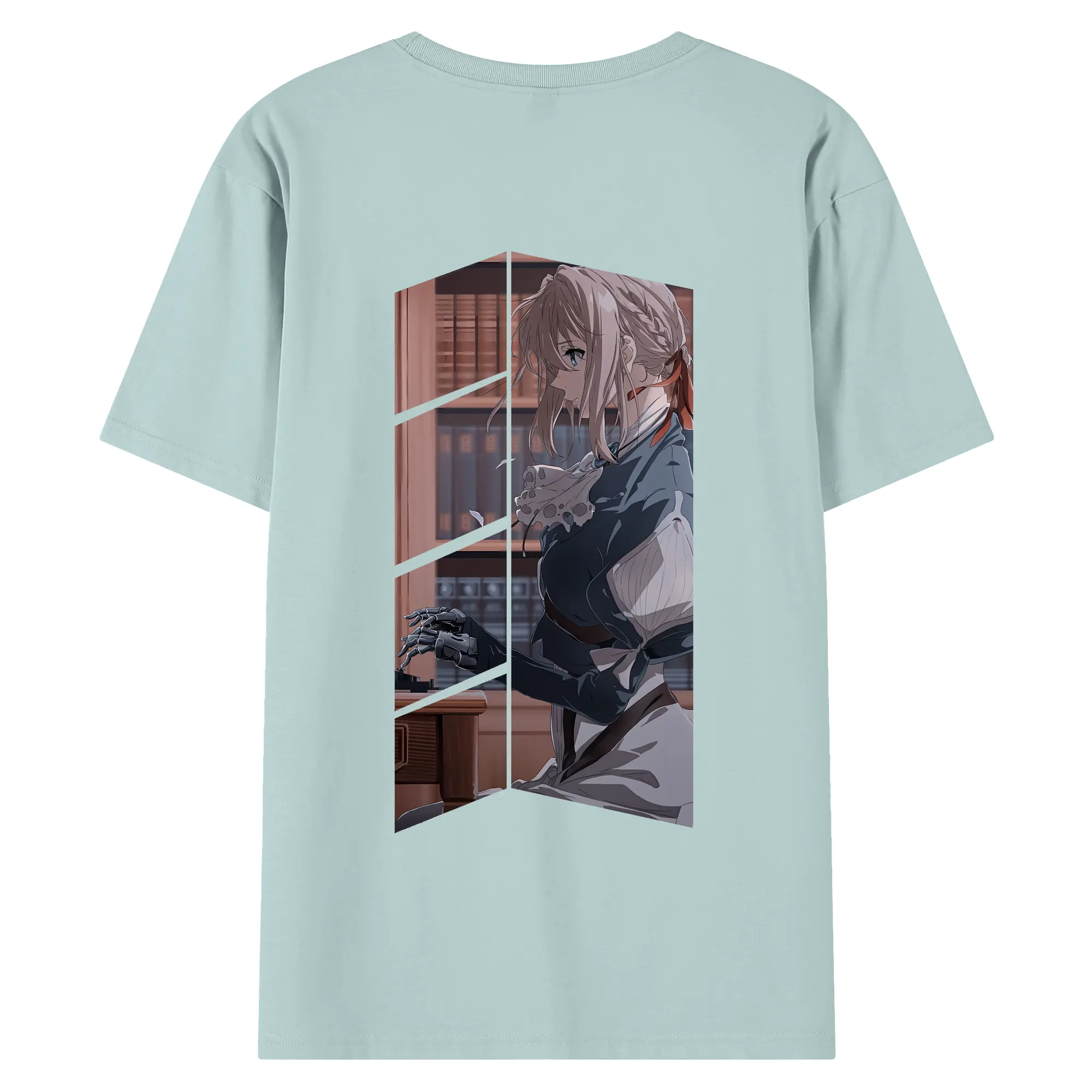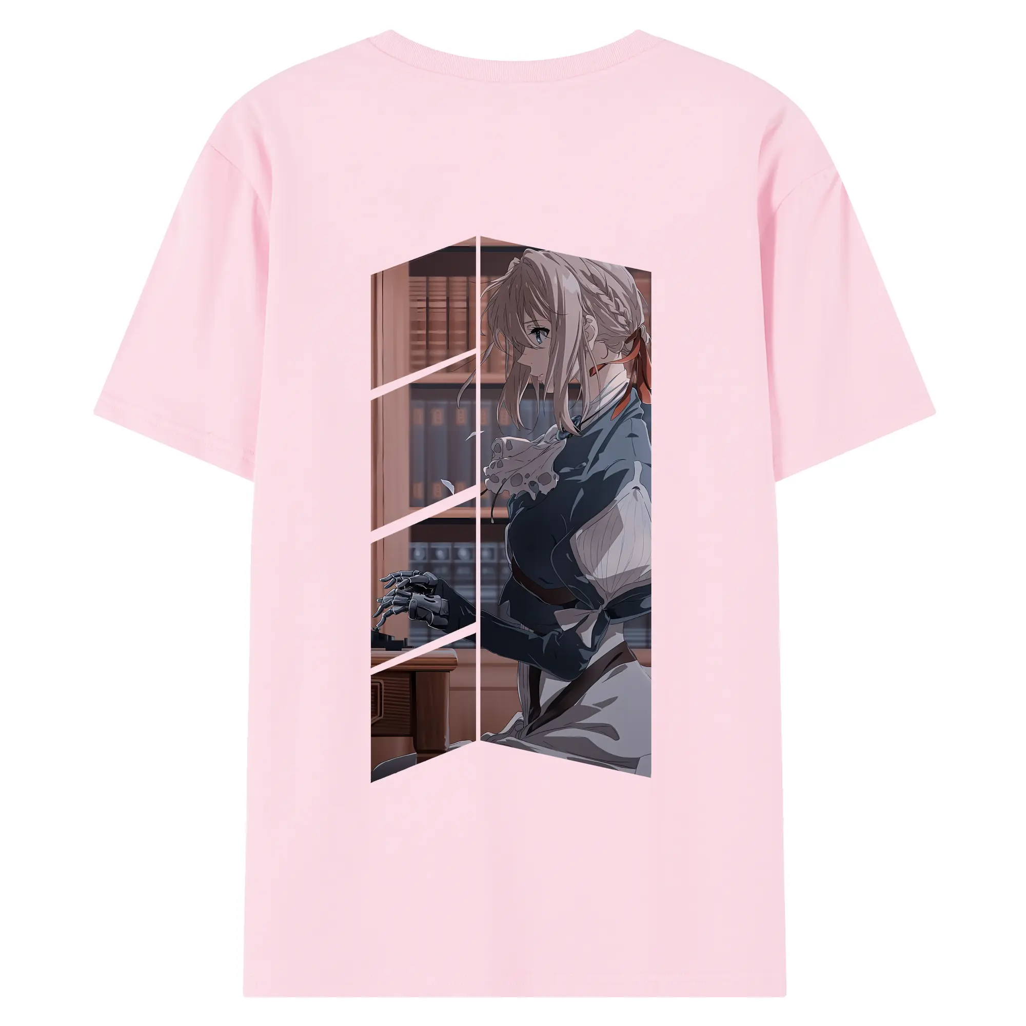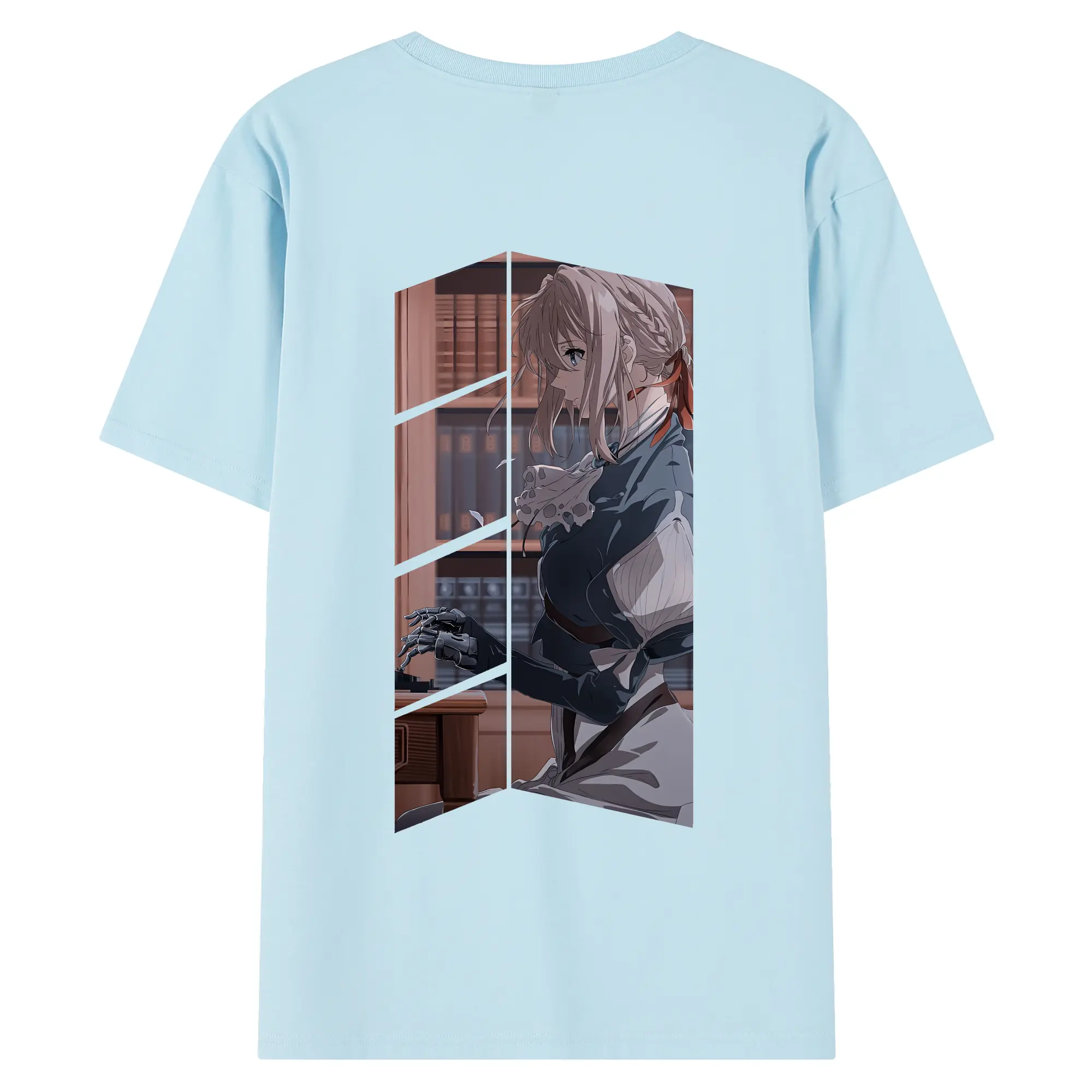 ヴァイオレット・エヴァーガーデン グッズ,ヴァイオレット・エヴァーガーデン - 綿100% 半袖Tシャツ ・ フロントプリント ・ 快適 通気性 ・ 日常使い 散歩 スポーツ用