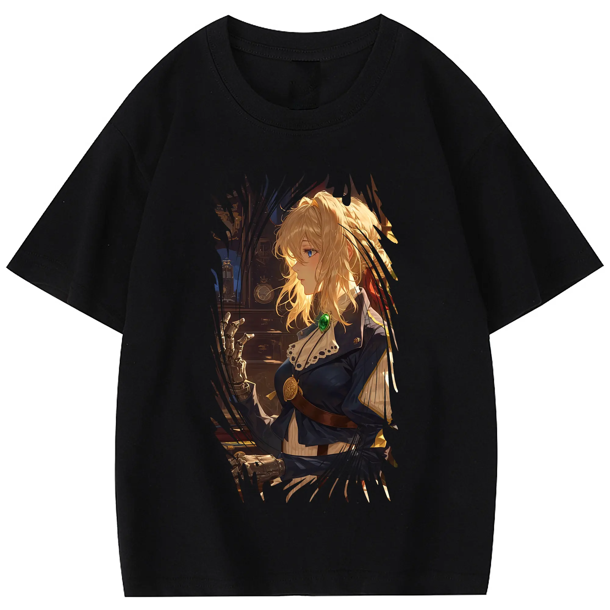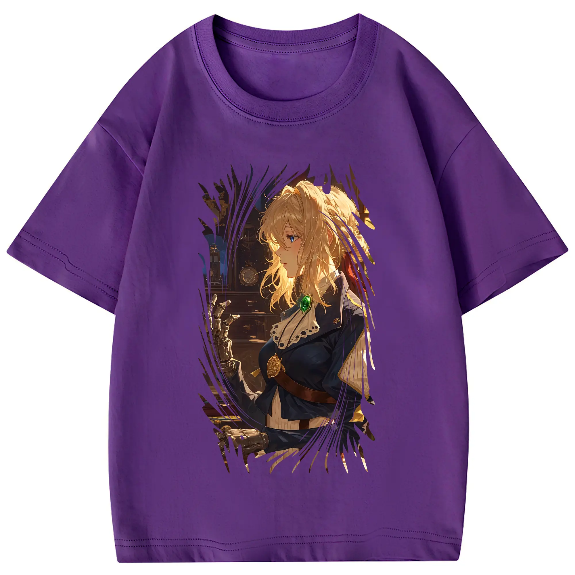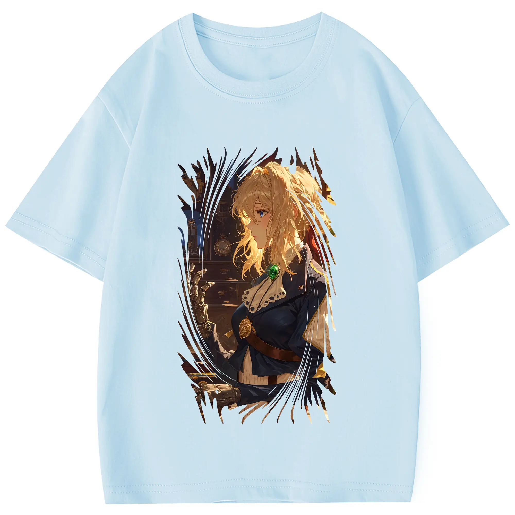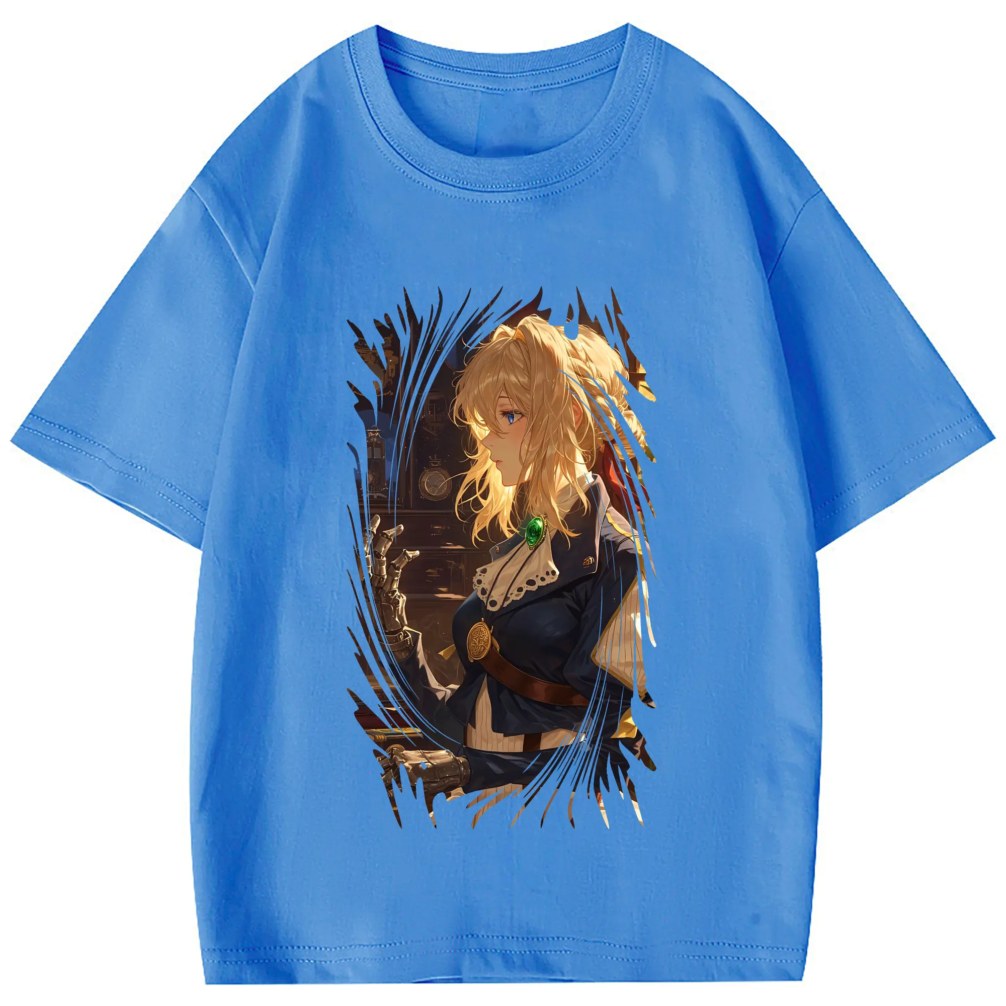 ヴァイオレット・エヴァーガーデン グッズ,ヴァイオレット・エヴァーガーデン - 綿100% 半袖Tシャツ ・ フロントプリント ・ 快適 通気性 ・ 日常使い 散歩 スポーツ用