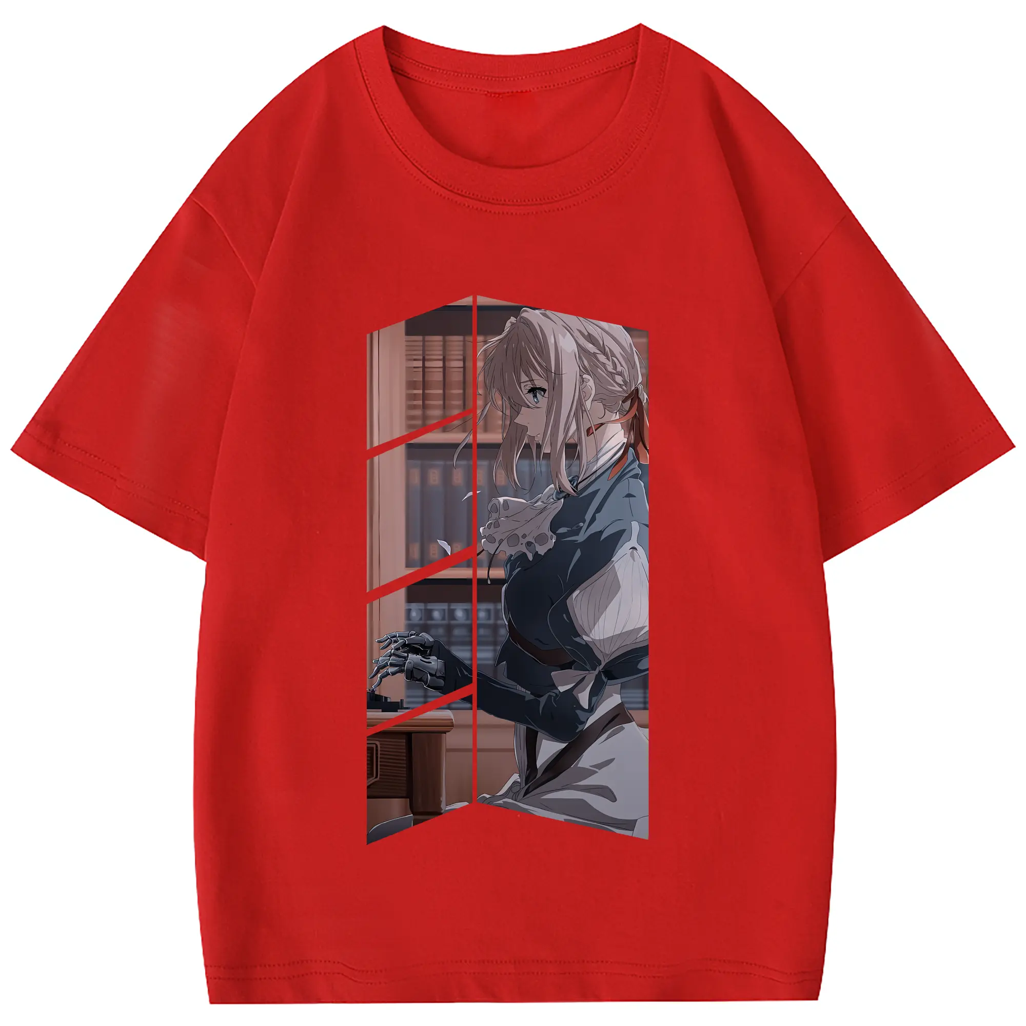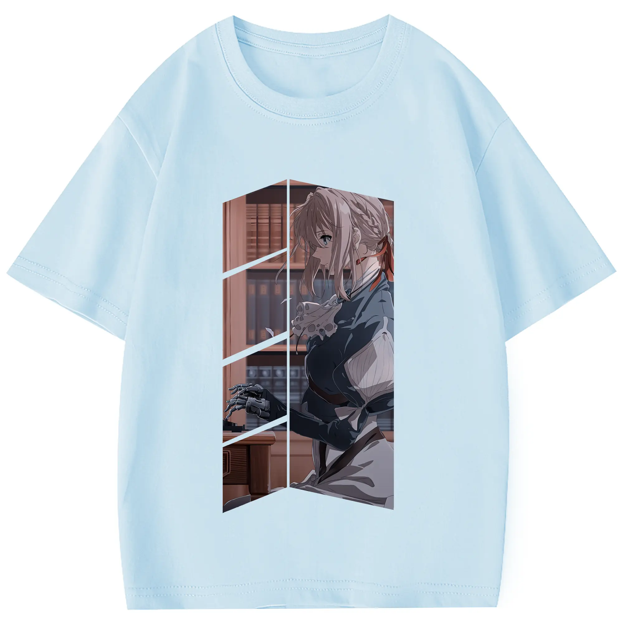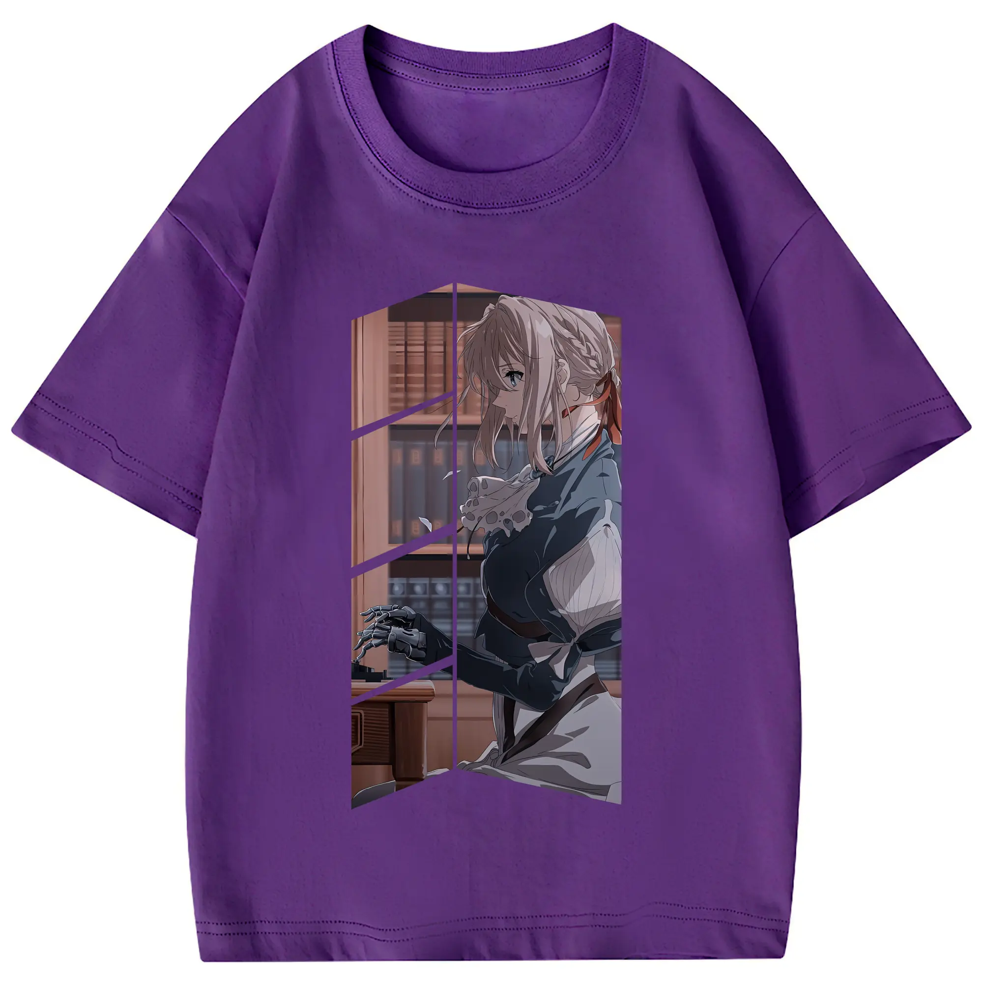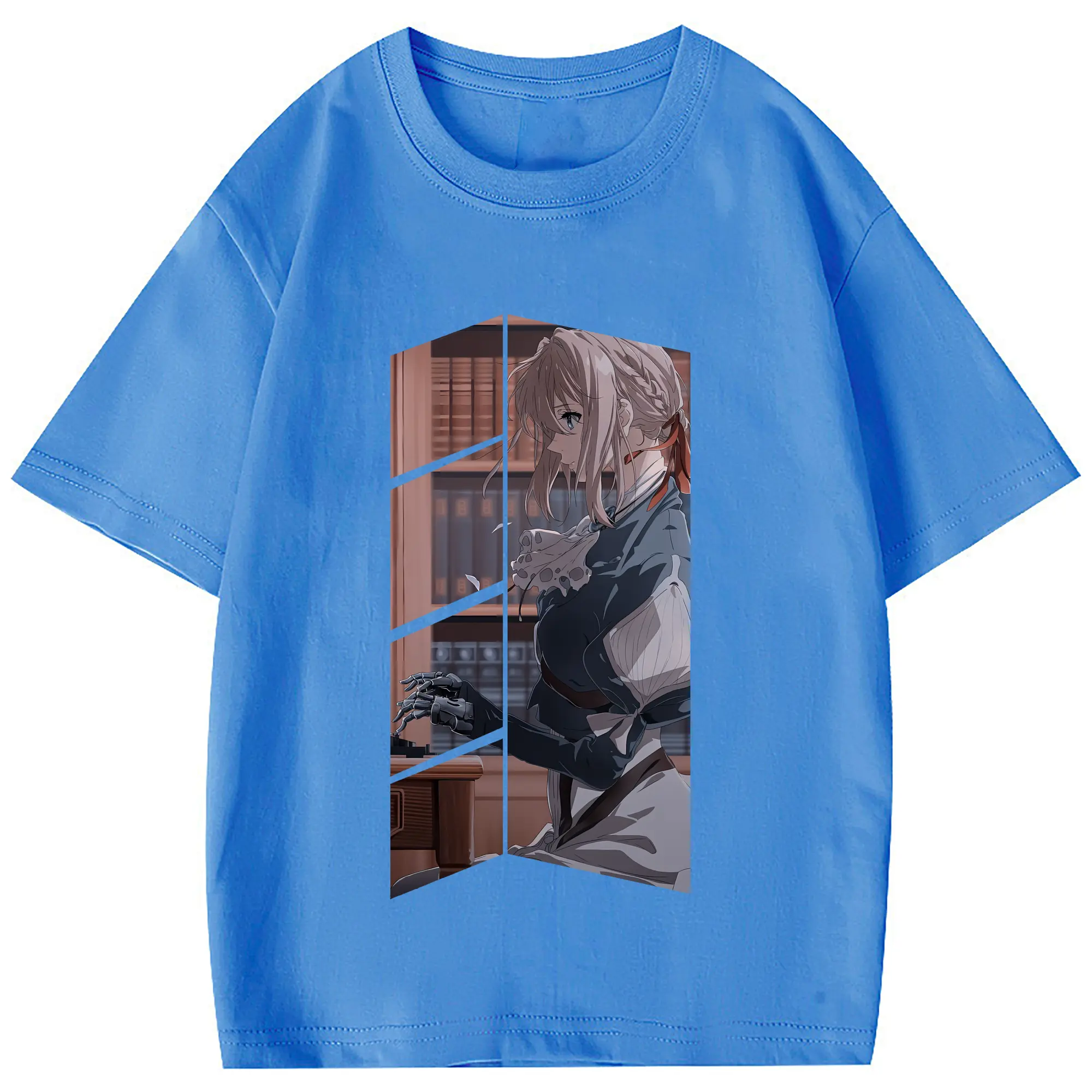 ヴァイオレット・エヴァーガーデン グッズ,ヴァイオレット・エヴァーガーデン - 綿100% 半袖Tシャツ ・ フロントプリント ・ 快適 通気性 ・ 日常使い 散歩 スポーツ用