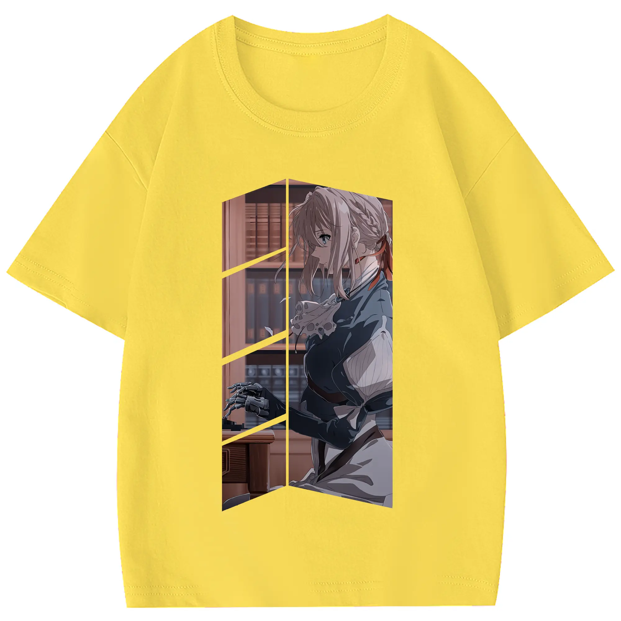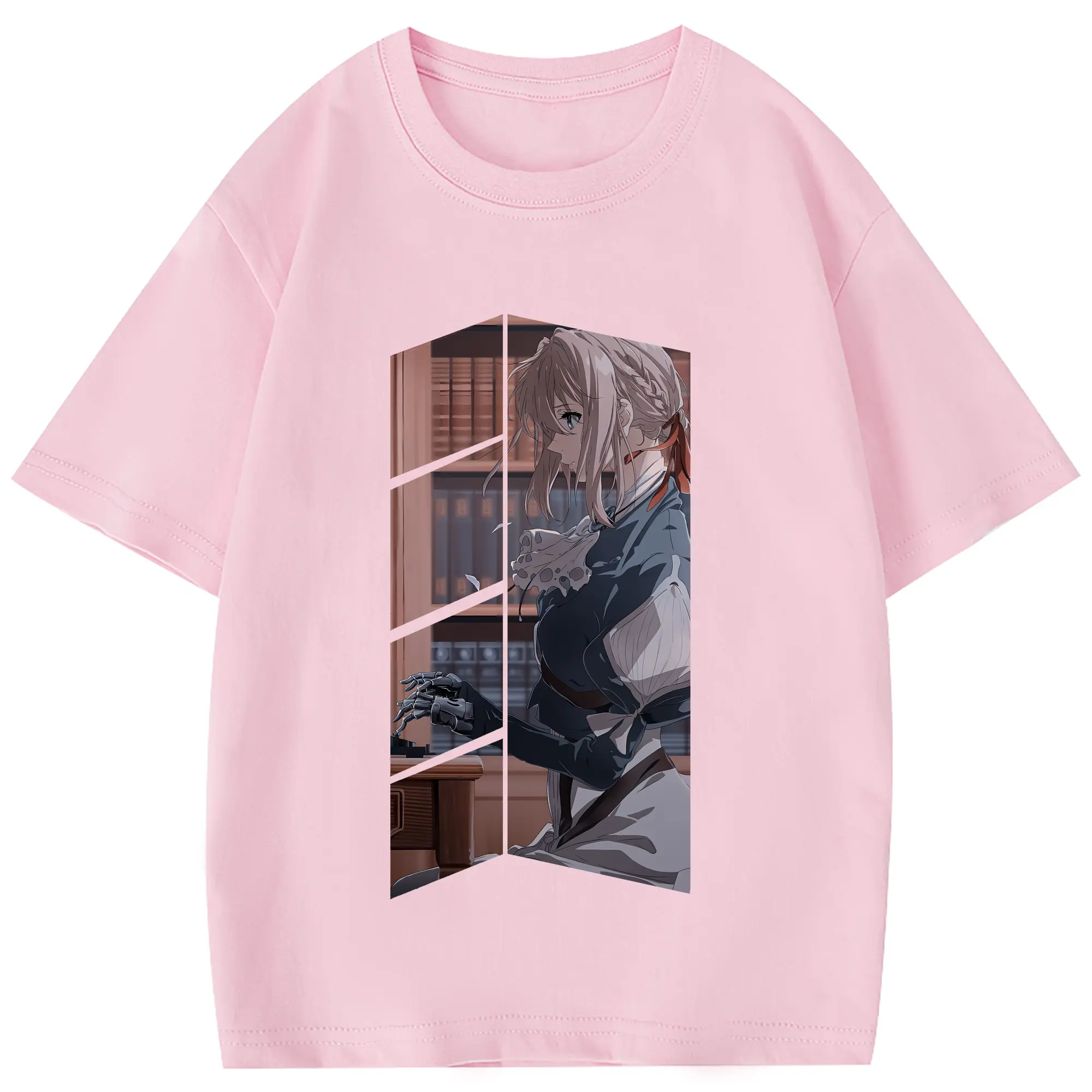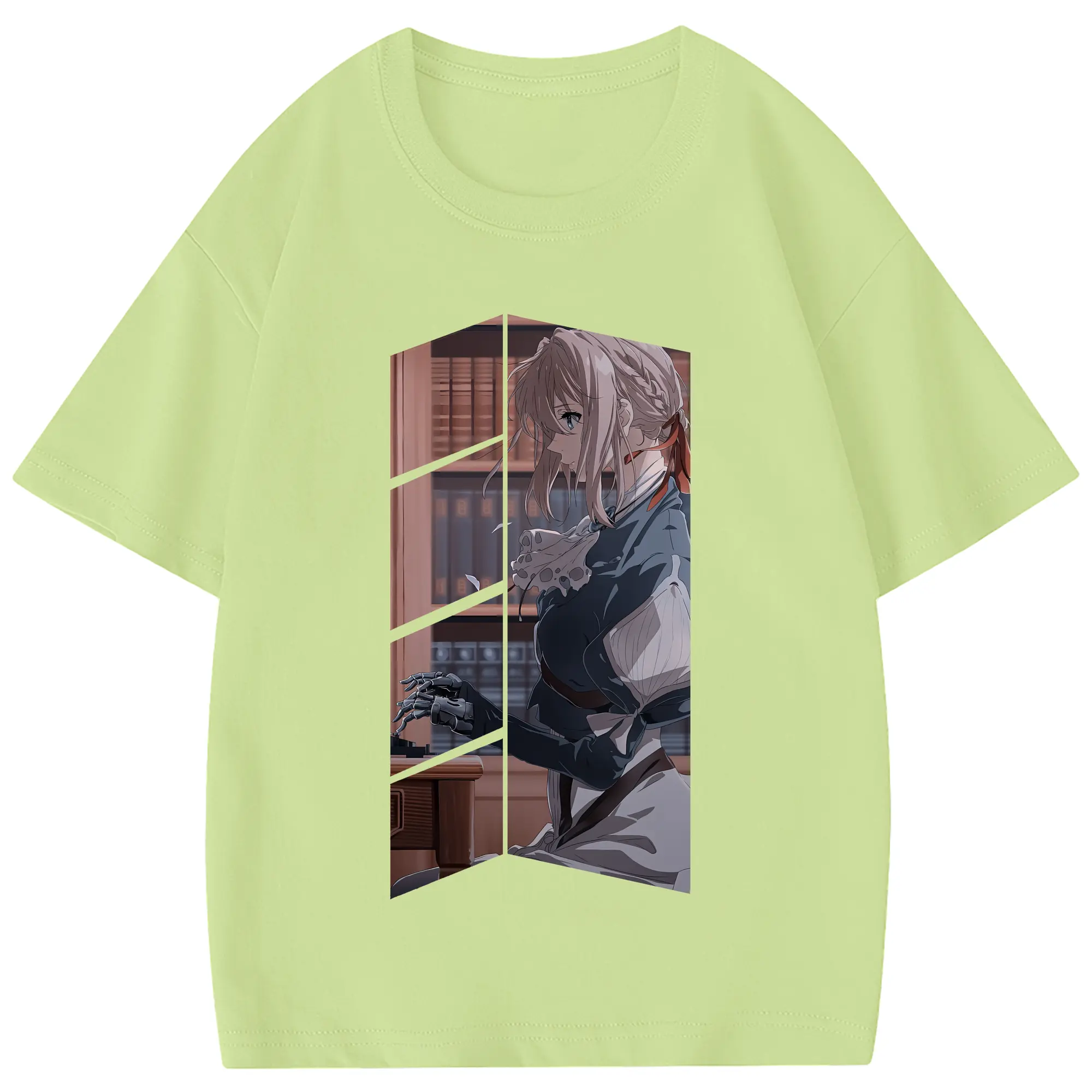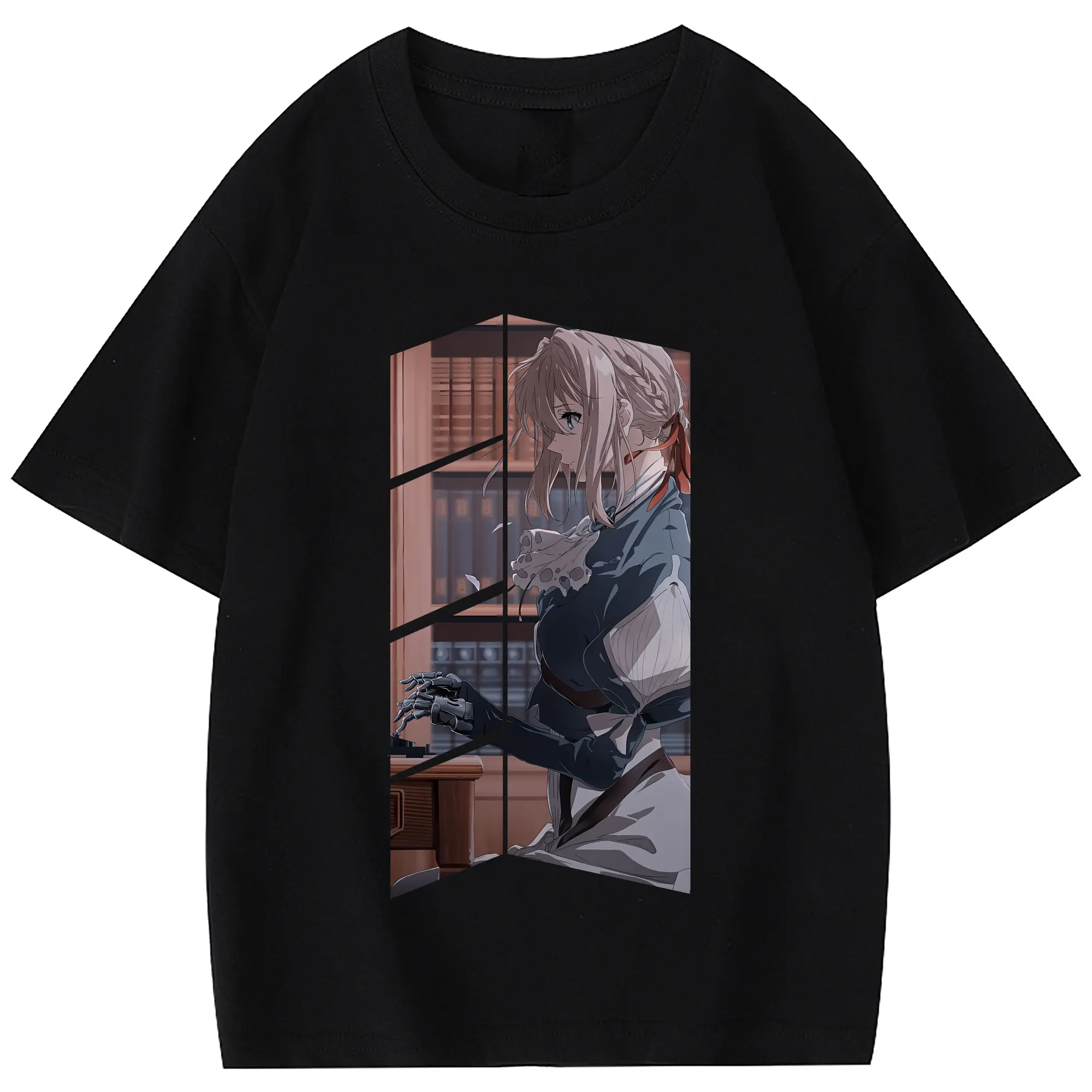 ヴァイオレット・エヴァーガーデン グッズ,ヴァイオレット・エヴァーガーデン - 綿100% 半袖Tシャツ ・ フロントプリント ・ 快適 通気性 ・ 日常使い 散歩 スポーツ用