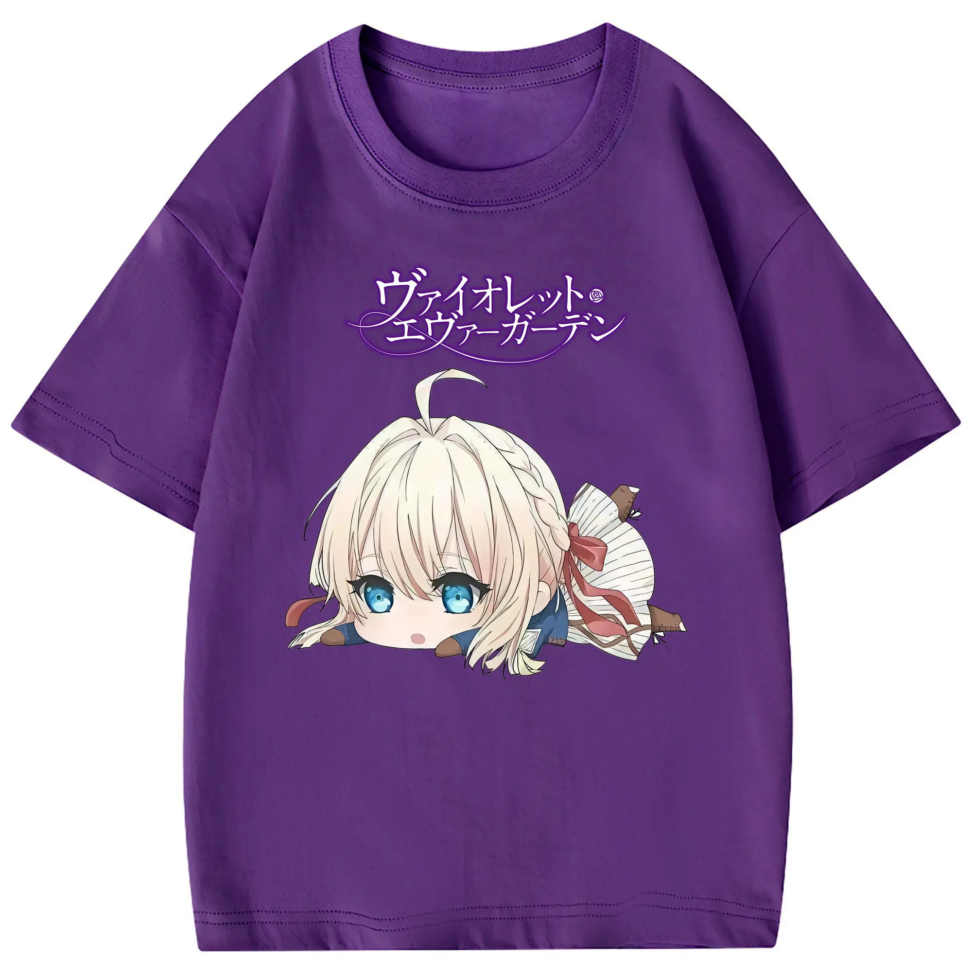 ヴァイオレット・エヴァーガーデン グッズ,ヴァイオレット・エヴァーガーデン - 綿100% 半袖Tシャツ ・ フロントプリント ・ 快適 通気性 ・ 日常使い 散歩 スポーツ用
