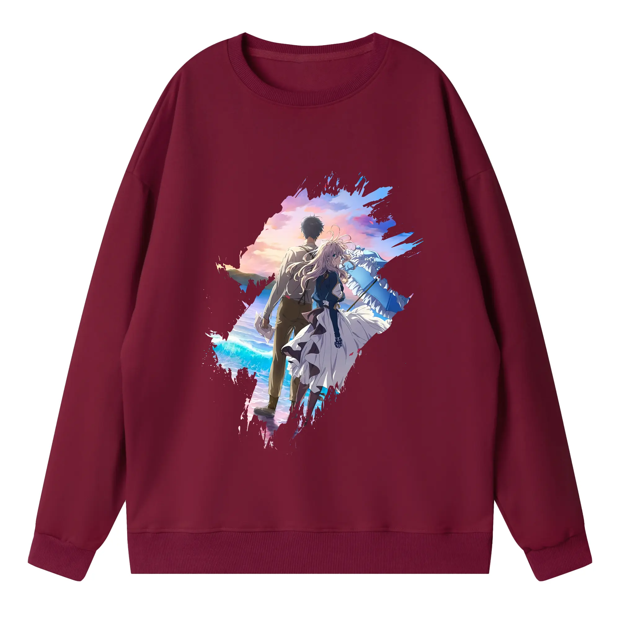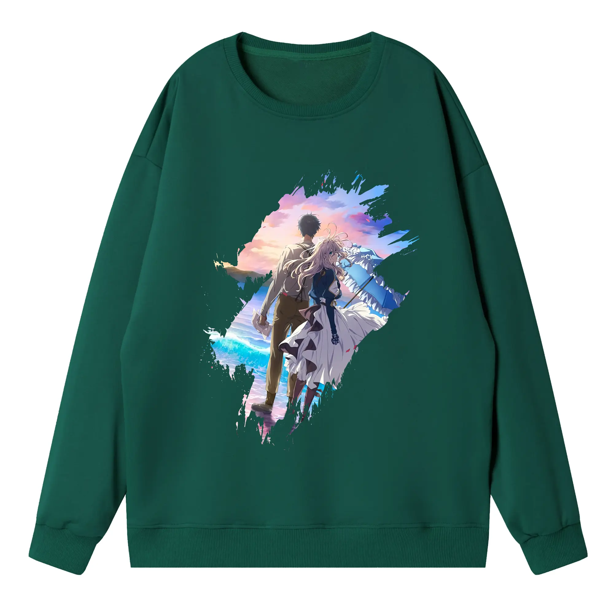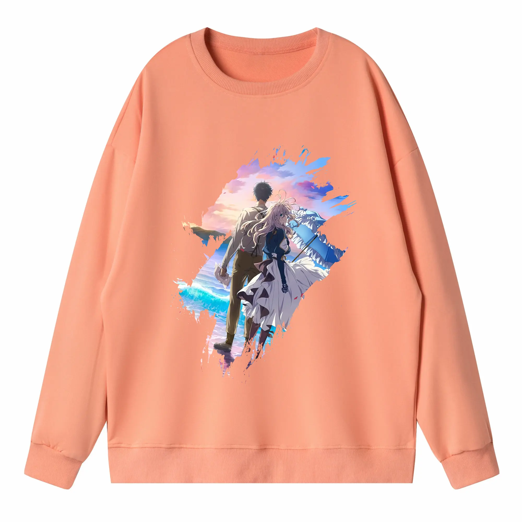 ヴァイオレット・エヴァーガーデン グッズ,ヴァイオレット・エヴァーガーデン - 綿100% 半袖Tシャツ ・ バックプリント ・ 快適 通気性 ・ 日常使い 散歩 スポーツ用